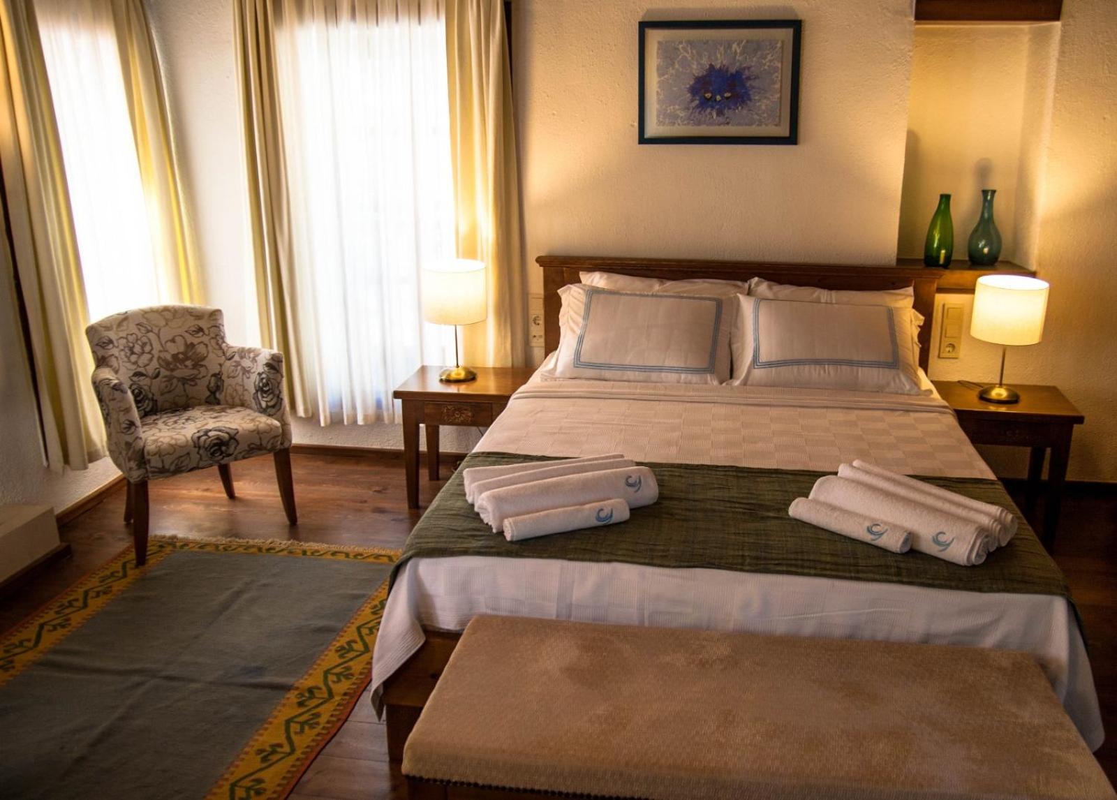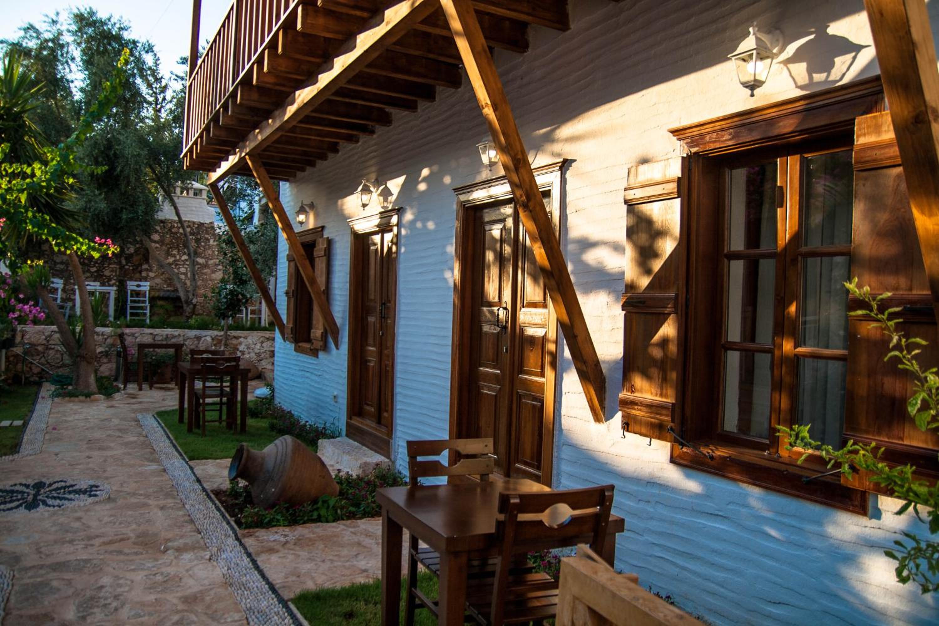 Situated in Kalkan, Courtyard is a stunning blend of Turkish and Greek architecture, boasting a beautifully restored building with original cobbled stone landing, mosaic courtyard, and lush garden.