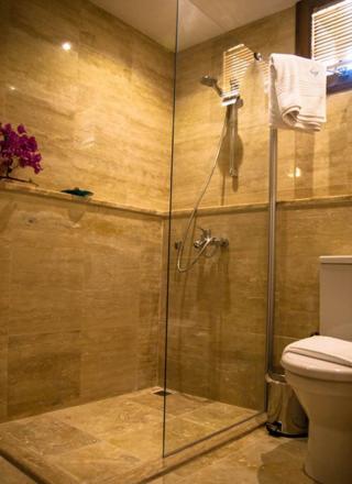 Drainage of water in the shower was slow so one had to turn the water off occasionally mid-shower to prevent water leakage into the bathroom.