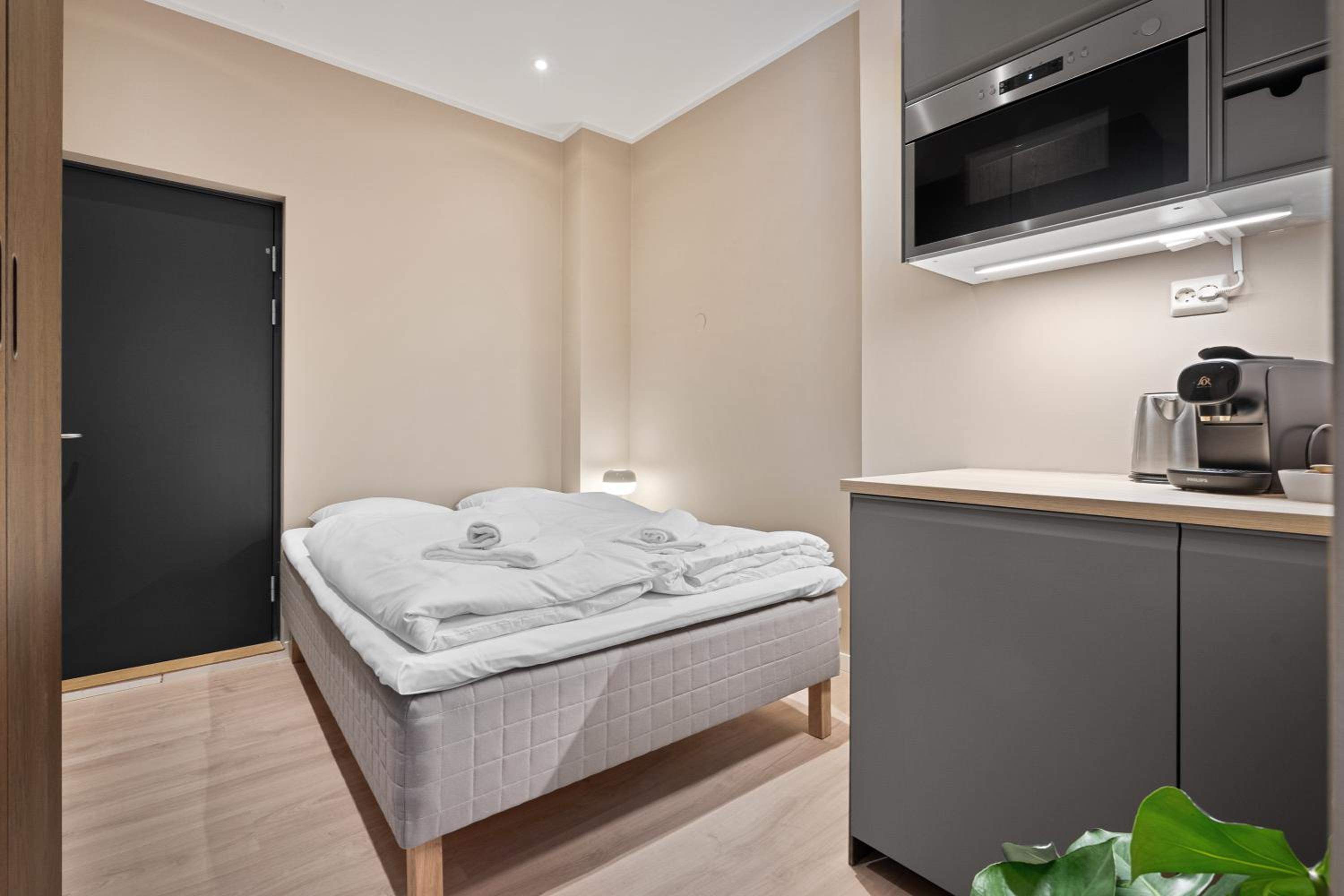 Great value of money. Close to main attractions of Bergen & tram to airport. Nice that you can use lounge room all time, before & after check in. Unlimited tea, coffee & water. Huge plus for ice cubes. That was cool! You see it’s new facility. I will veritably recommend to friends & family.