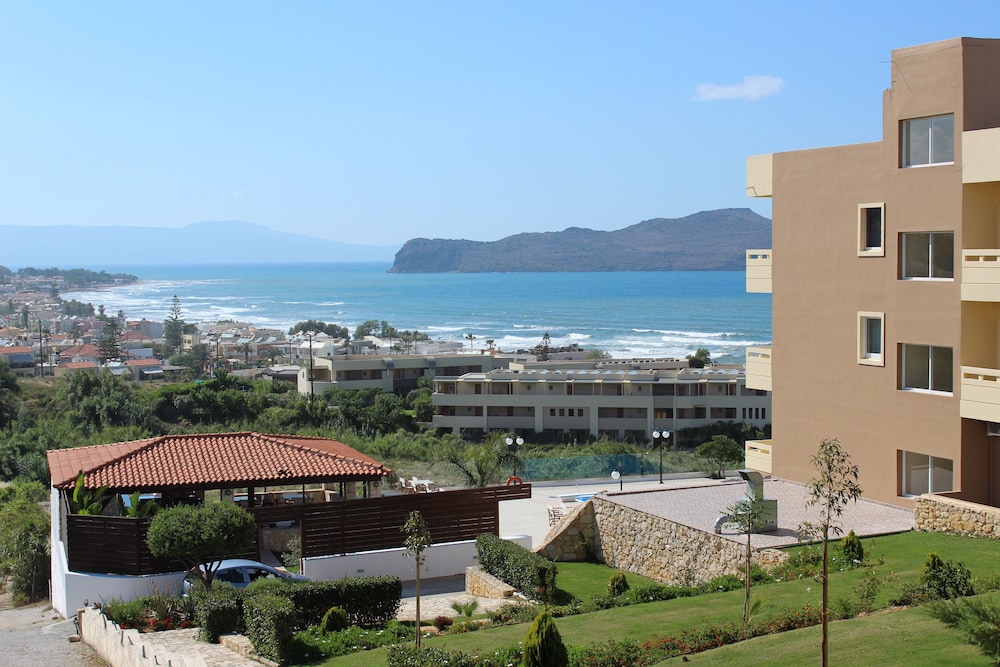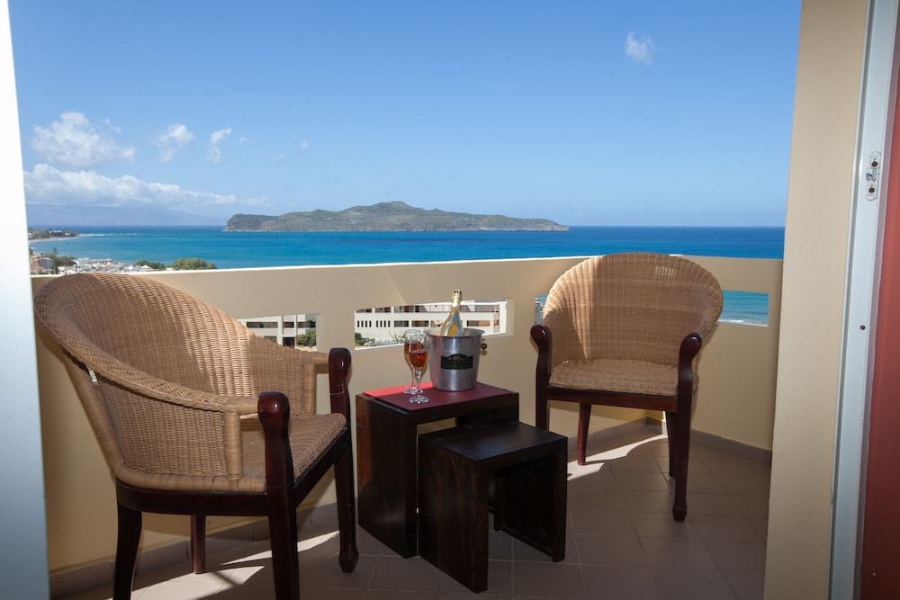 Il top hotel si trova a due passi da agia marina, (sopra al Maria's restaurant) su una piccola collinetta con vista mare lontano dal caos ma ben posizionato dove si può trovare minimarket, botteghe e tutto ciò di cui si ha bisogno. All'arrivo ci hanno offerto un drink di benvenuto, bevuto con vista mare e vicino ad una mega piscina bellissima è stato davvero apprezzato. Ci ha accolto Sophia, una ragazza gentilissima e subito ci ha mostrato la camera, ci ha fornito spiegazioni su ciò che desideravamo sapere e sempre tutto col sorriso. Abbiamo affitato una macchina x raggiungere la spiagge più belle come Balos, Elafonissi, Falasarna ecc...