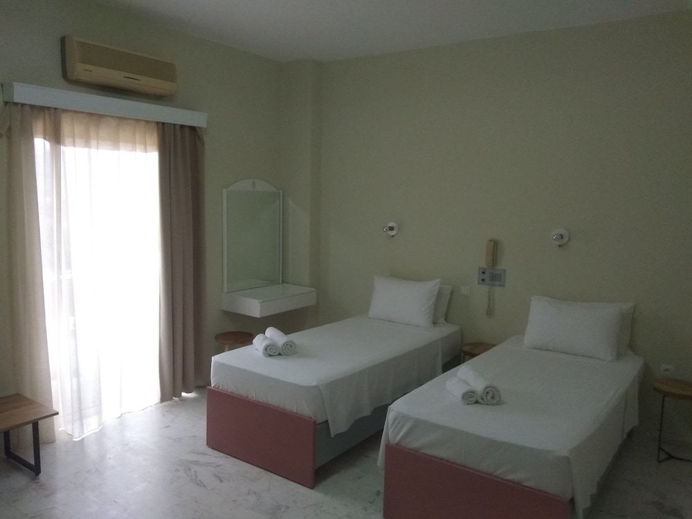 Et hotell, ikke i Agia Marina, ikke i Stallos? men helt på grensa til Galatos (nærmere Chania by). Et lite hotell, stille og rolige omgivelser( du kommer fort på hils med "alle" de andre gjestene) og ca. 5/7 min. gange ned til "stripa" og nærmeste Supermarked / restaurant. Nydelig utsikt over sjøen, nærhet til oliven- og appelsin farmer, fint for deg som ønsker å trimme litt. OK basseng og solsenger til alle. Du må være forberedt til å gå noe, men liker du Chaniakysten og er lei "tempoet" i Agia Marina / Platanias, da er dette Hotellet et alternativ. Du får noe og må ofre noe. Hotellet er ment å gjennomgå en oppgradering vinteren 2014/2015. Noe som er utelukkende positivt. Romkomfort gir jeg 3 på grunn av litt bråkete aircondition, harde madrasser (etter min smak) og mindre bad/toalett enn dagens normer tilskriver.