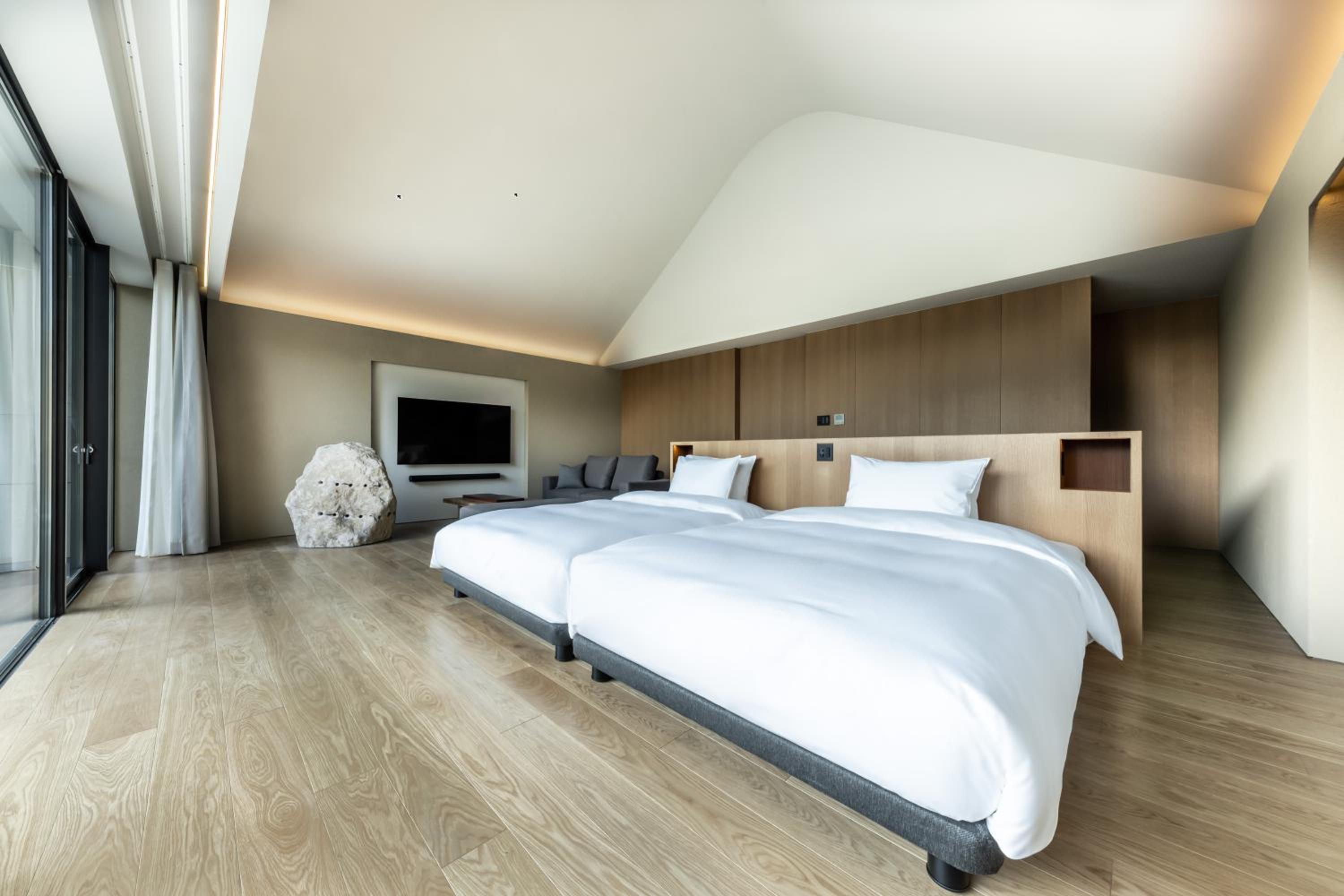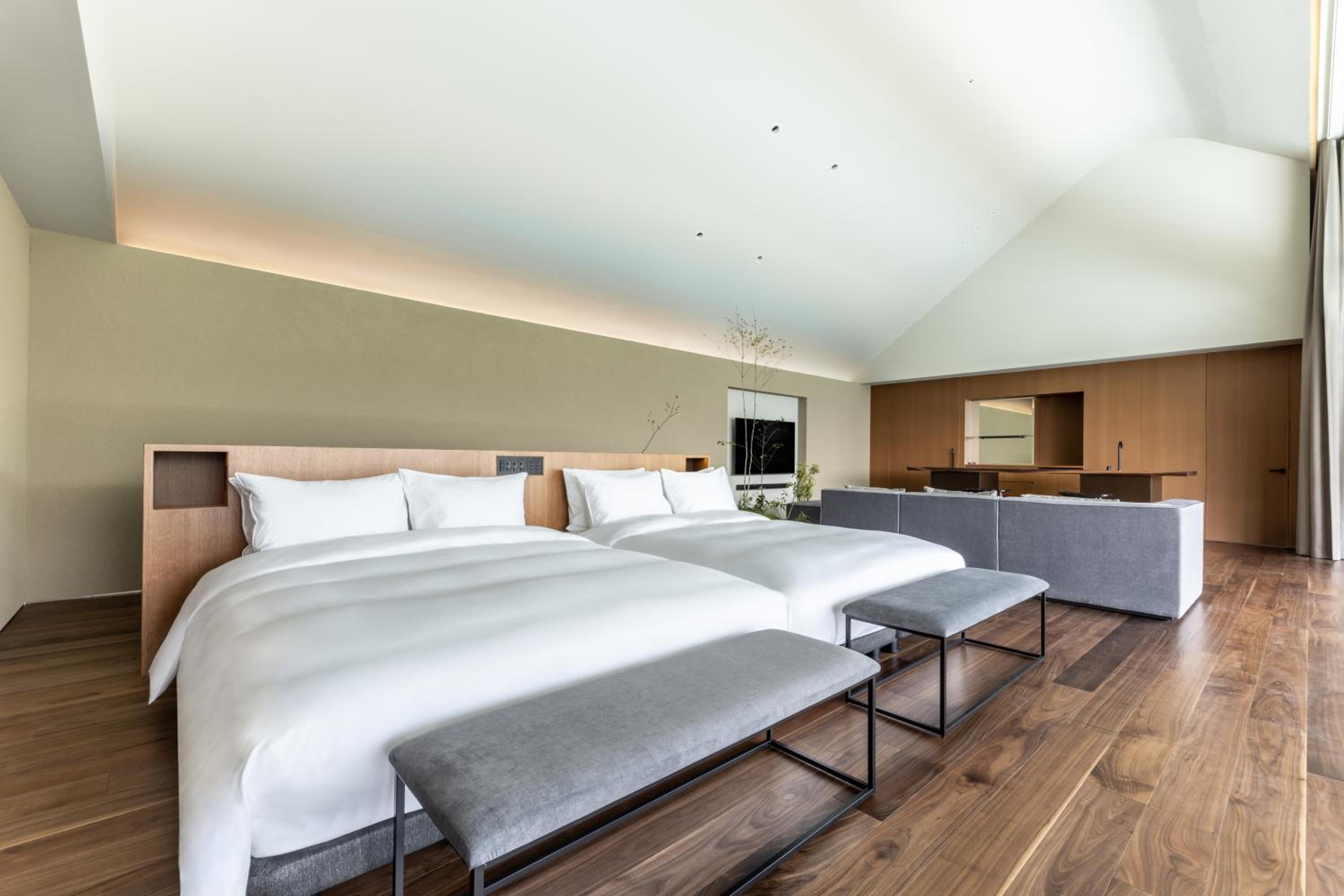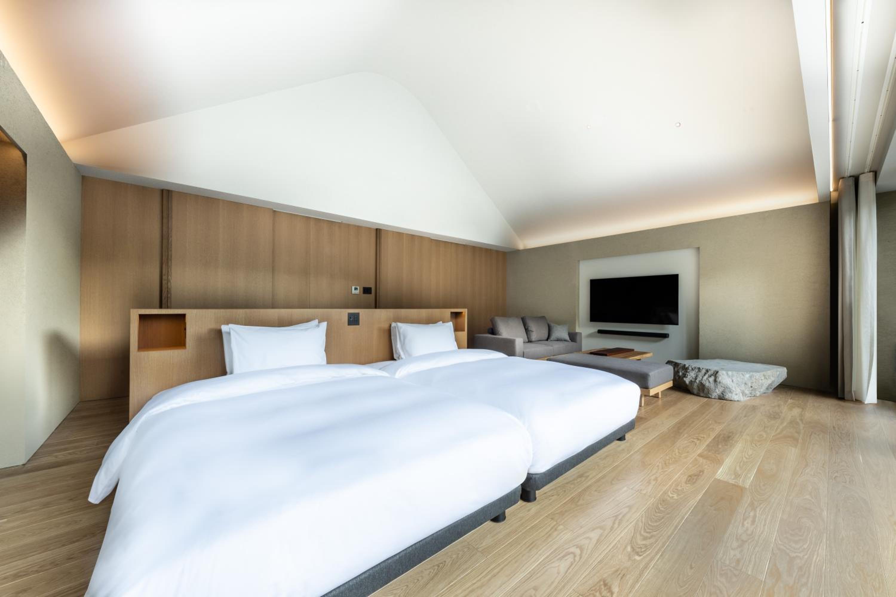 The hotel itself is very modern and zen which we love. They are very thoughtful in every way, even put ice cream in the room freezer for after onsen.