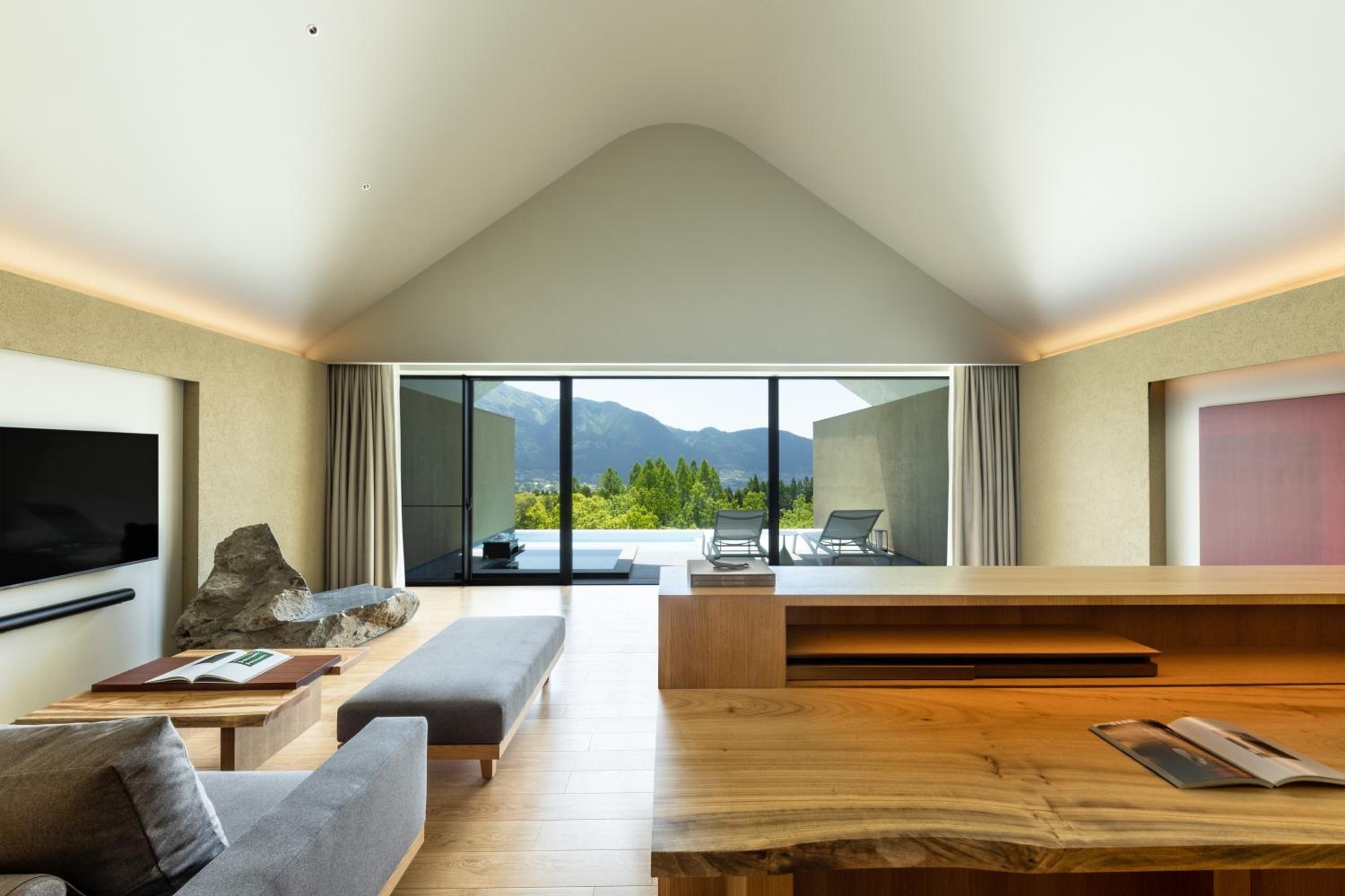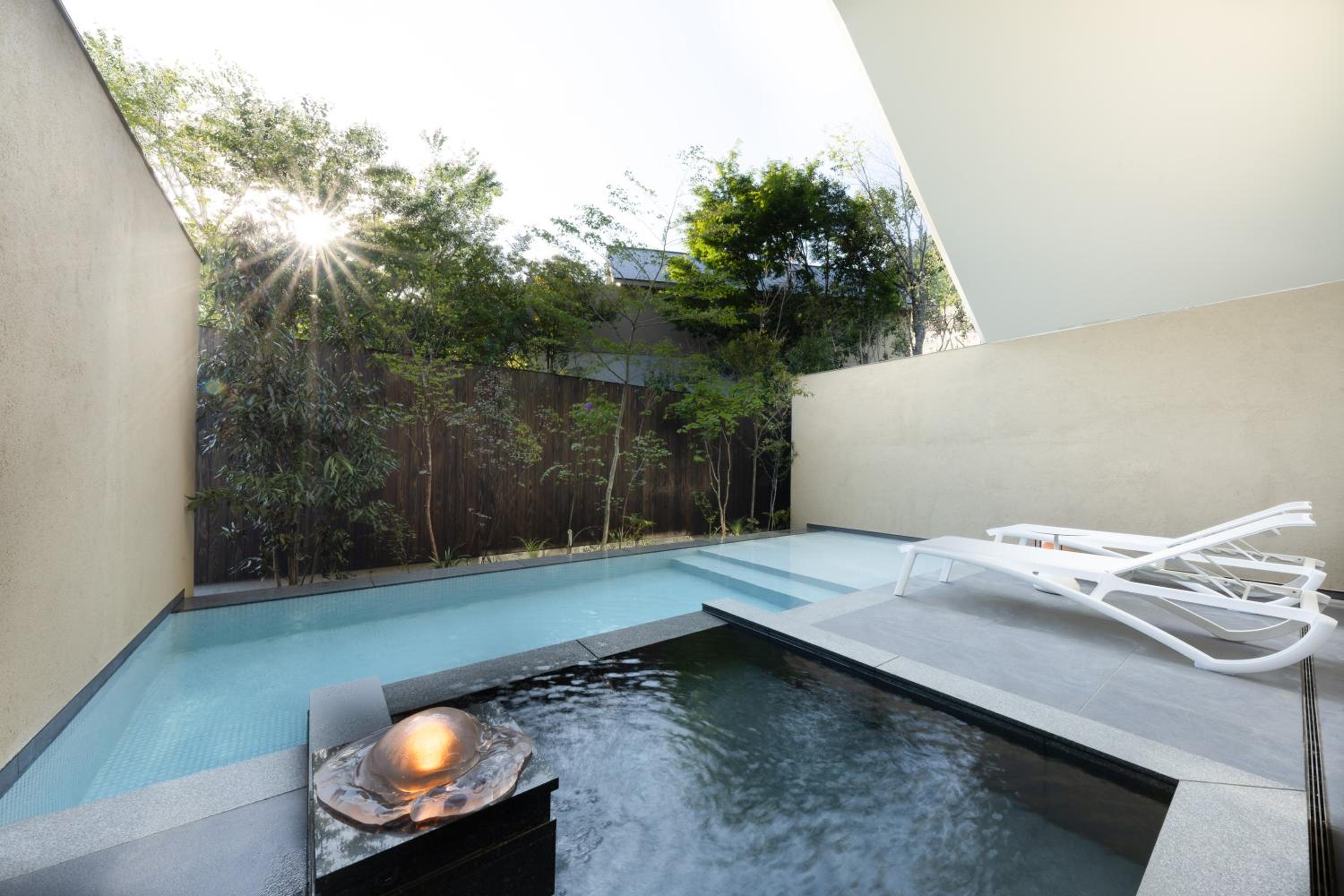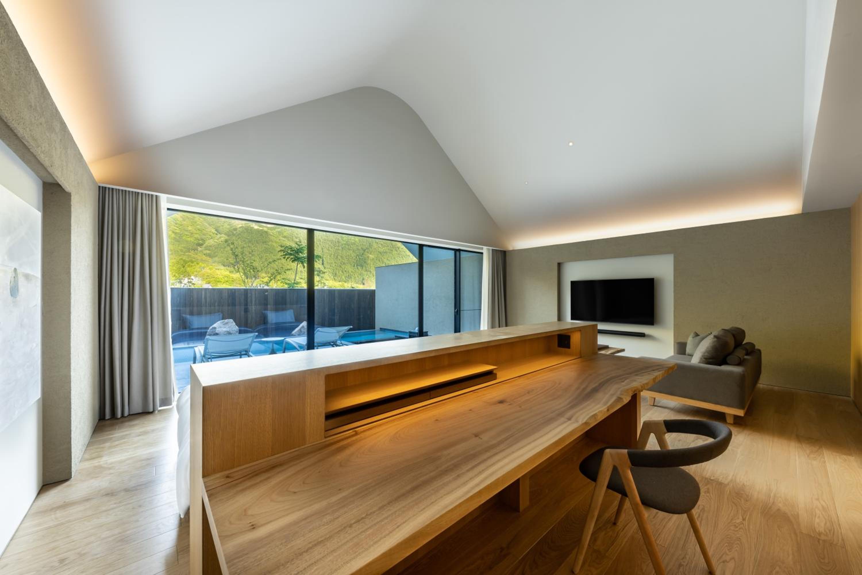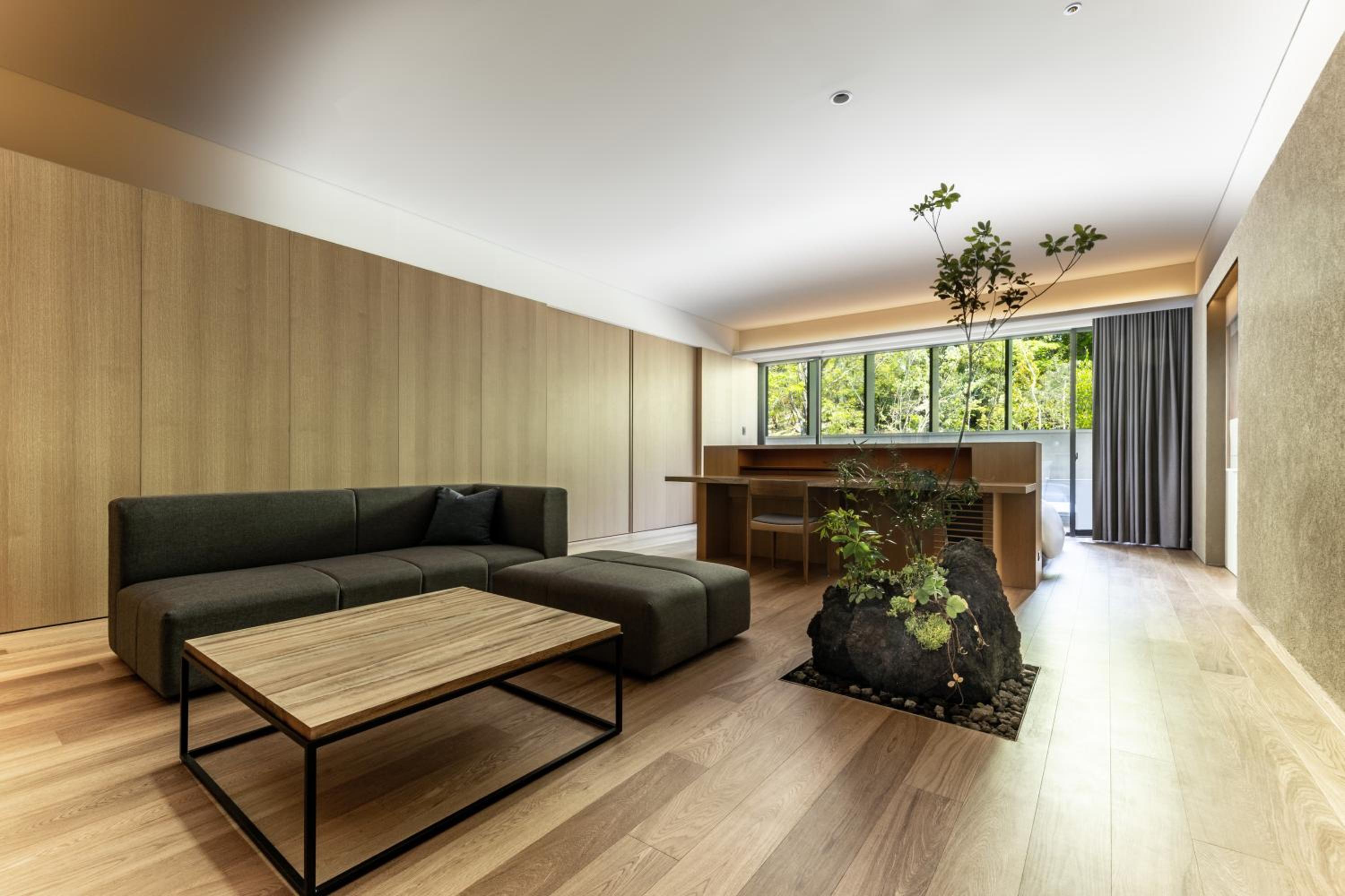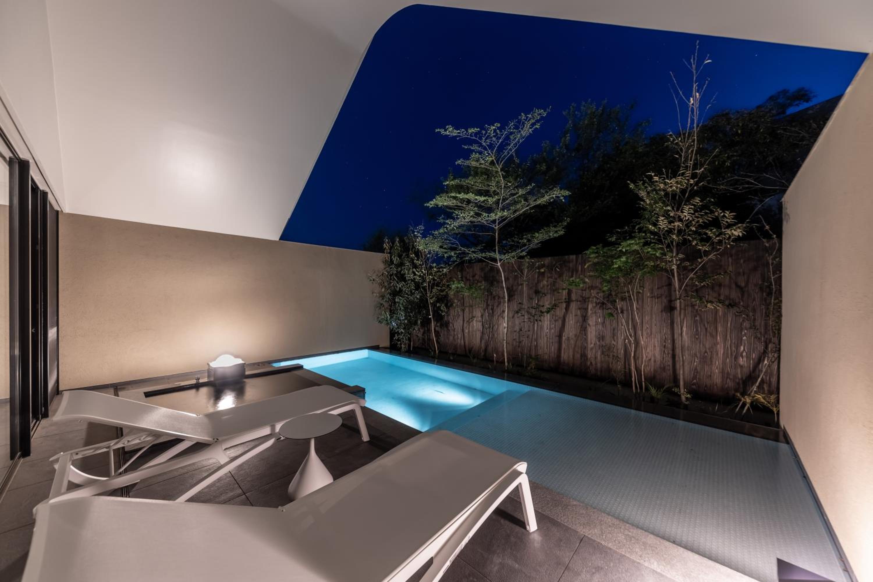 The design and beautiful trees facing the room including a plant in the room. The garden where pre dinner is served is beautiful. Details such as bathroom can access to the onsen pool and every details made the stay rejuvenating