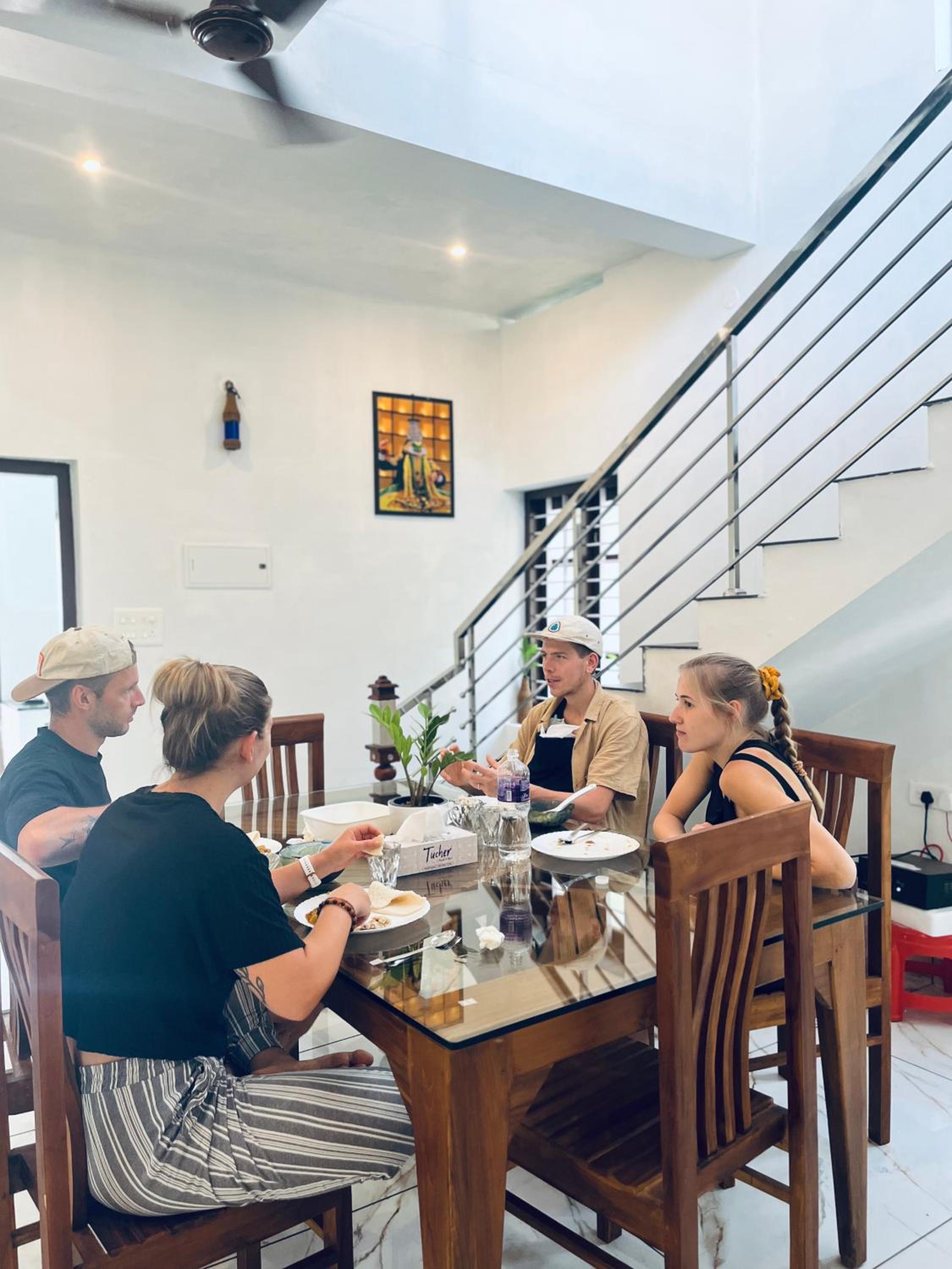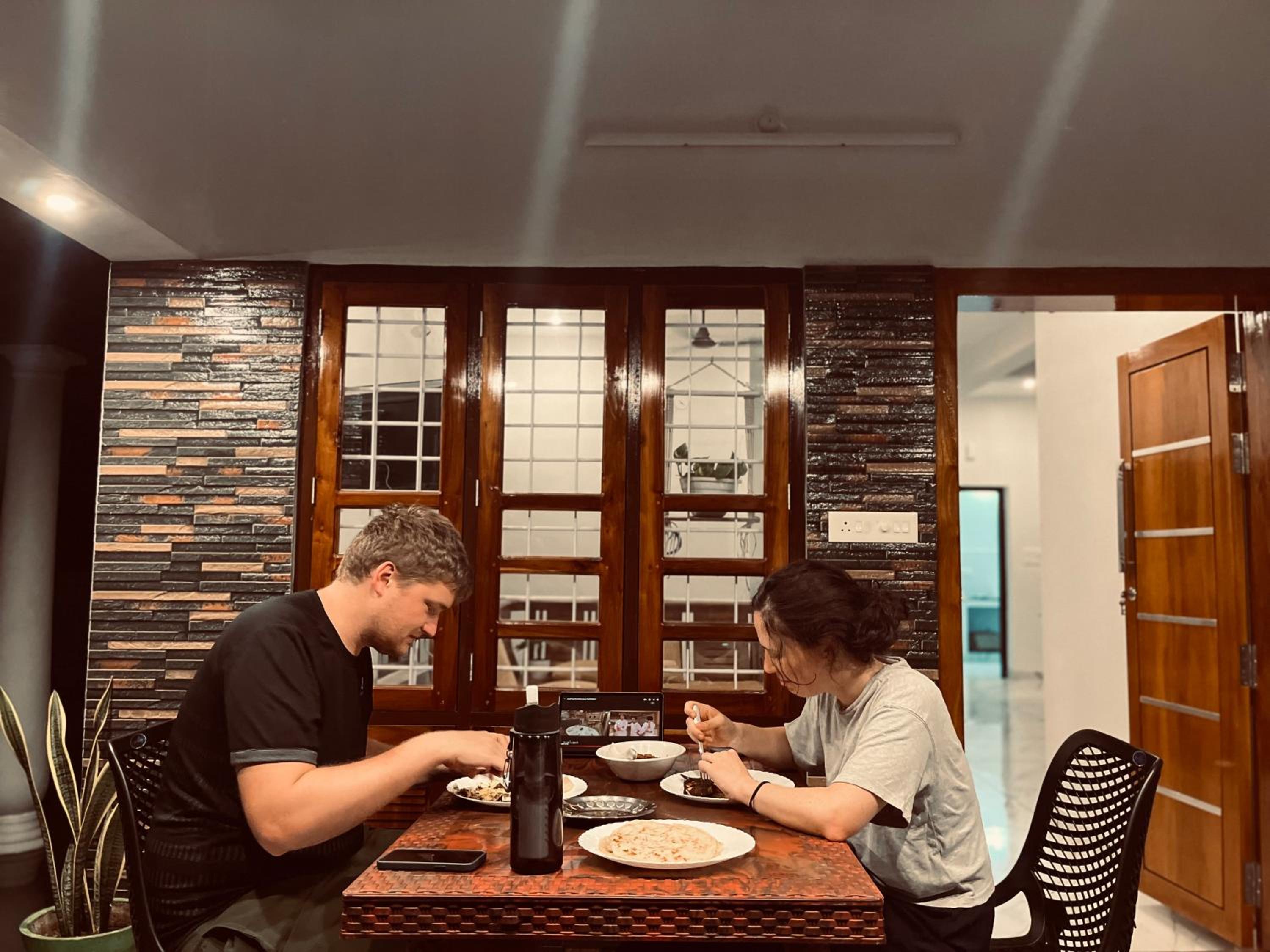 Wat een fijne en mooie rustige plek, een oase in de Backwaters. Het eten is zalig, zeker het avondeten wat je kan kiezen. De thali gemaakt door moeder van Riverrootsstays is echt heel lekker. Haar zoon Karun zorgt voor alles, hij is er in de ochtend bij het ontbijt en in de avond bij het avondeten. Je kan hem altijd berichten mocht je wat nodig hebben. Het voelt daarom net alsof je er met een paar mensen die er ook verblijven ‘woont’ in het huis. De familie woont een paar huizen verderop. Er is een keukentje waar je zelf thee kan zetten en een watertank hier kan je je waterflessen zelf bijvullen. De kajak tour met zonsondergang echt super door de Backwaters, zo groen echt door een oerwoud. Heel anders dan de Backwaters bij Cochin, waar we ook hebben gekajakt. Aanrader en Karun begeleidt het aks gids echt goed. Ook de boottocht in de ochtend was mooi en gevarieerd. Ook fijn. Je kan fietsen of scooter huren. Er zijn veel mooie vlinders te zien en vogels. Ook een mangoest gezien in de tuin die even voorbij kwam. Geweldig.