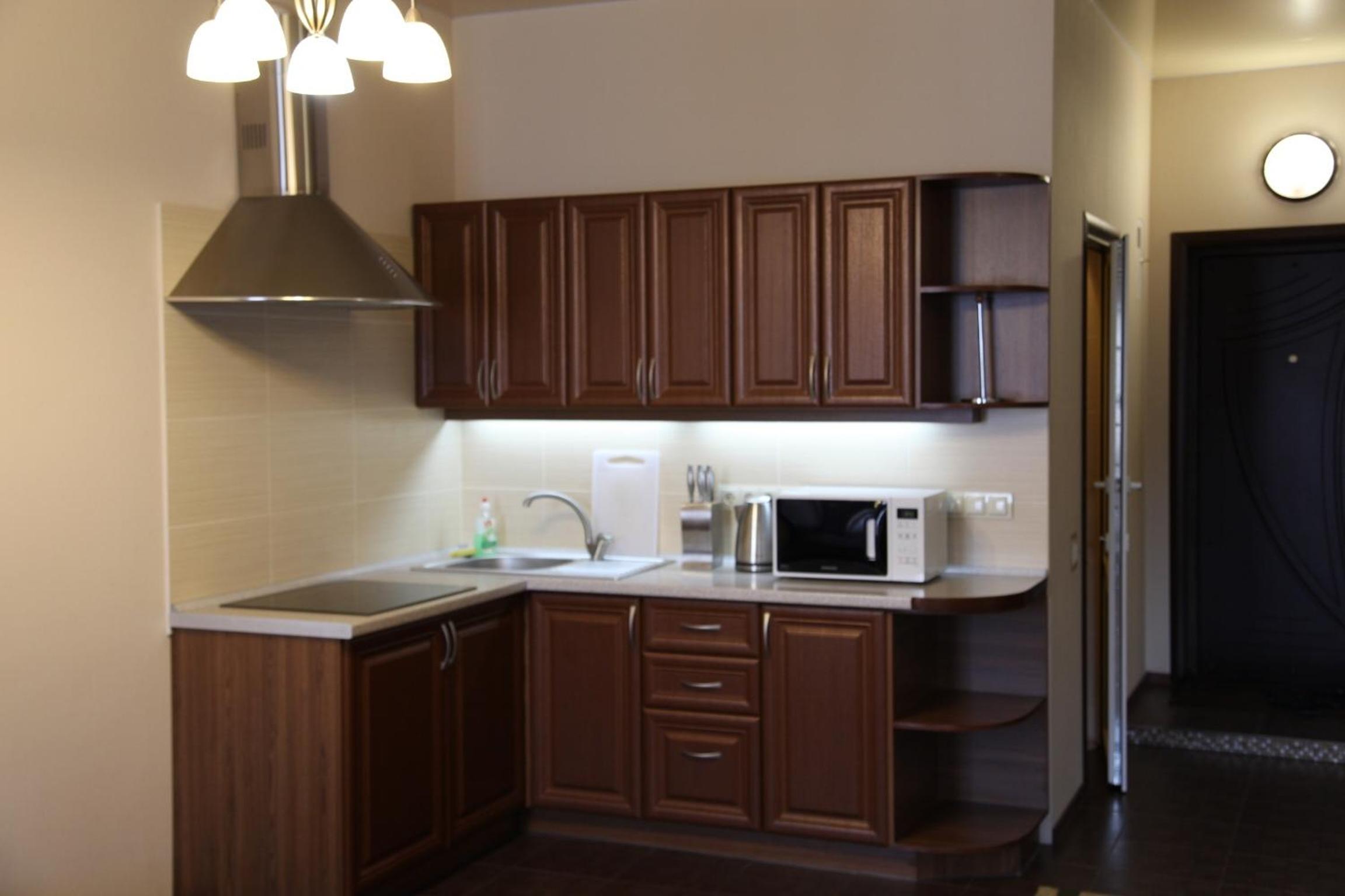 Конкретно у нас не було кухні. Лише мікрохвильова і холодильник. Але за ці гроші - це норм.