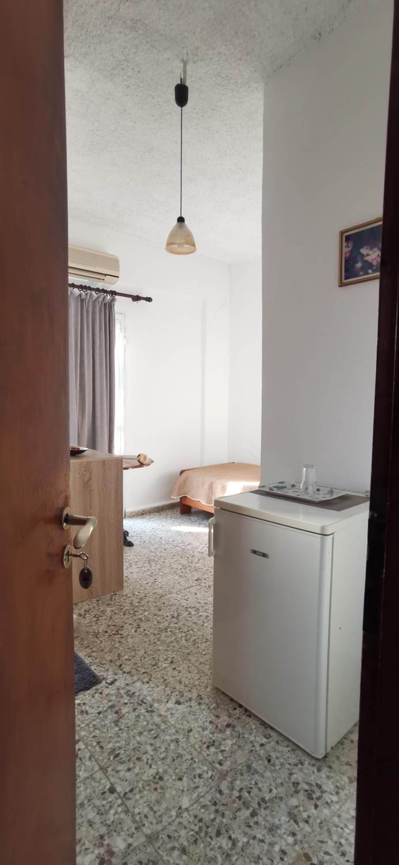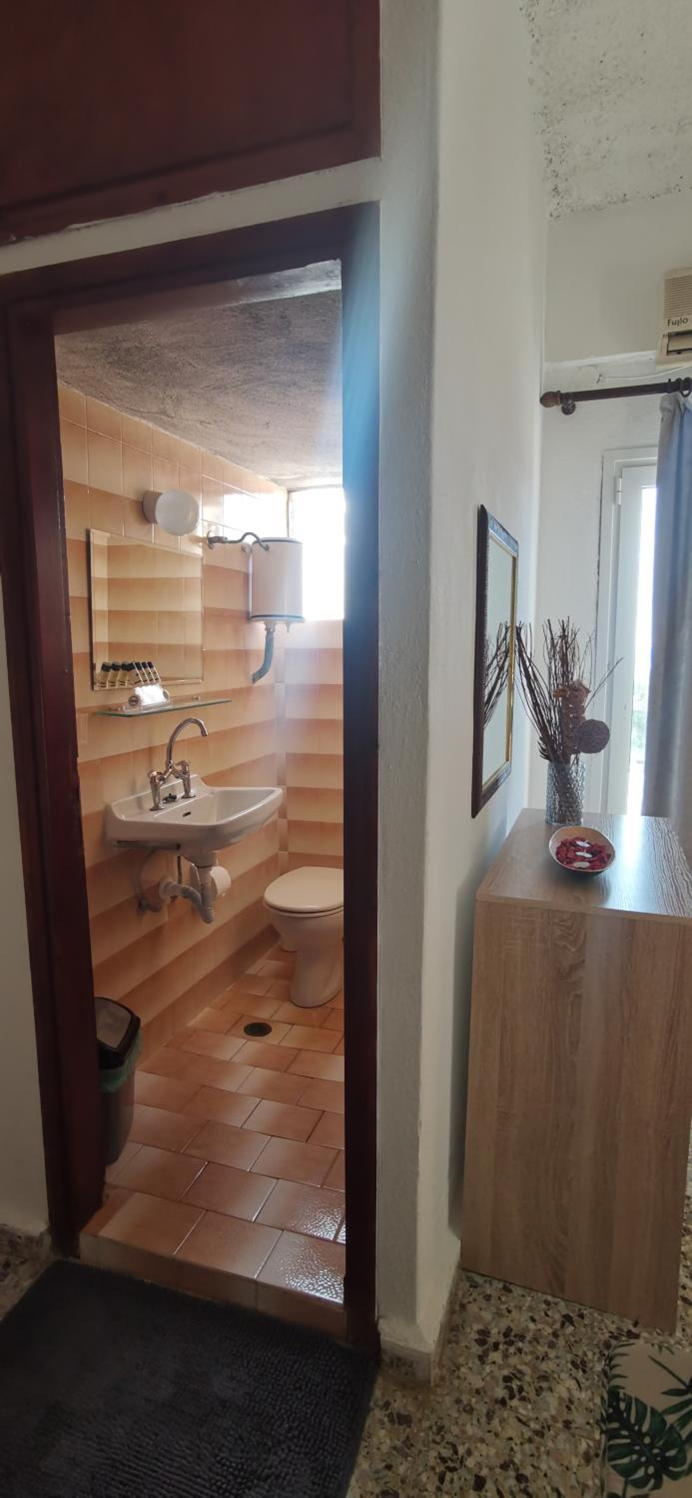 Φασαρία από τις πόρτες το μεσημέρι. Πολύ μικρό δωμάτιο. Δεν είχε τηλεόραση και δεν είχε χώρο για ντουζιέρα. Τα νερά έπεφταν σε όλο το μπάνιο. Η αλήθεια είναι ότι το παρατήρησα αυτό στην ιδιοκτήτρια, η οποία όμως με καθησύχασε ότι είναι σε γνώση της.