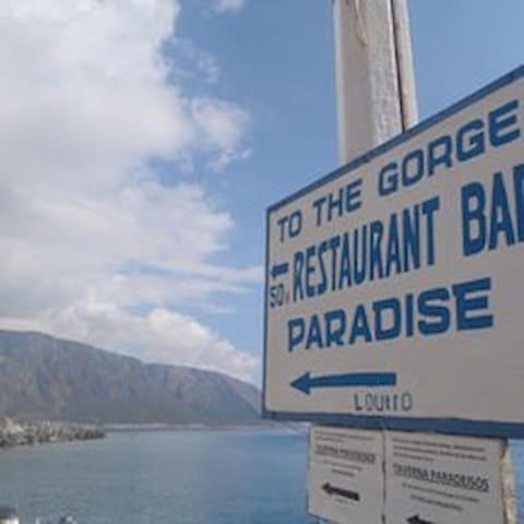 Die Lage zwischen des kleinen Dorfes am Hafen und der Samaria Schlucht ist sehr schön. Die Terrasse ist ein sehr schöner Platz mit Blick aufs Meer. Das Essen ist super gut. Frisch gekocht von Georgios. Die Inhaber der Pension sind so symphatisch und hilfsbereit. Ein Geheimtipp auf einer Südküstenreise!!!