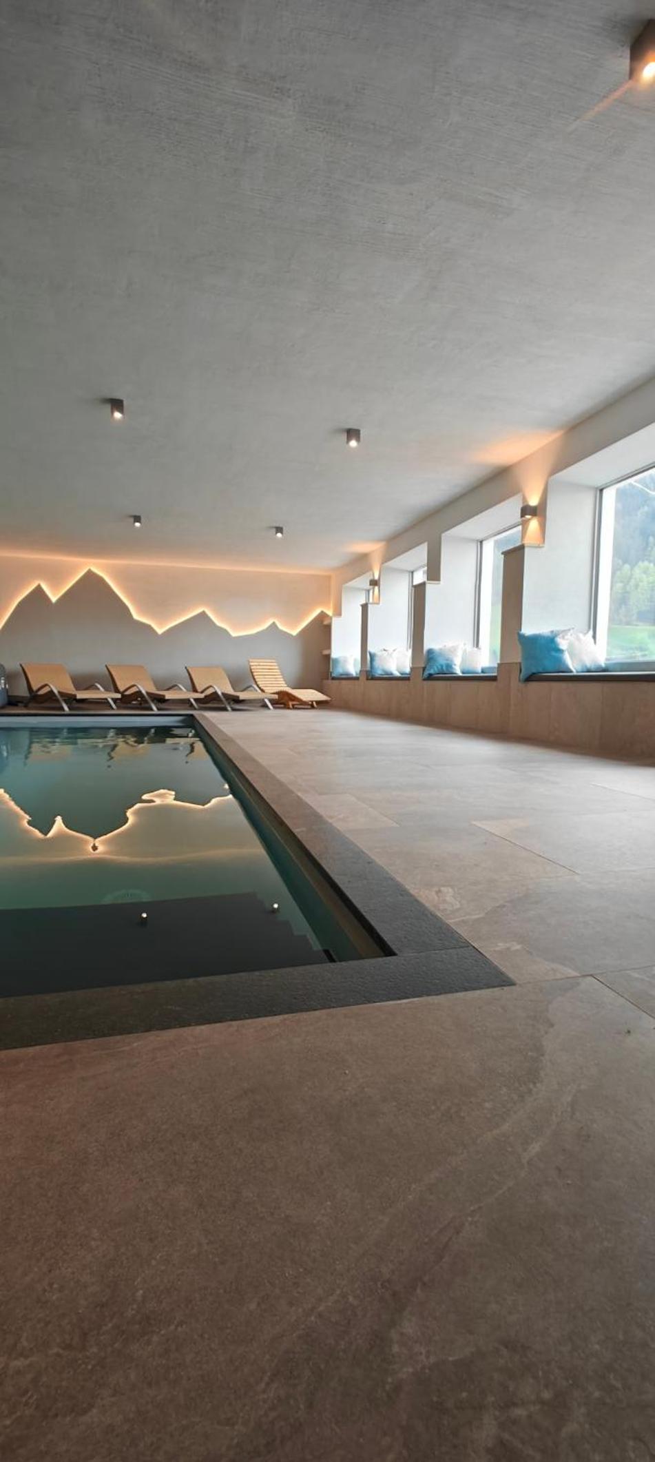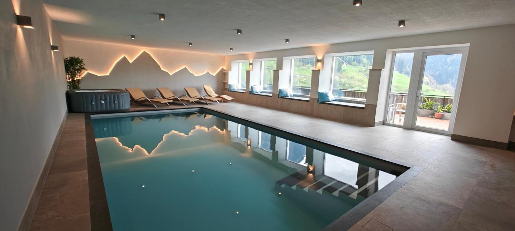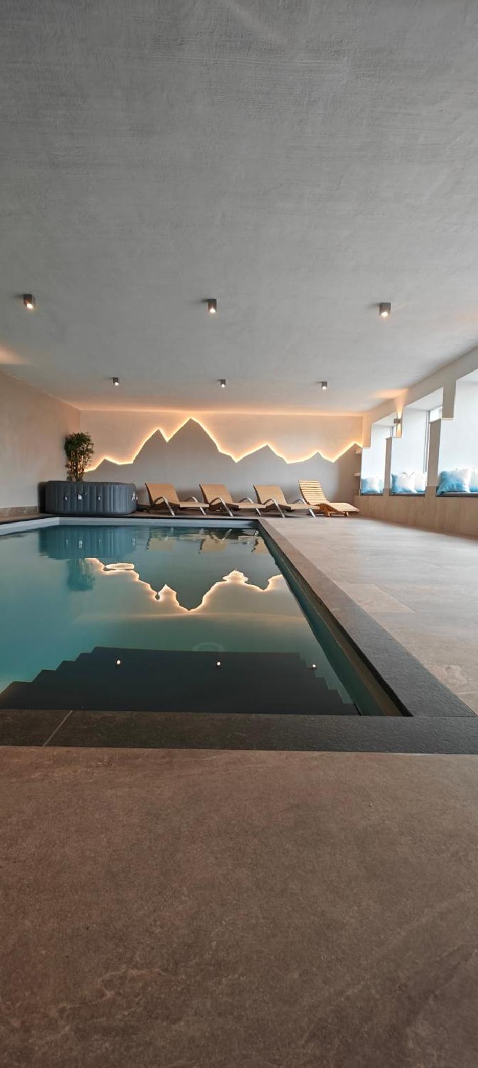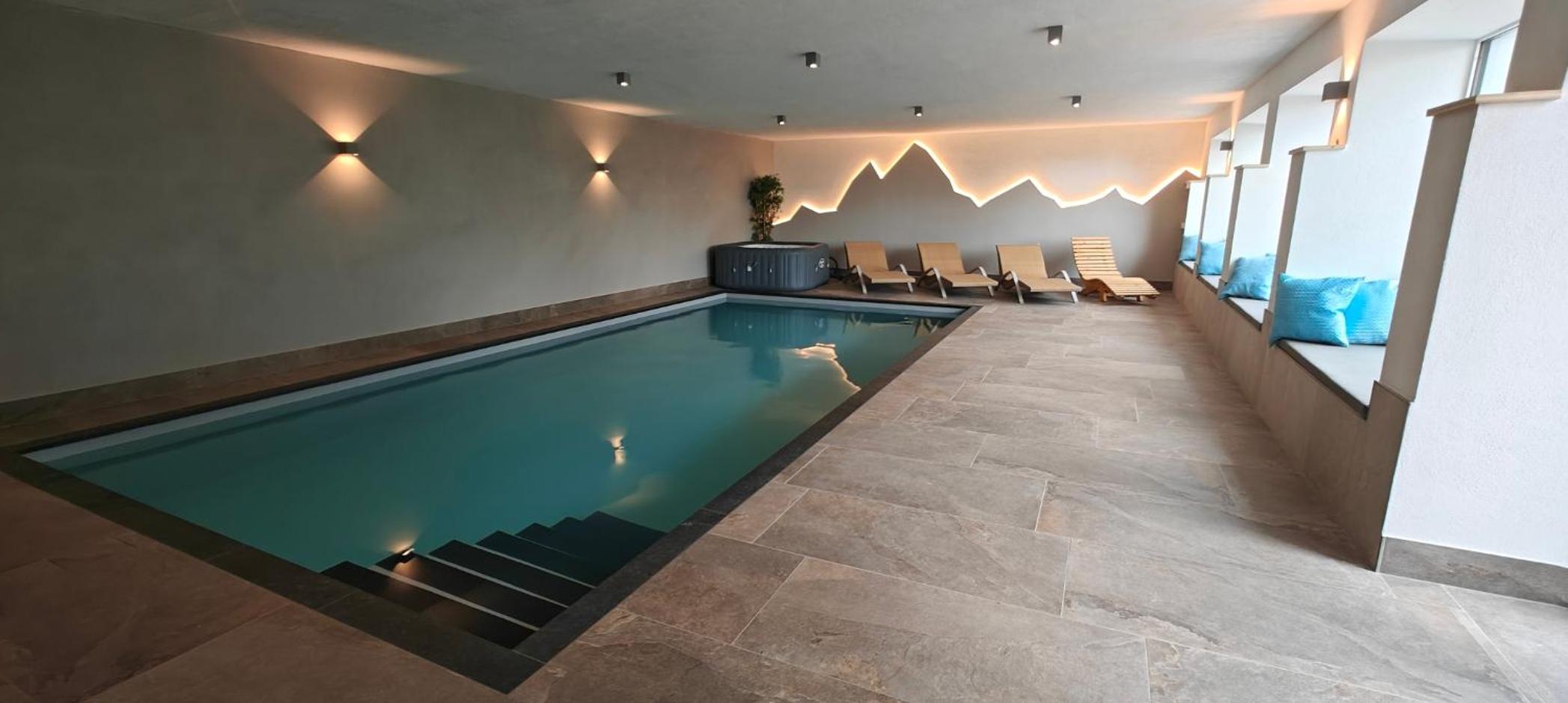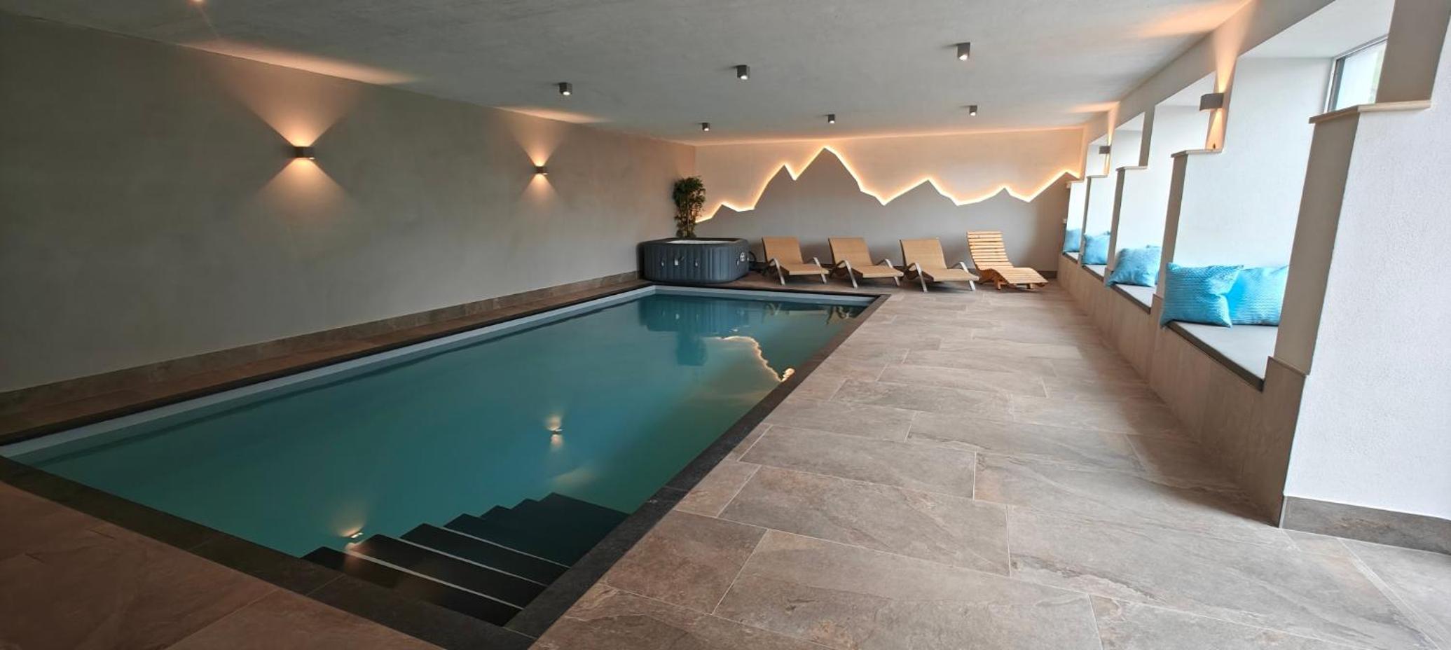 Pěkný welnes s bazénem, ve kterém je příjemně teplá voda a je k dispozici i sauna.