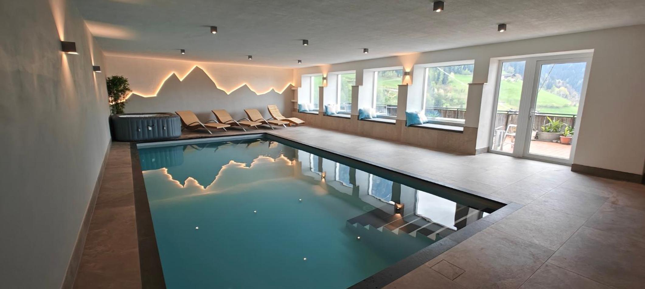 Schlossberg in San Leonardo offers a range of luxurious amenities including an indoor pool, sauna, and a garden for a relaxing stay.