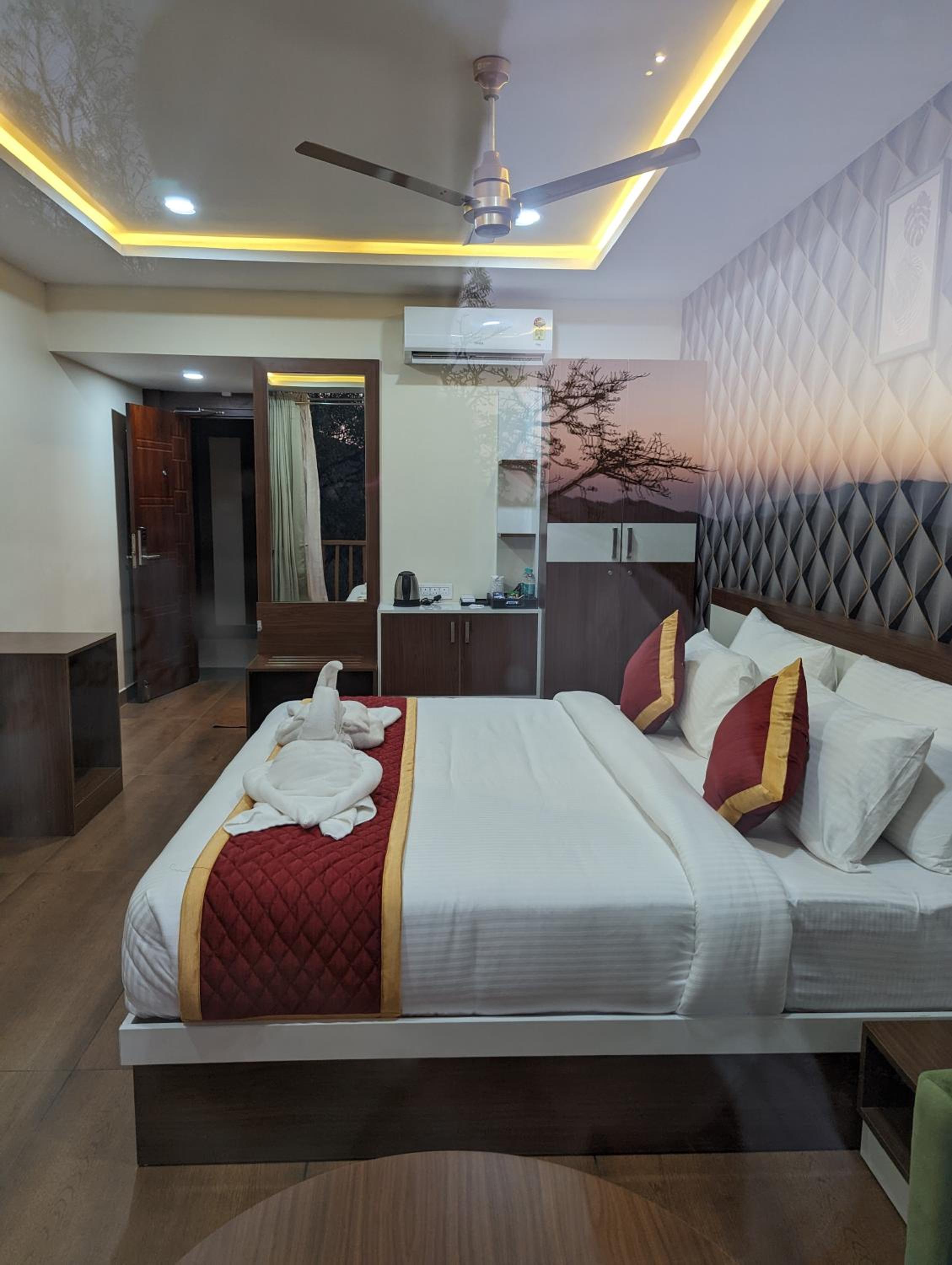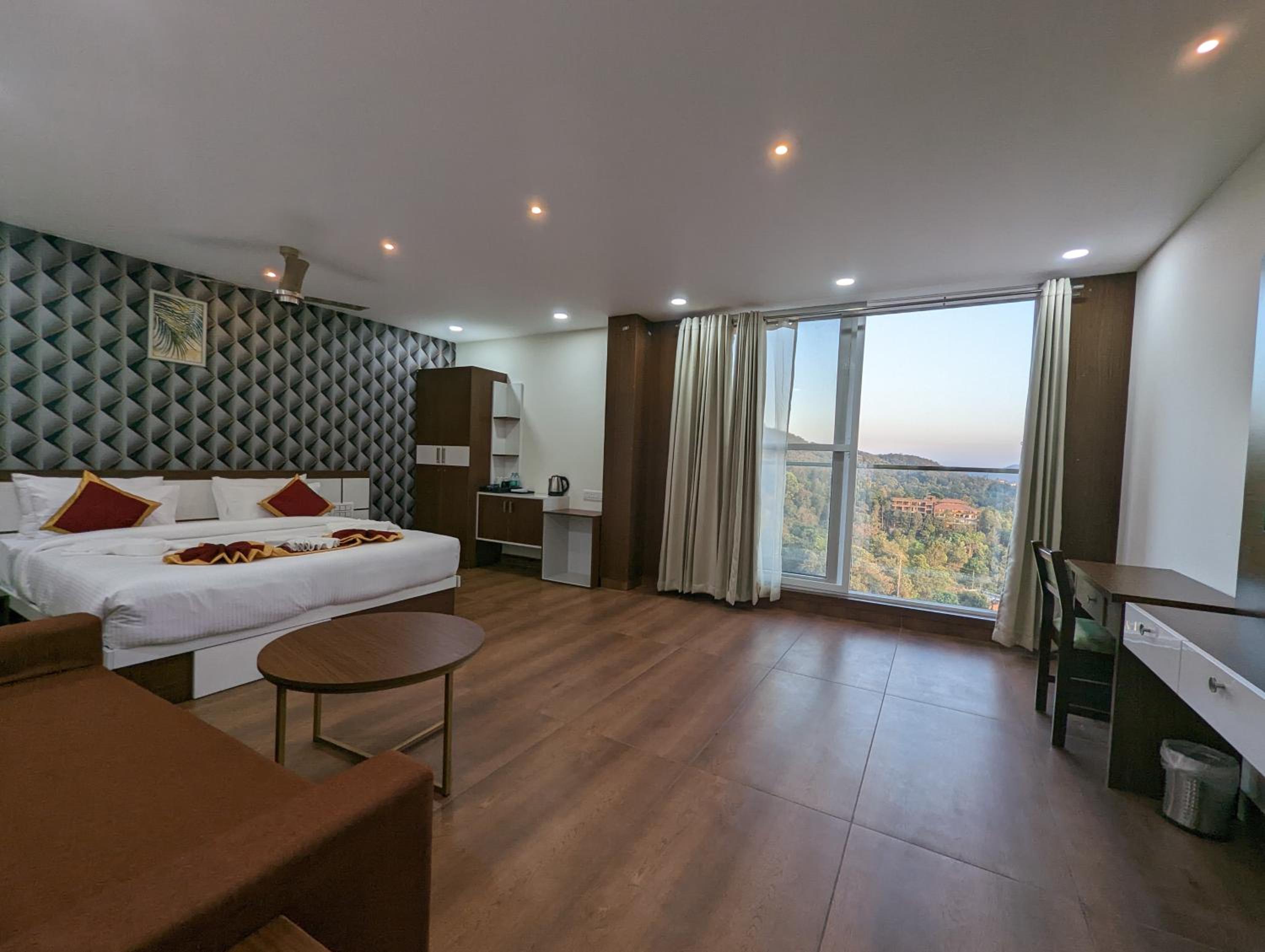 Cleanliness and Room service was not upto the mark. The rooms were given untidy. There were problems in the washroom. We booked 3 rooms , all 3 rooms had issues with their washrooms. The room given to us wasn't clean, the flies and ants were seen and the washroom wasn't clean as well. There was commode problem in the other two as well.The staff should hand over the room to the customer only post internal checks and approval from the housekeeping department. The view from one of the room was not that great. The balcony ceiling was leaking so couldn't step out to enjoy the view. The property looked like still under construction. the semi suite view was far better than the other two.