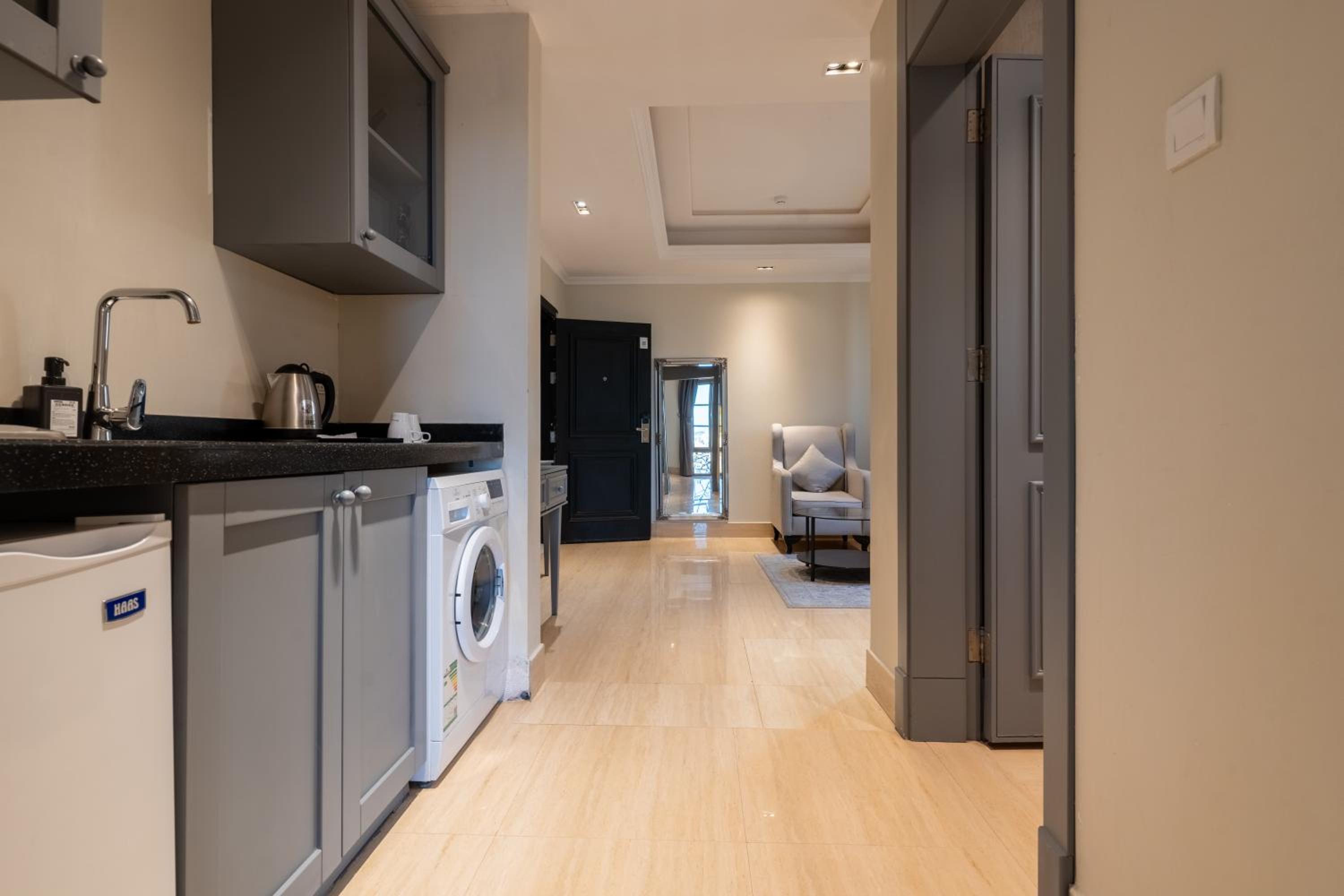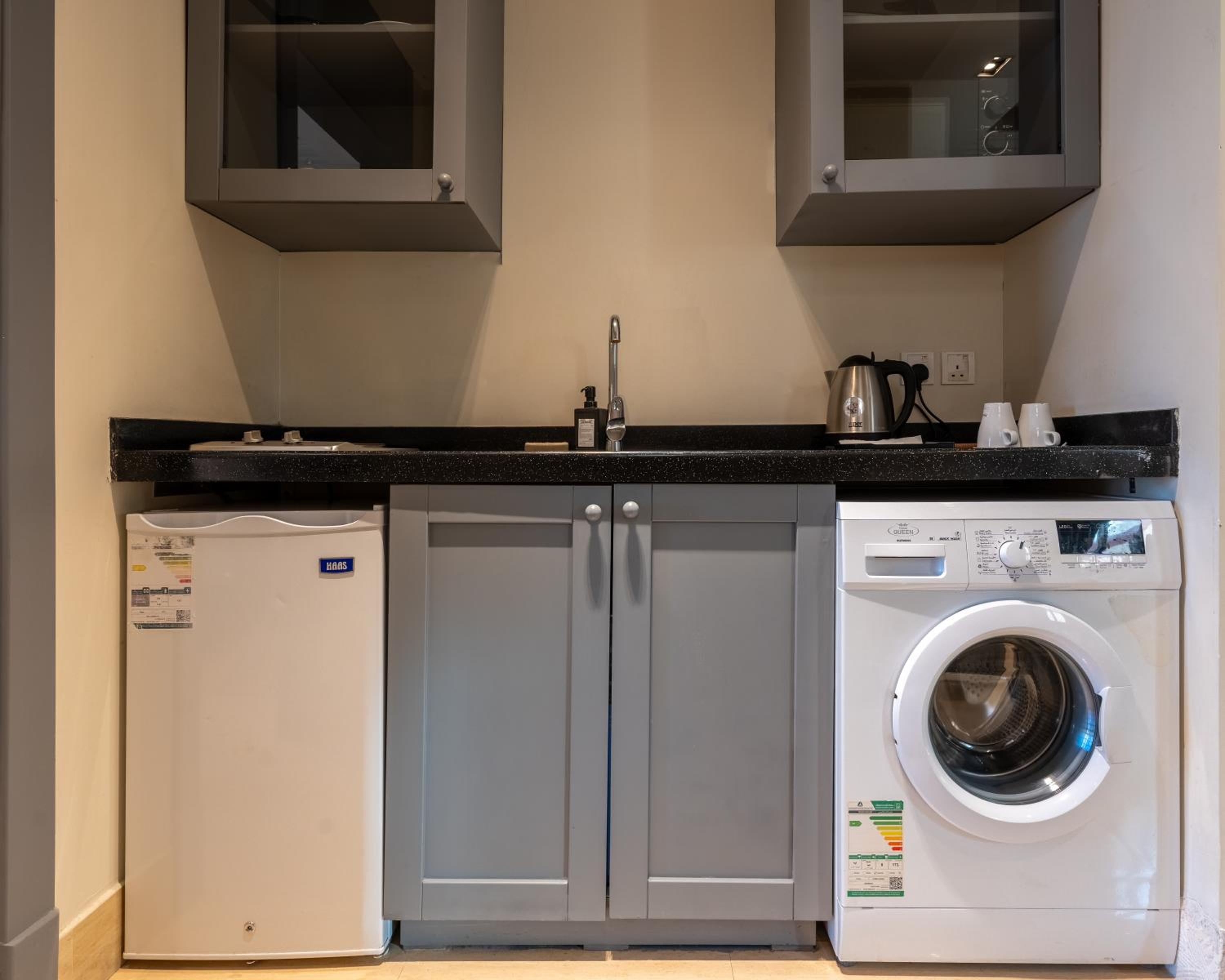 Experience comfort with air-conditioned units equipped with a range of amenities including a fully equipped kitchen, flat-screen TV, and private bathroom.