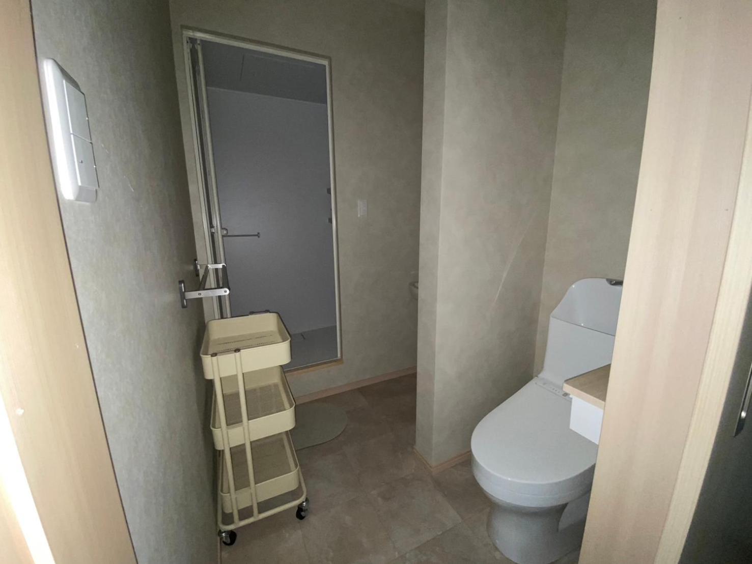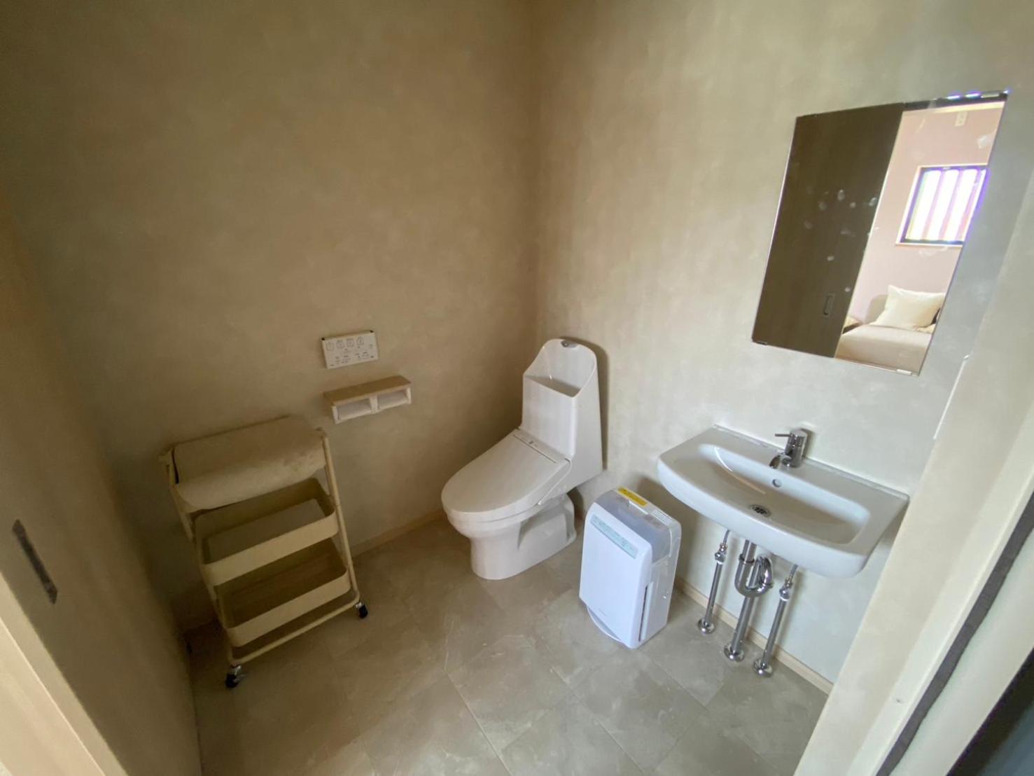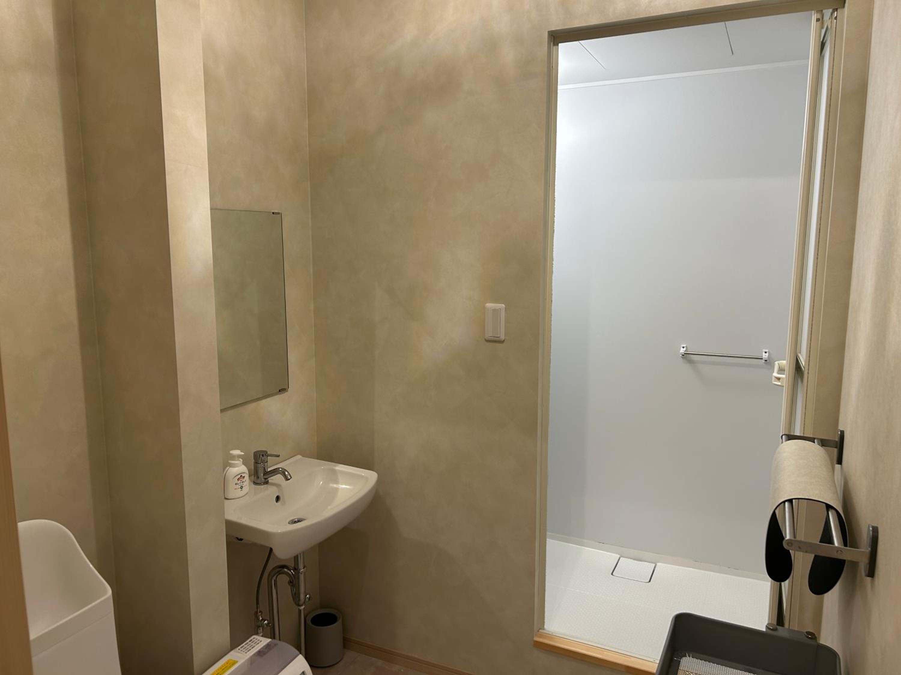 ・洗面所かコンセント差込み口があるか、または、コンセント差込み口近くに鏡があると良かった。(ドライヤー使用時)