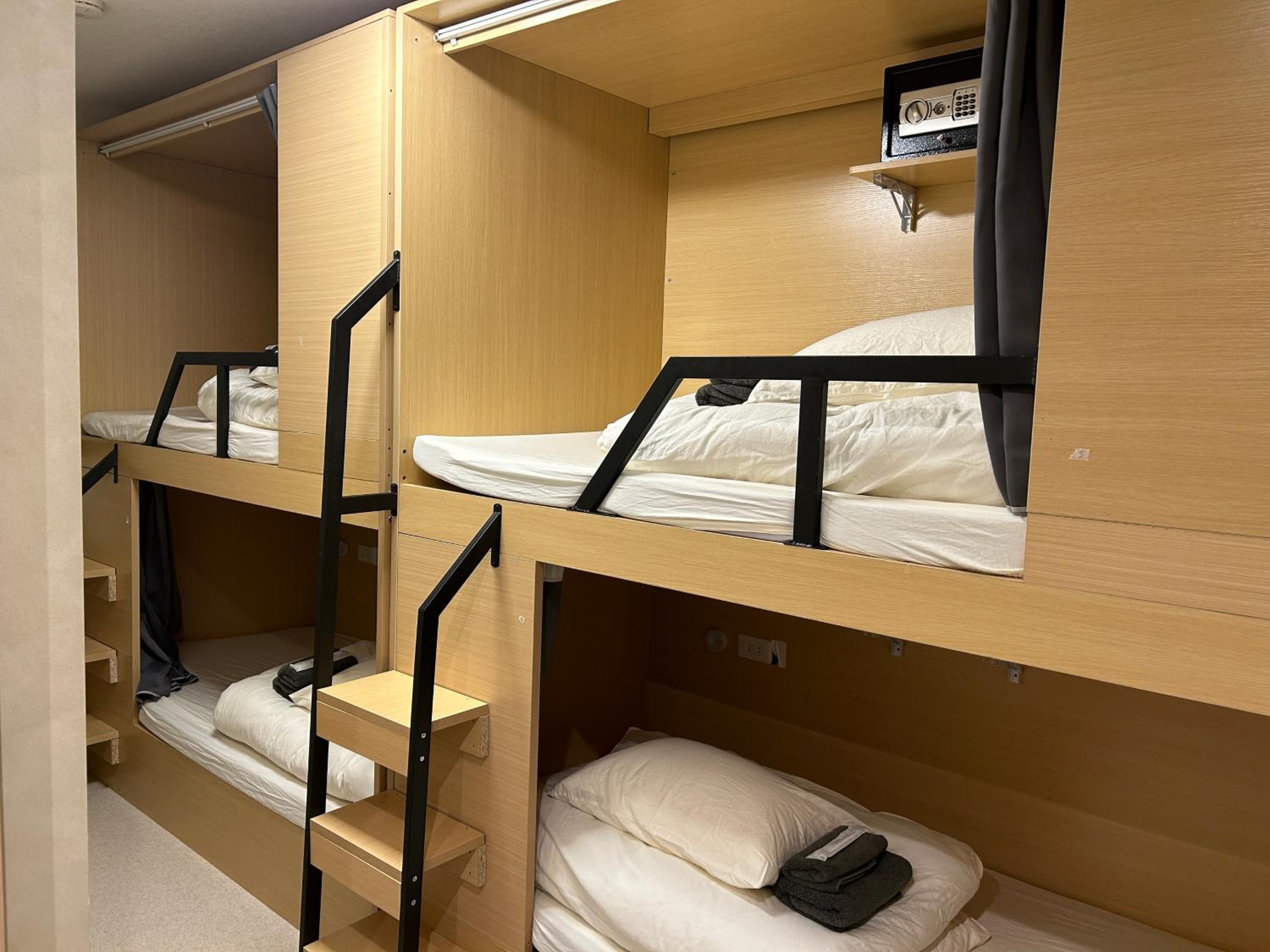Modern Amenities: Enjoy free WiFi and a safety deposit box in each room at SANDBoX.