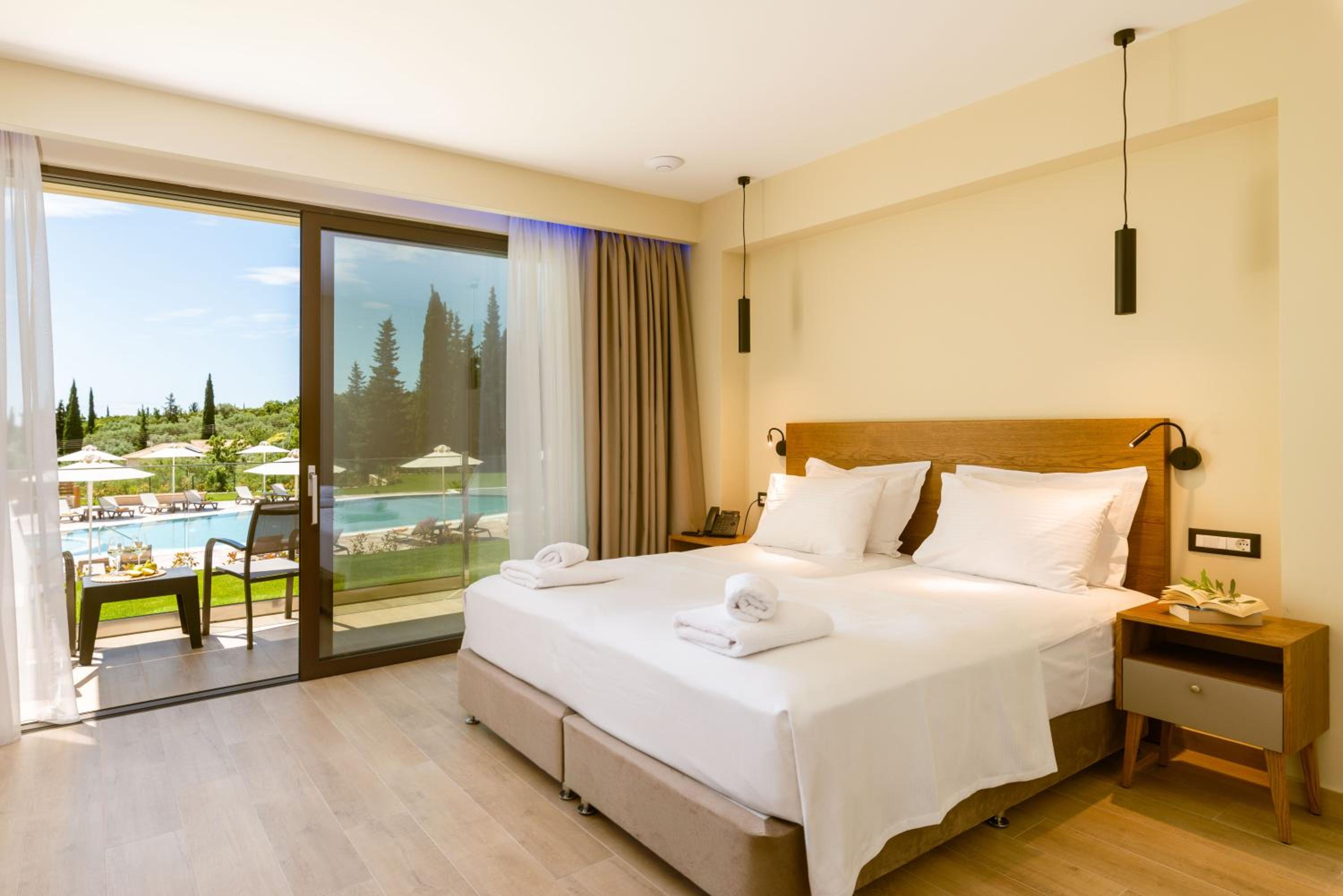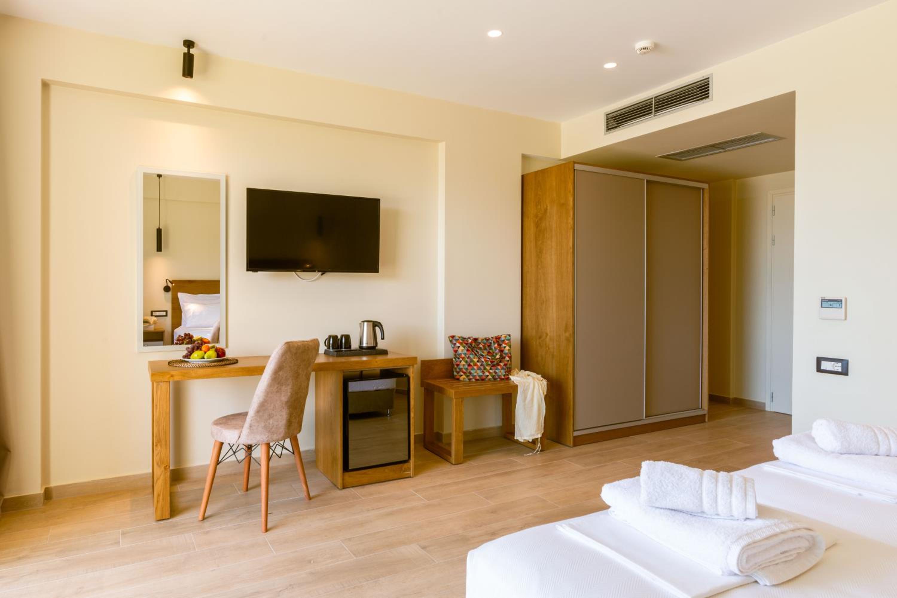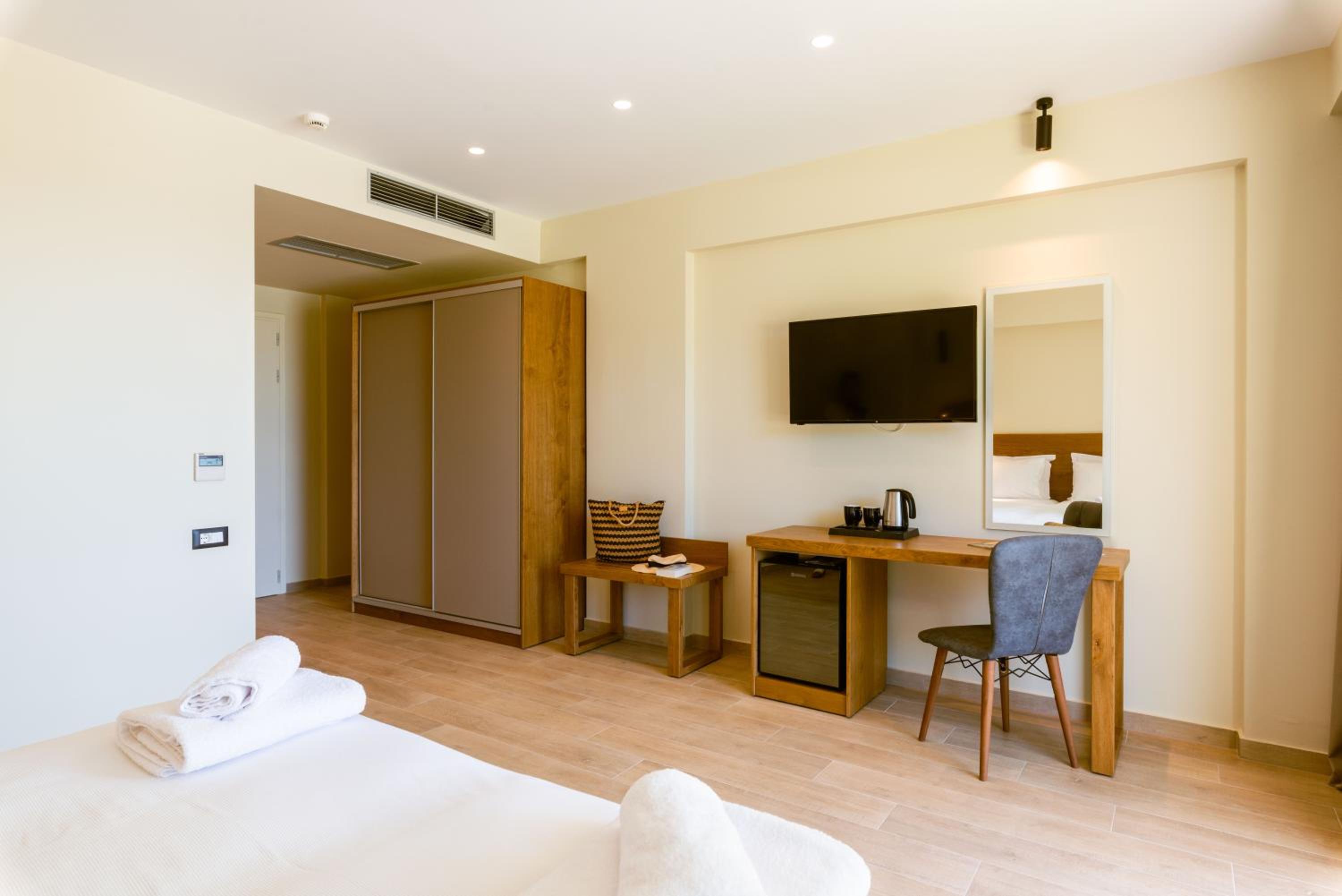 It is a brand new complex, situated at 5-10 minutes walking distance from the sea. Rooms are spacious. Manager and staff are very friendly and helpful. Excellent breakfast. Swimming pool is large with ample sunbeds