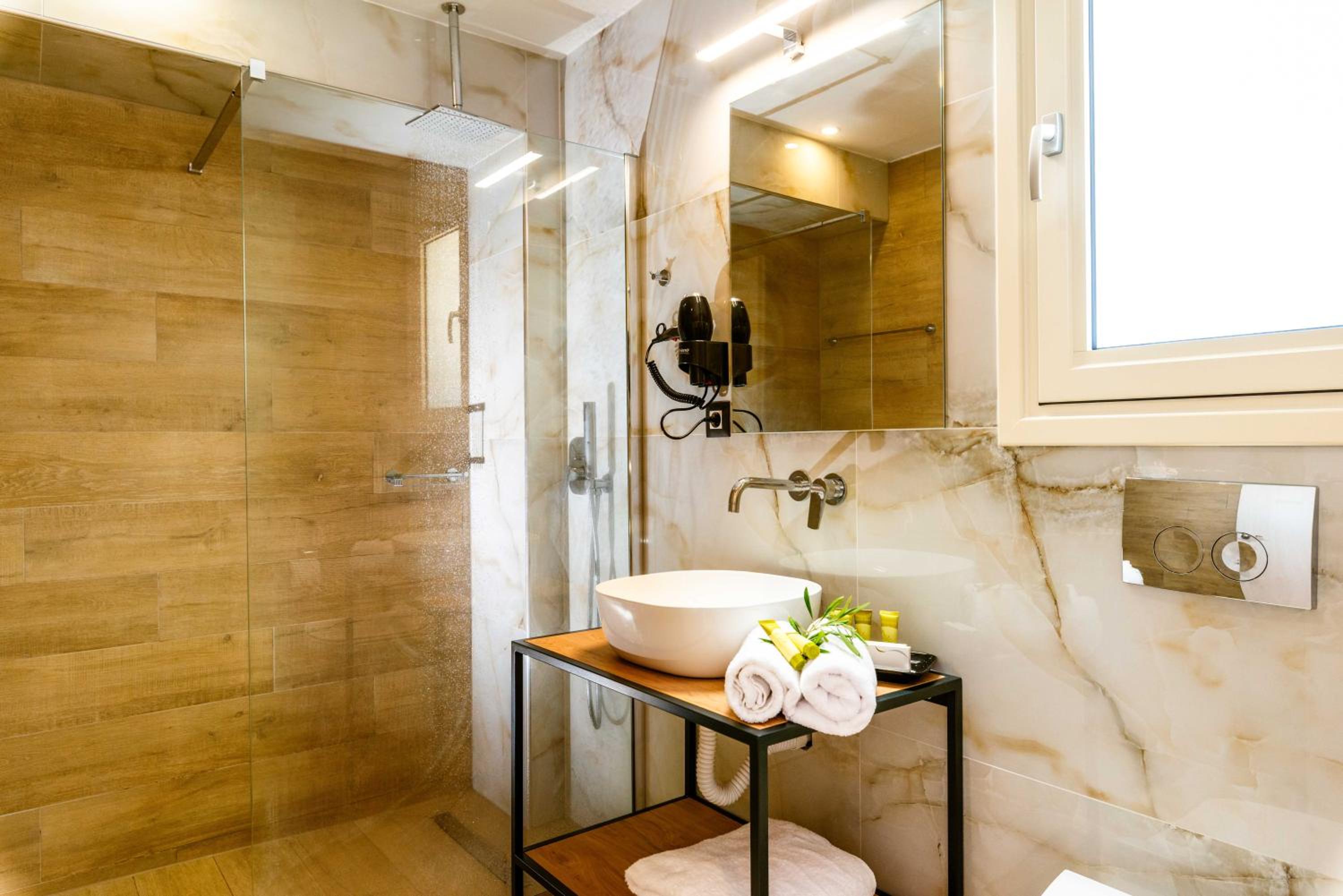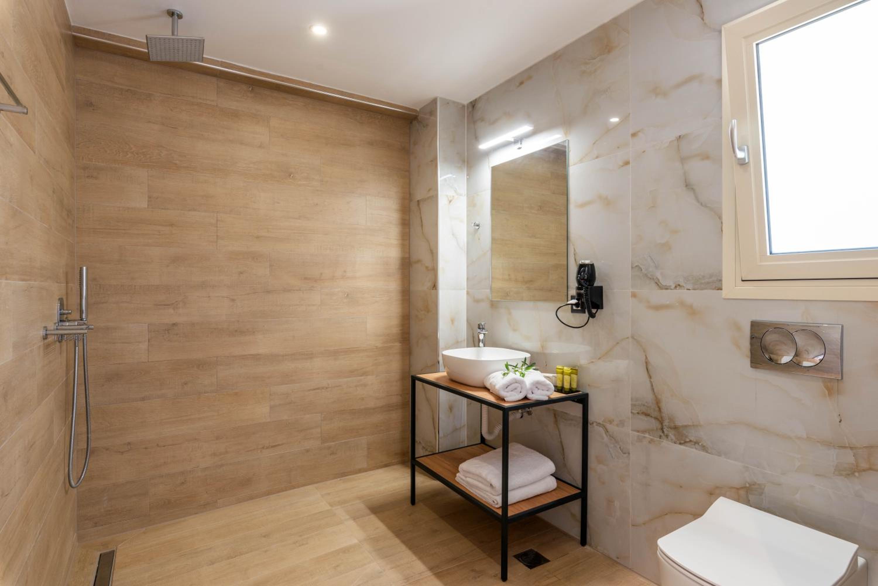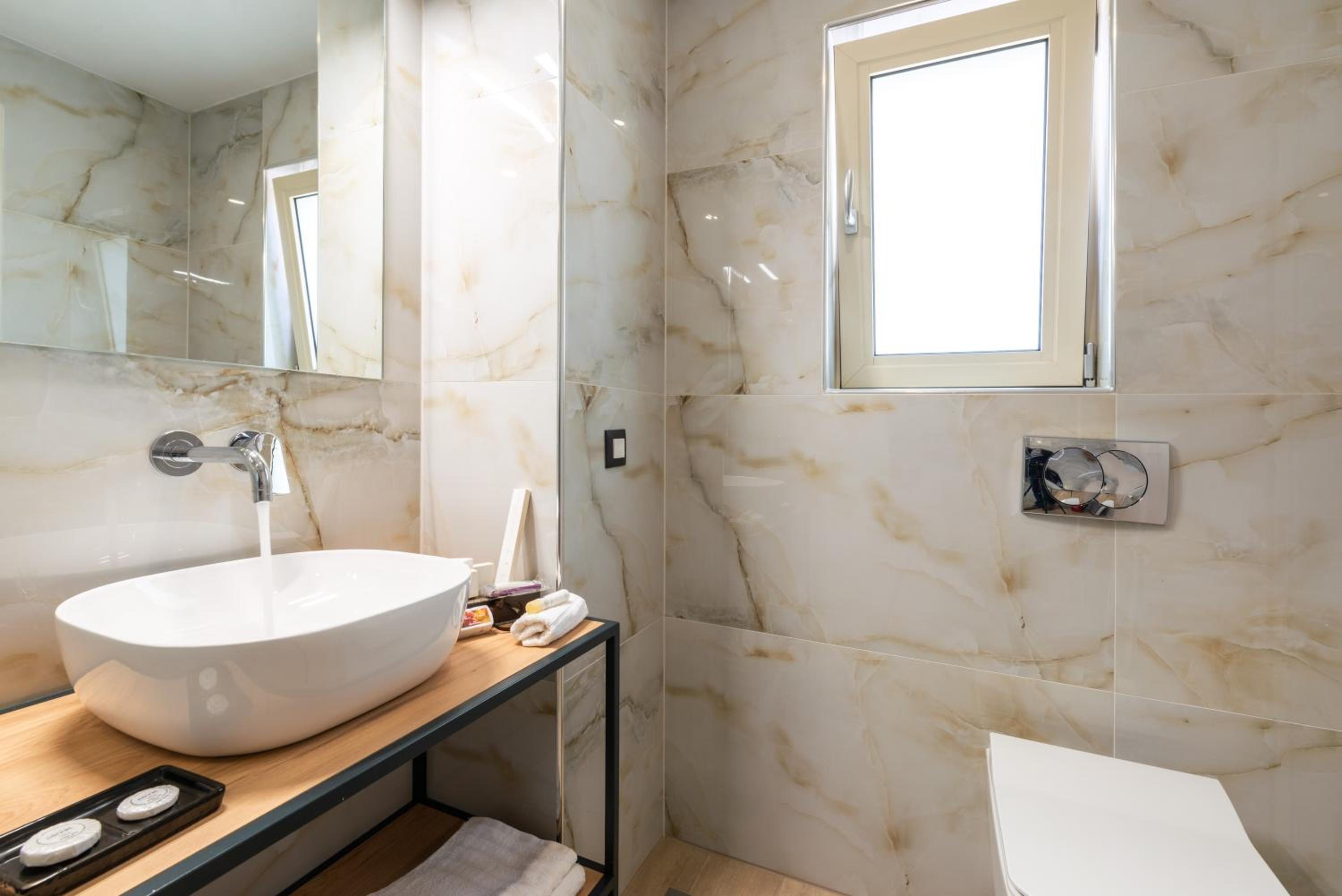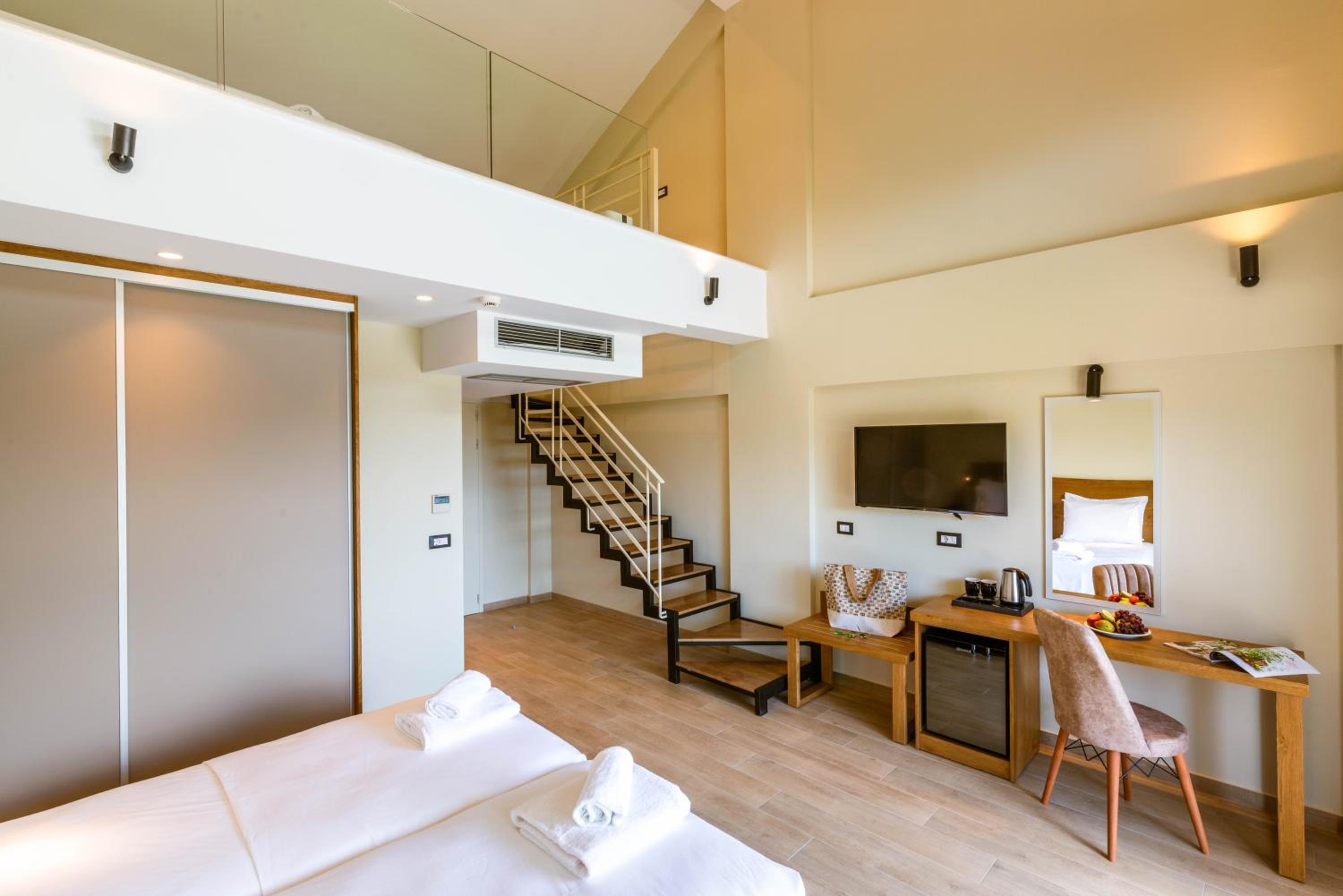 It is a brand new complex, situated at 5-10 minutes walking distance from the sea. Rooms are spacious. Manager and staff are very friendly and helpful. Excellent breakfast. Swimming pool is large with ample sunbeds
