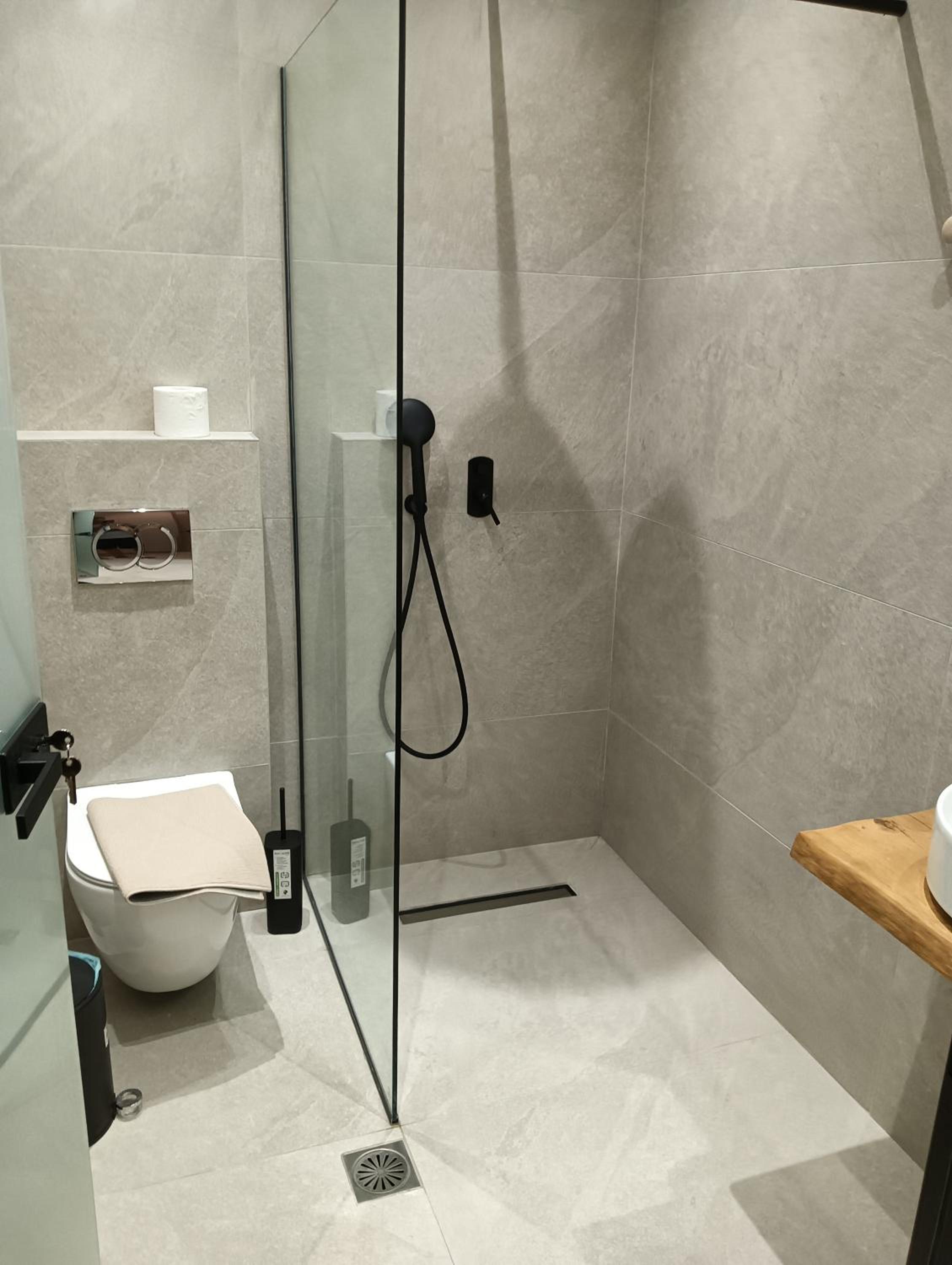 The flat is new, very good equipped, good water pressure, very good looking in general including bathroom, close to beach