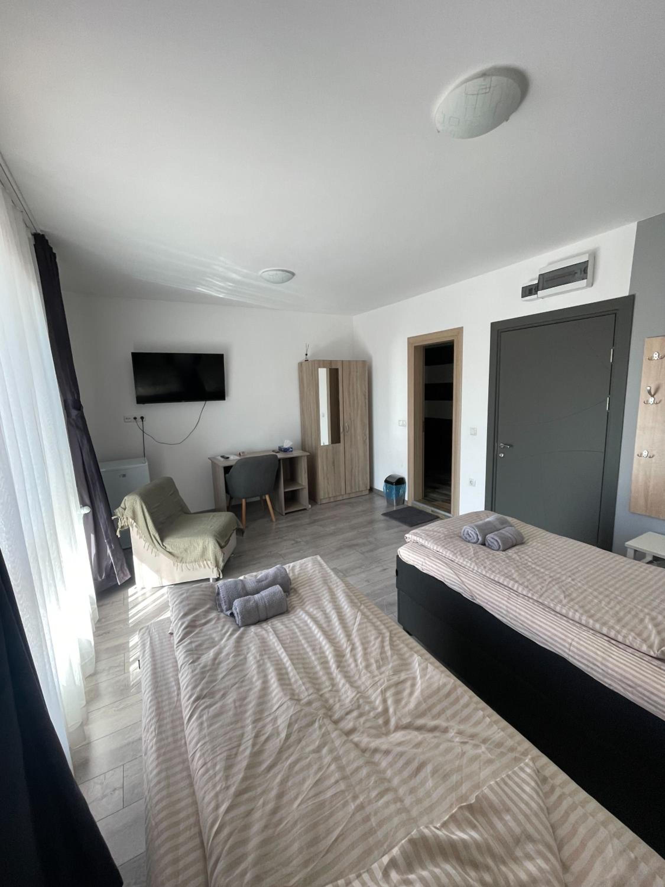 Често пътувам, и при наличие на места вече предпочитам изключително този хотел. Както винаги е безупречно чисто! Комуникацията е перфектна, инструкциите за заселване са точни и не оставят място за въпроси. Тихо и топло място, ново чисто студио с удобно легло и възглавници, абсолютно чисто бельо. Всичко работи и е ново. Никакъв намек за цигари (което в България е голяма рядкост). На закътано място е, но в близост до Цариградско шосе и летището, което е голям плюс при сутрешния трафик. На партера има микровълнова, кафе, чаши, и сникерси по едно евро, масички и столчета, телевизор. Паркирането е на улицата или на паркинга (за 5 допълнителни евра). Твърда десятка от мен!