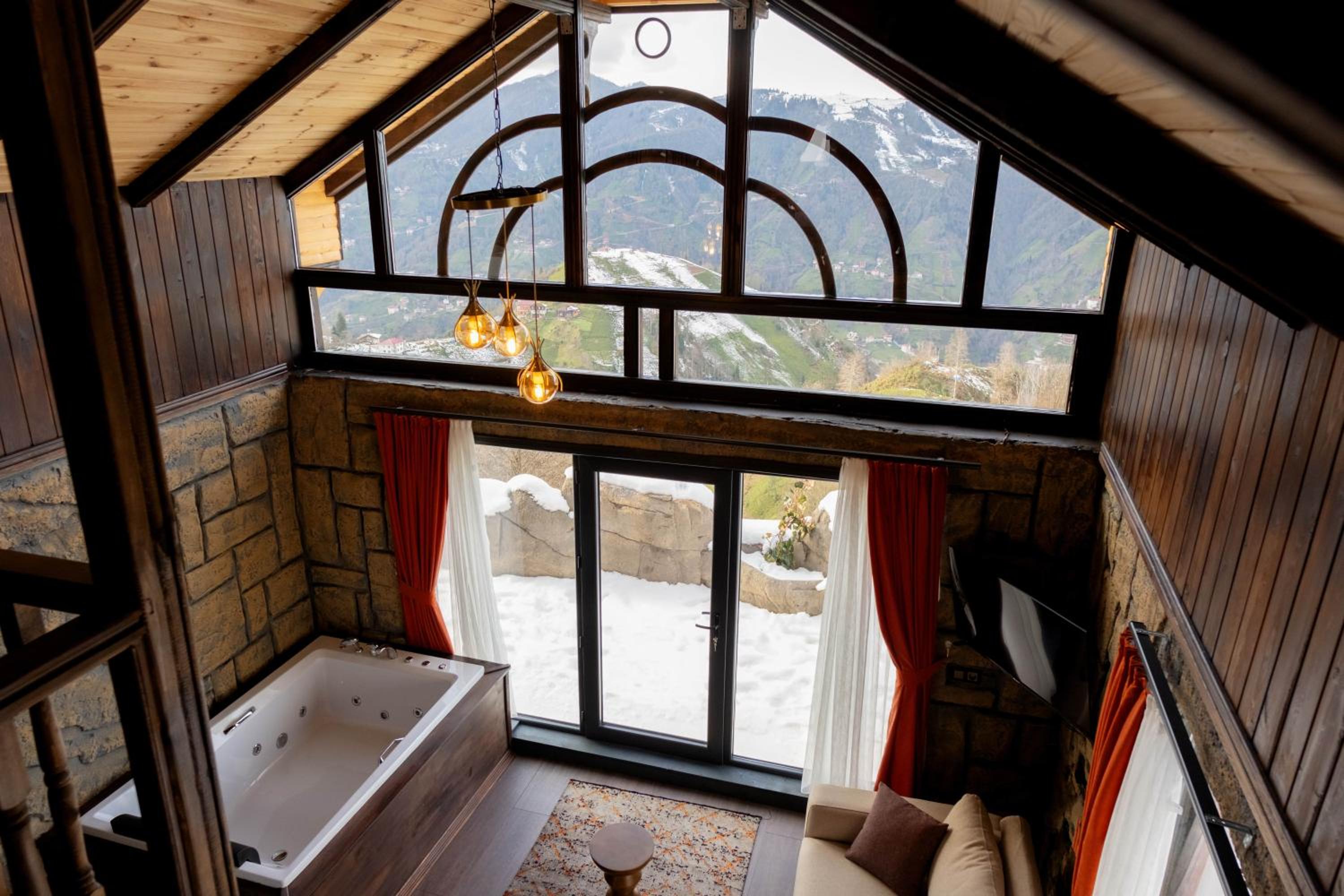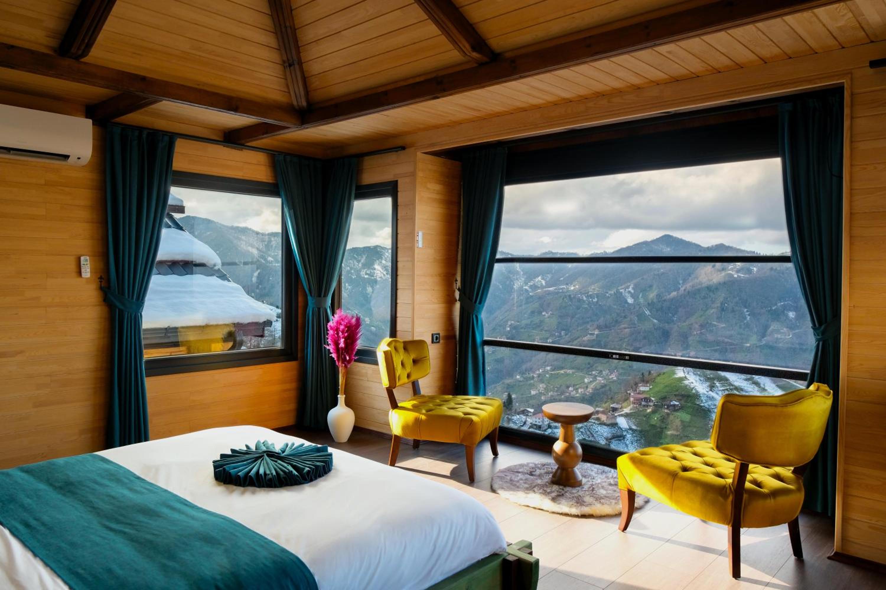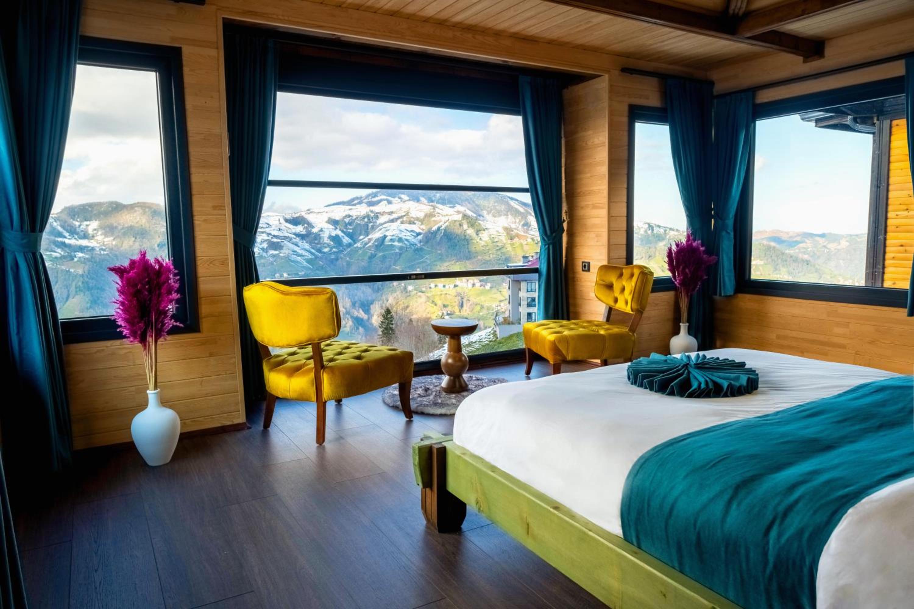 Escape to Amazena in Çamlıhemşin and wake up to breathtaking garden and mountain views right from your room's patio and balcony.