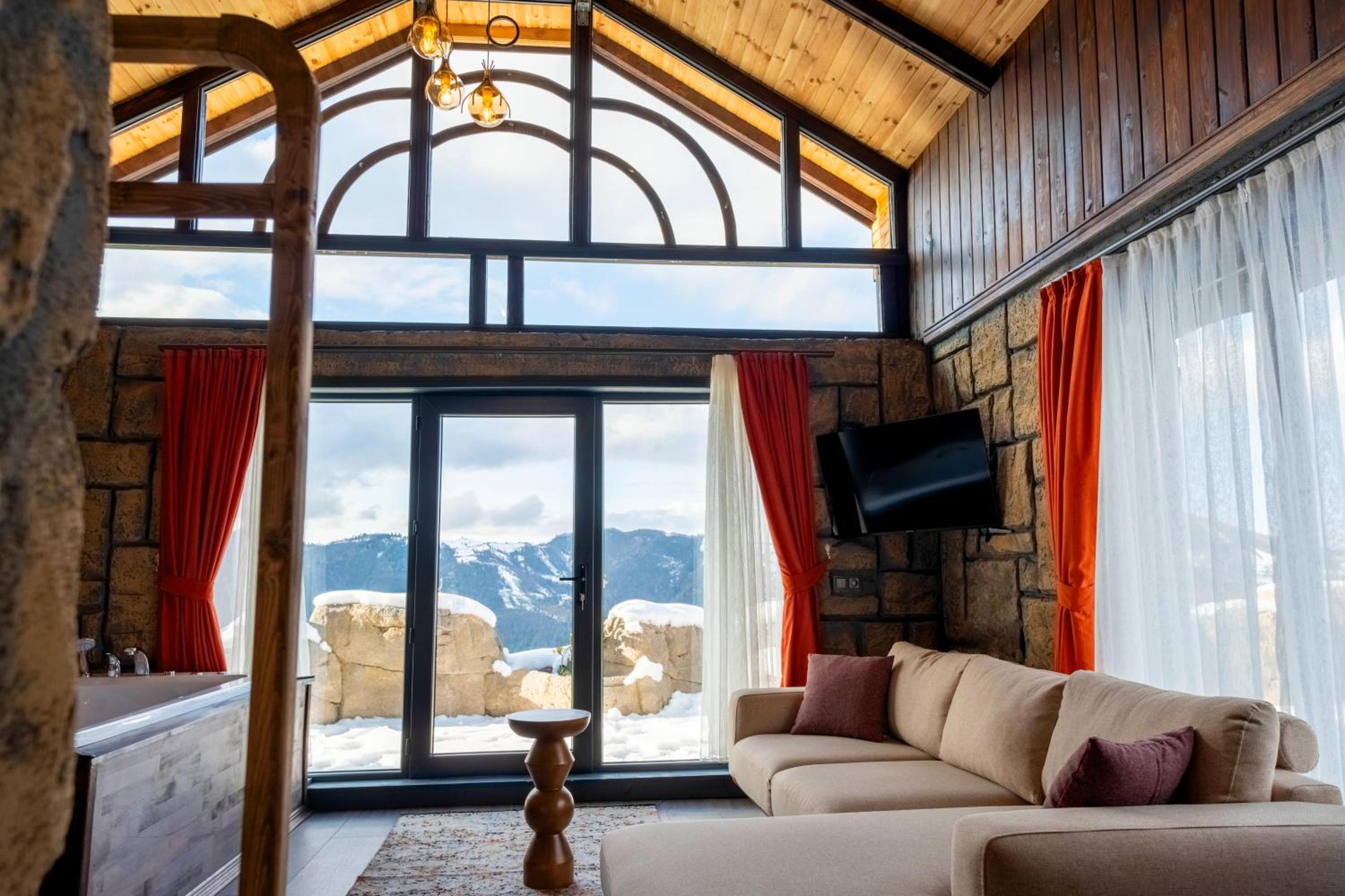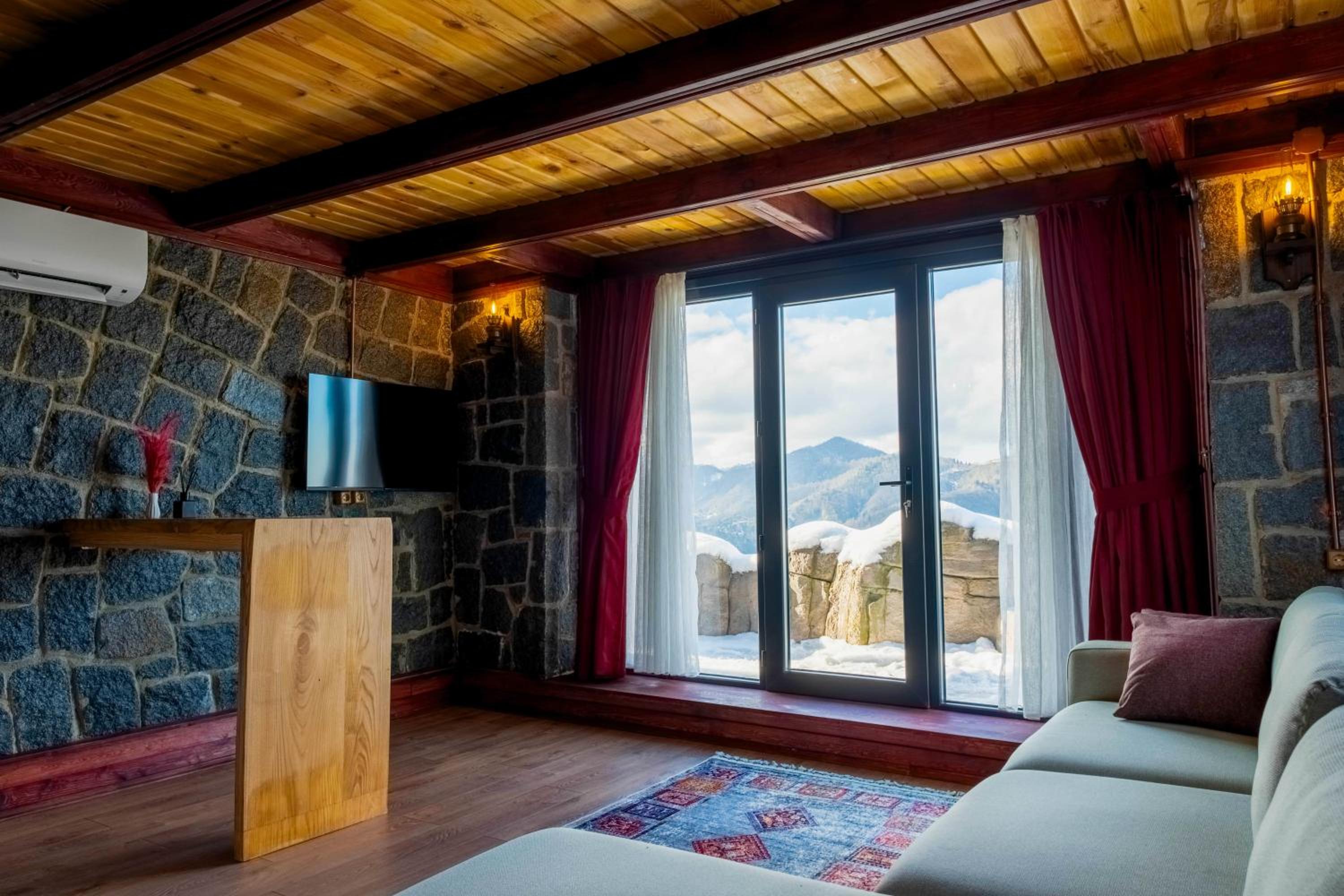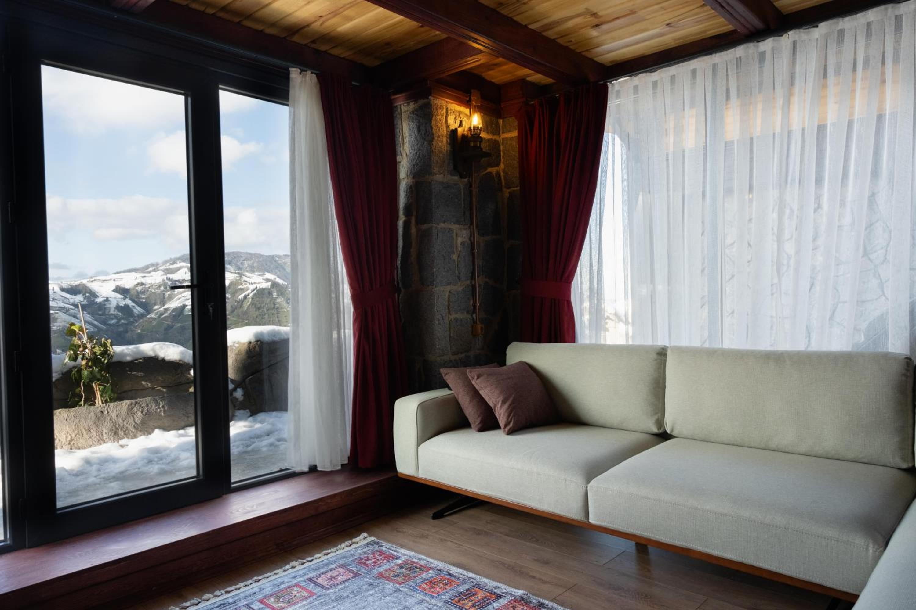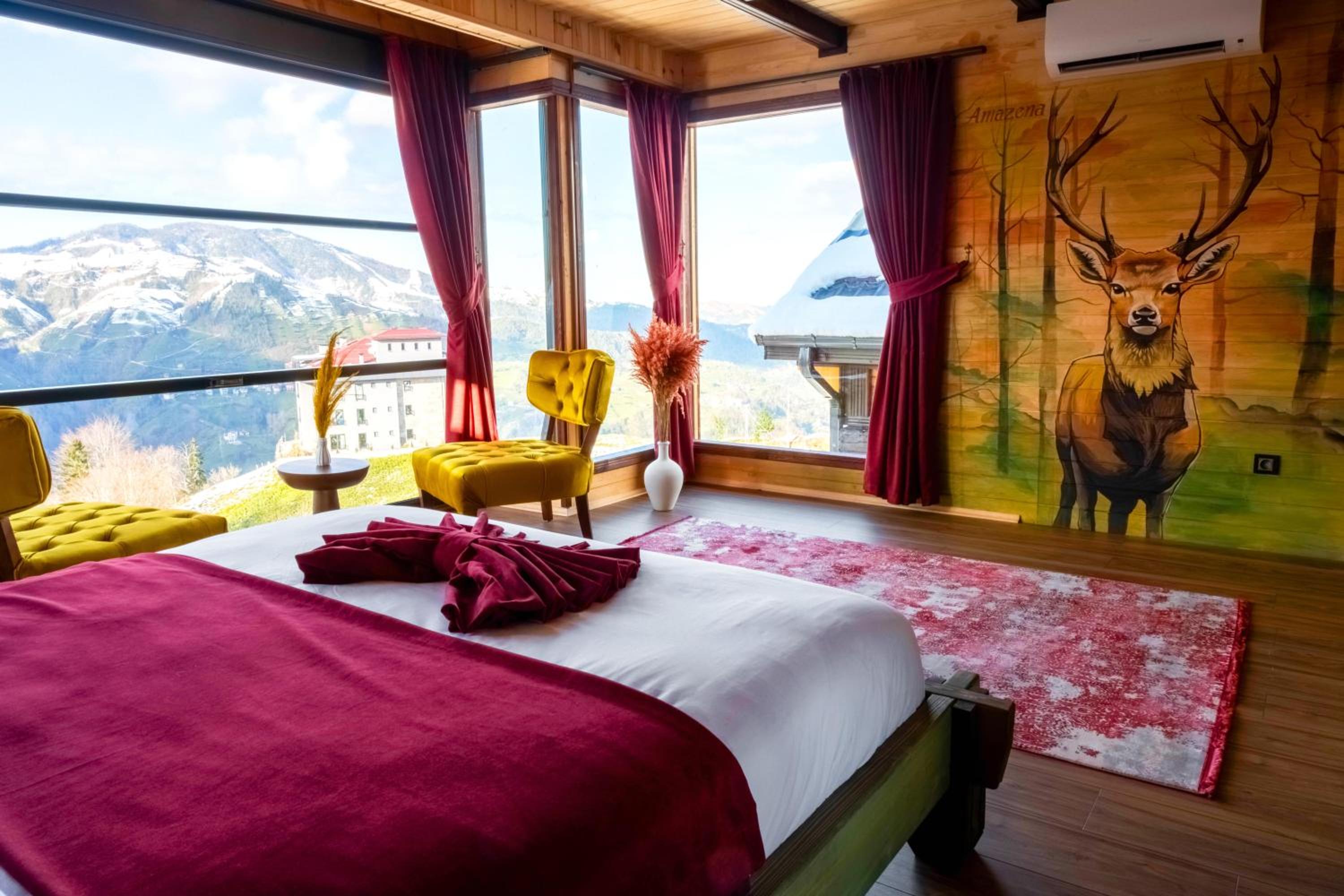 Escape to Amazena in Çamlıhemşin and wake up to breathtaking garden and mountain views right from your room's patio and balcony.