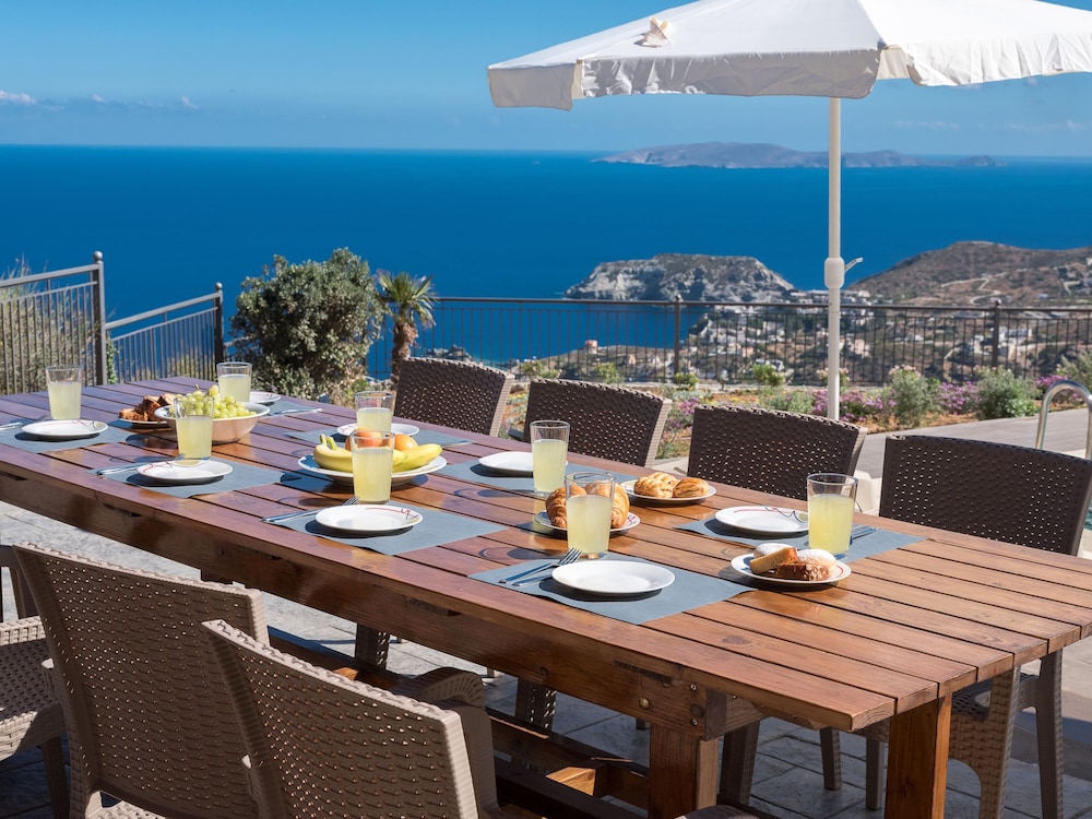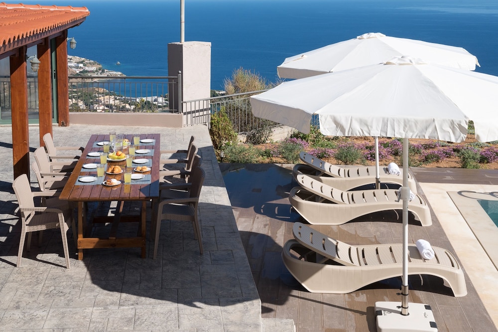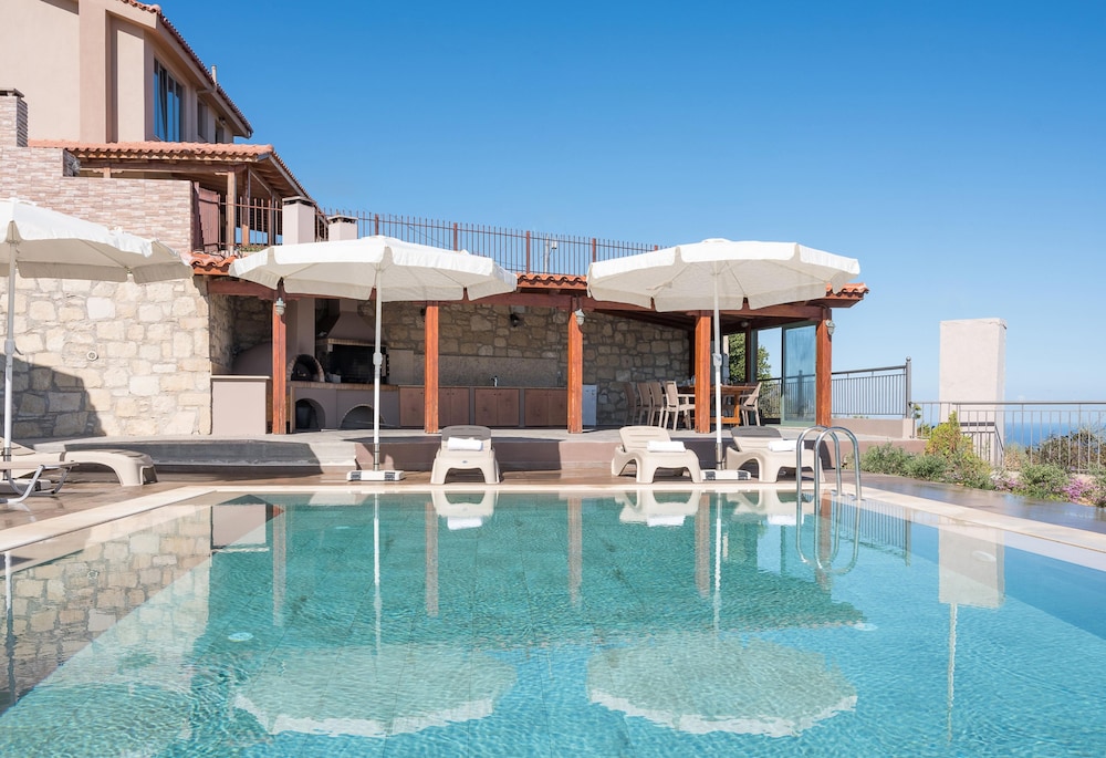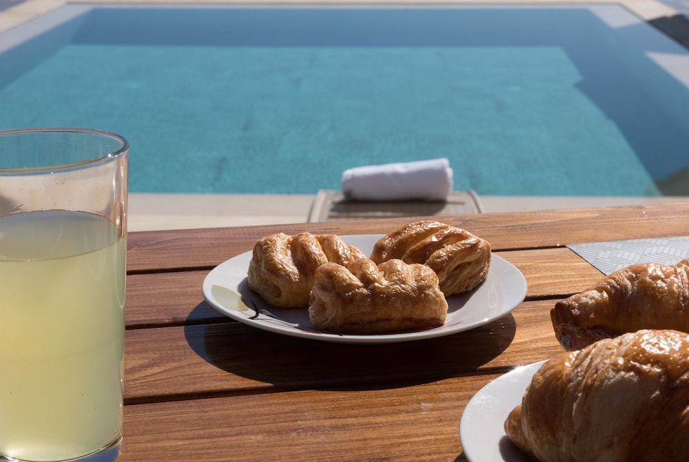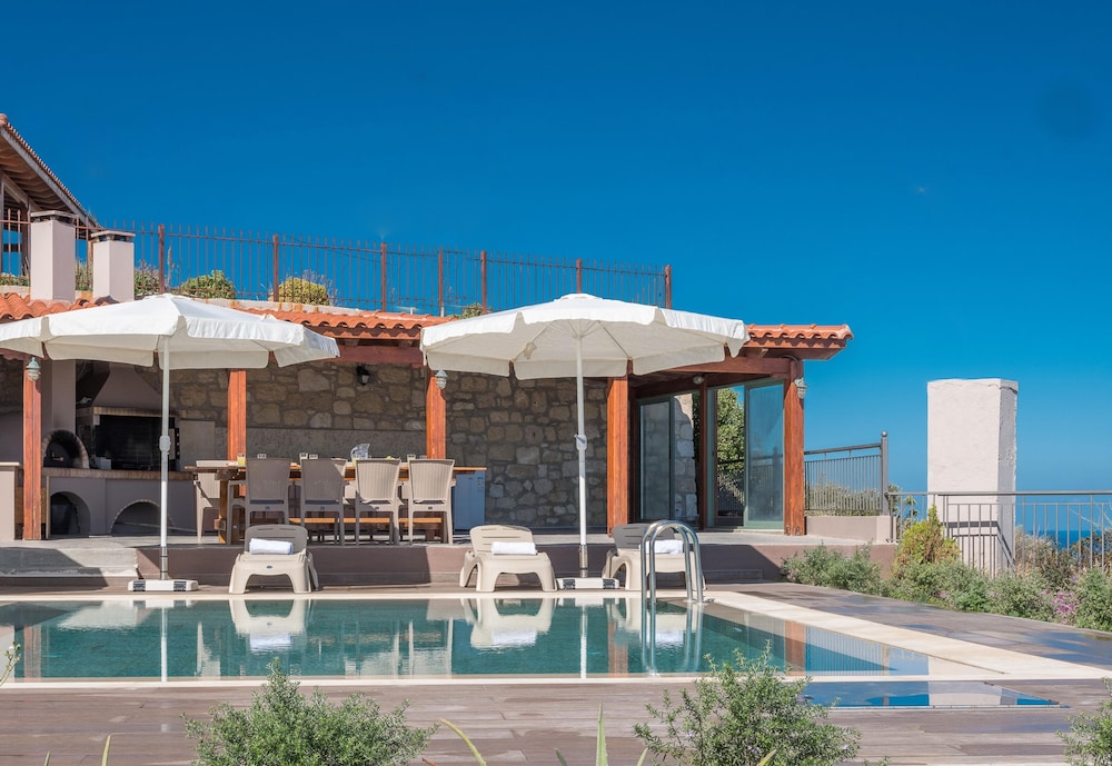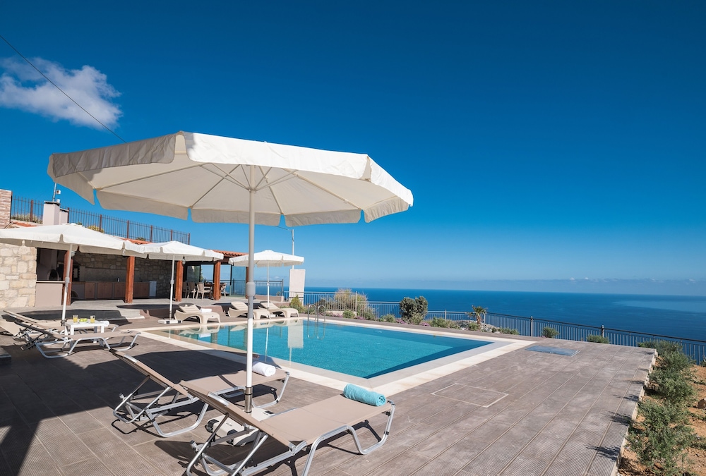 Enjoy the outdoor pool and terrace at Eolos, offering a relaxing view for you to unwind during your stay.