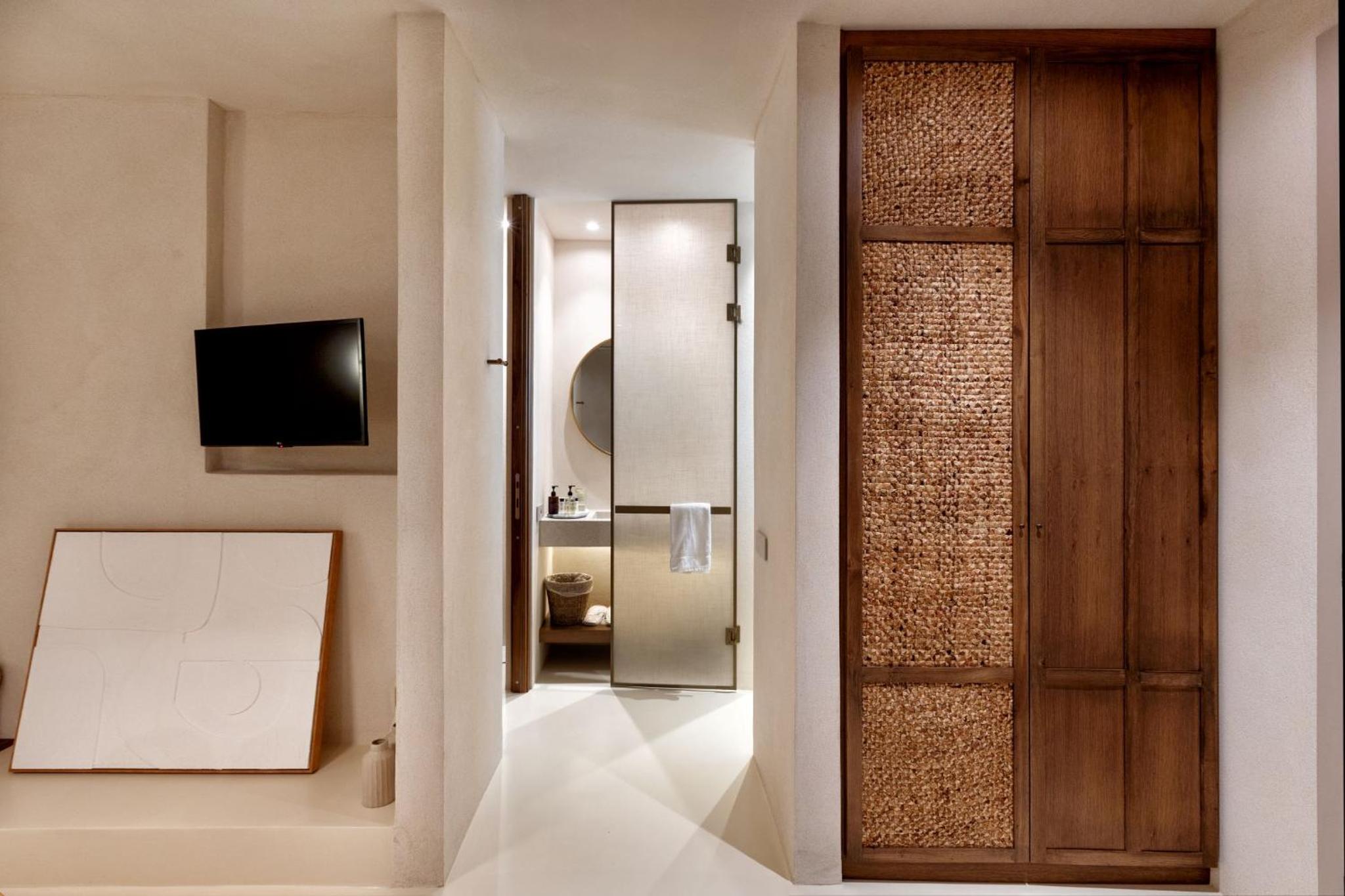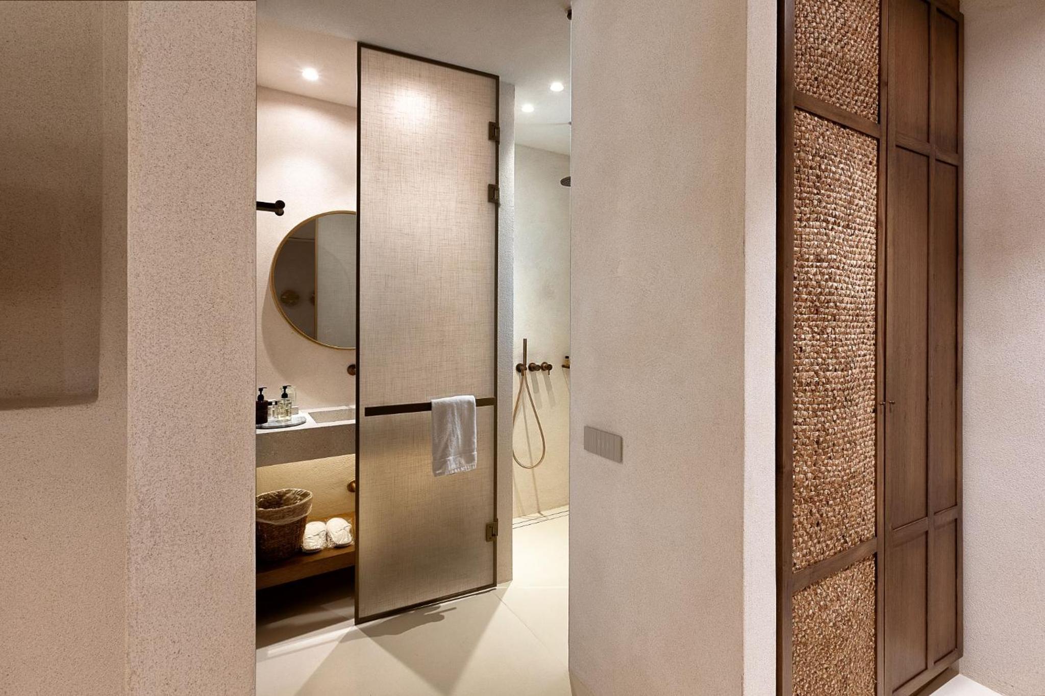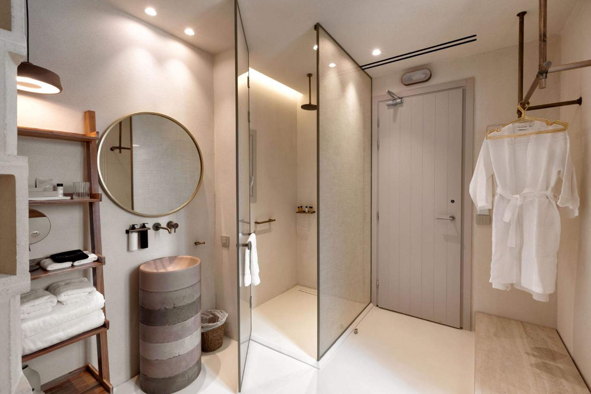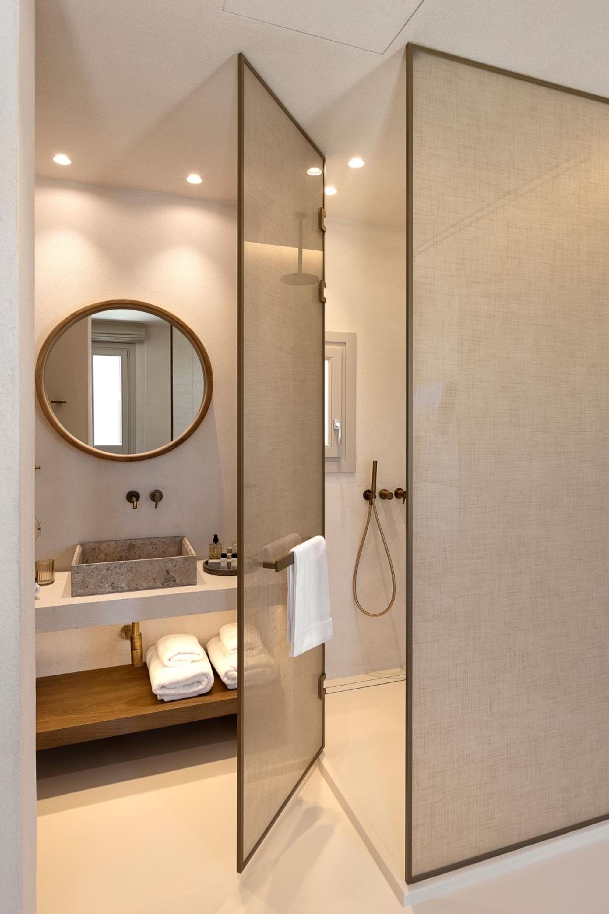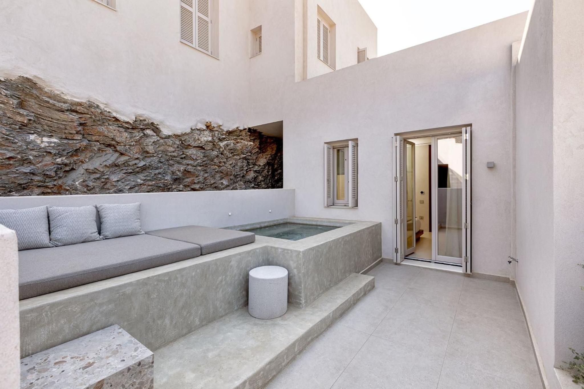 Sehr stylisch und hochwertig. Dachten zuerst wozu ein Whirlpool am Zimmer im Sommer in Gruechenland, war dann aber sehr angenehm und wurde von uns dreien viel genutzt.