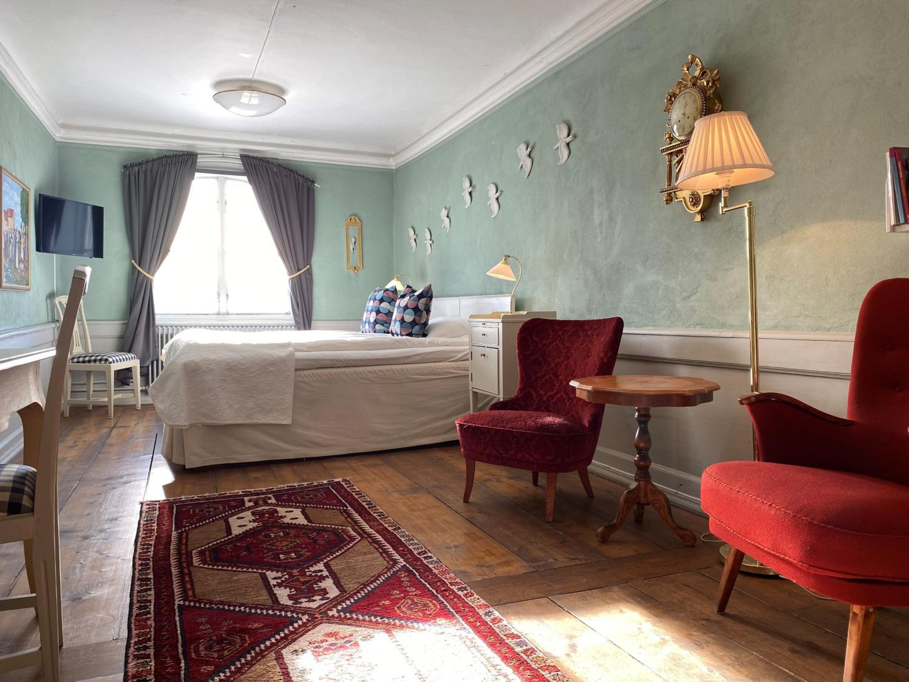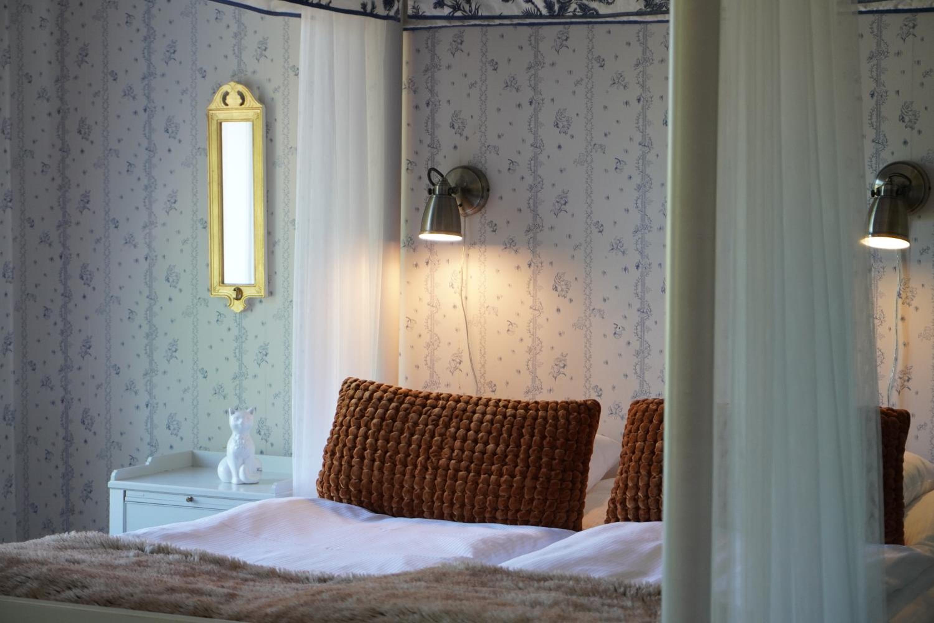Best former "palace" or manor house we have stayed in in Sweden, and we have stayed in 6-8 similar "type" of places. Service of staff very good. Facilities very clean and spacious. Our room had a canopy/four poster bed with clean and new curtains, very big in size with seating space, huge bathroom, had all necessary amenities and view of the water. Lots of common areas for guests - all clean and well-maintained. Restaurant had good food and service. Good breakfast. Lovely to walk around in the Sculpture park, green house where they grow grapes, tomatoes and cucumber. Near the church, too. can walk down or borrow their bikes for free to the water. Free parking for car. Very reasonable price room and breakfast. We are interested in history, so we were pleased to read the information they have in the brochures. There is nothing not to like. We are very happy to have experienced staying in Stjärnholmsslott and look forward to returning someday.