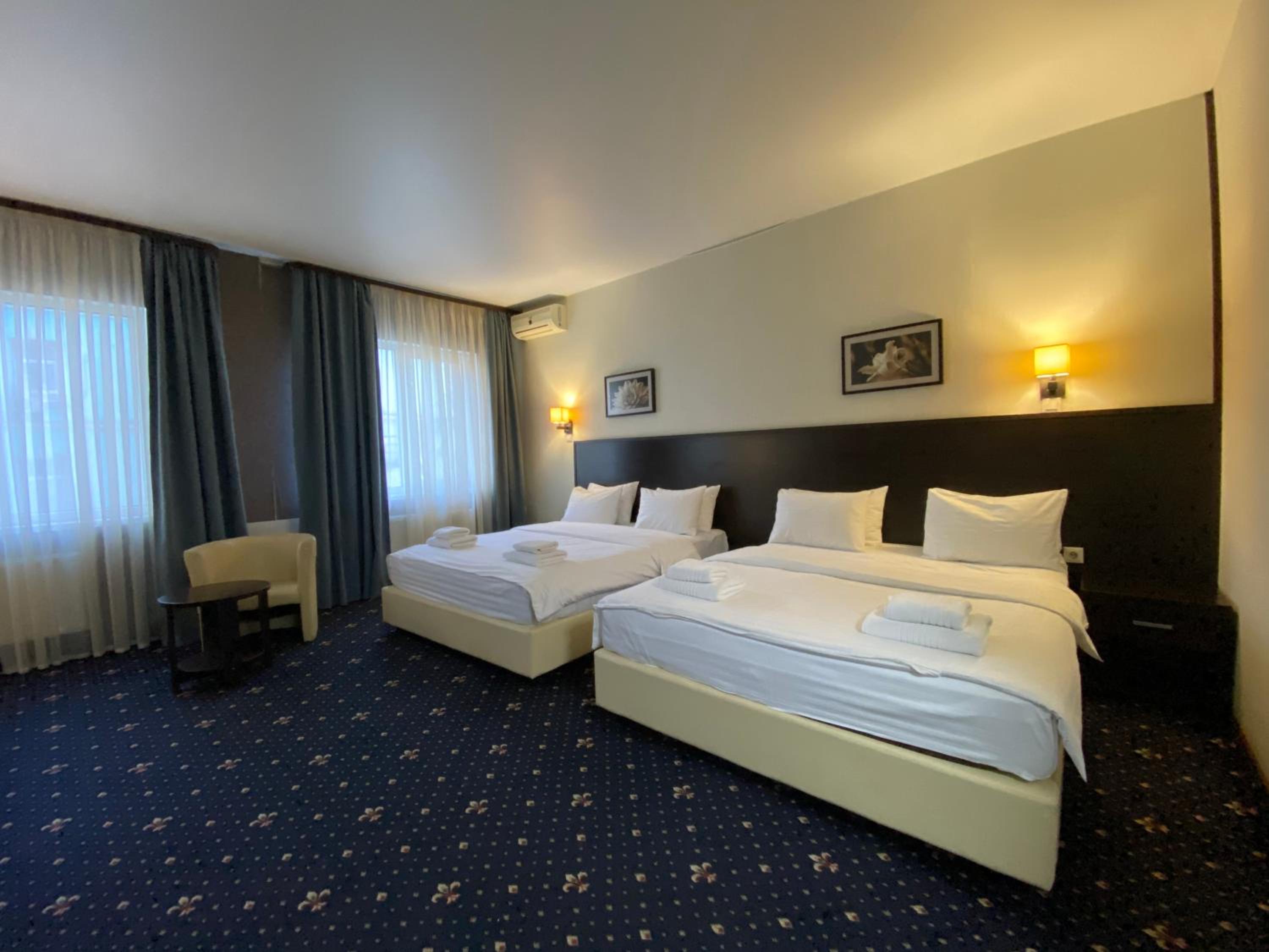 Indulge in a variety of dining choices within a 5-minute walk or take a stroll to the Botanical Garden just 7 minutes away. Don't miss visiting the Kiev Golden Gates, located 2 metro stops from the hotel. With Boryspil Airport a mere 35 minutes’ drive, Iris Hotel is your perfect stay in Kiev.