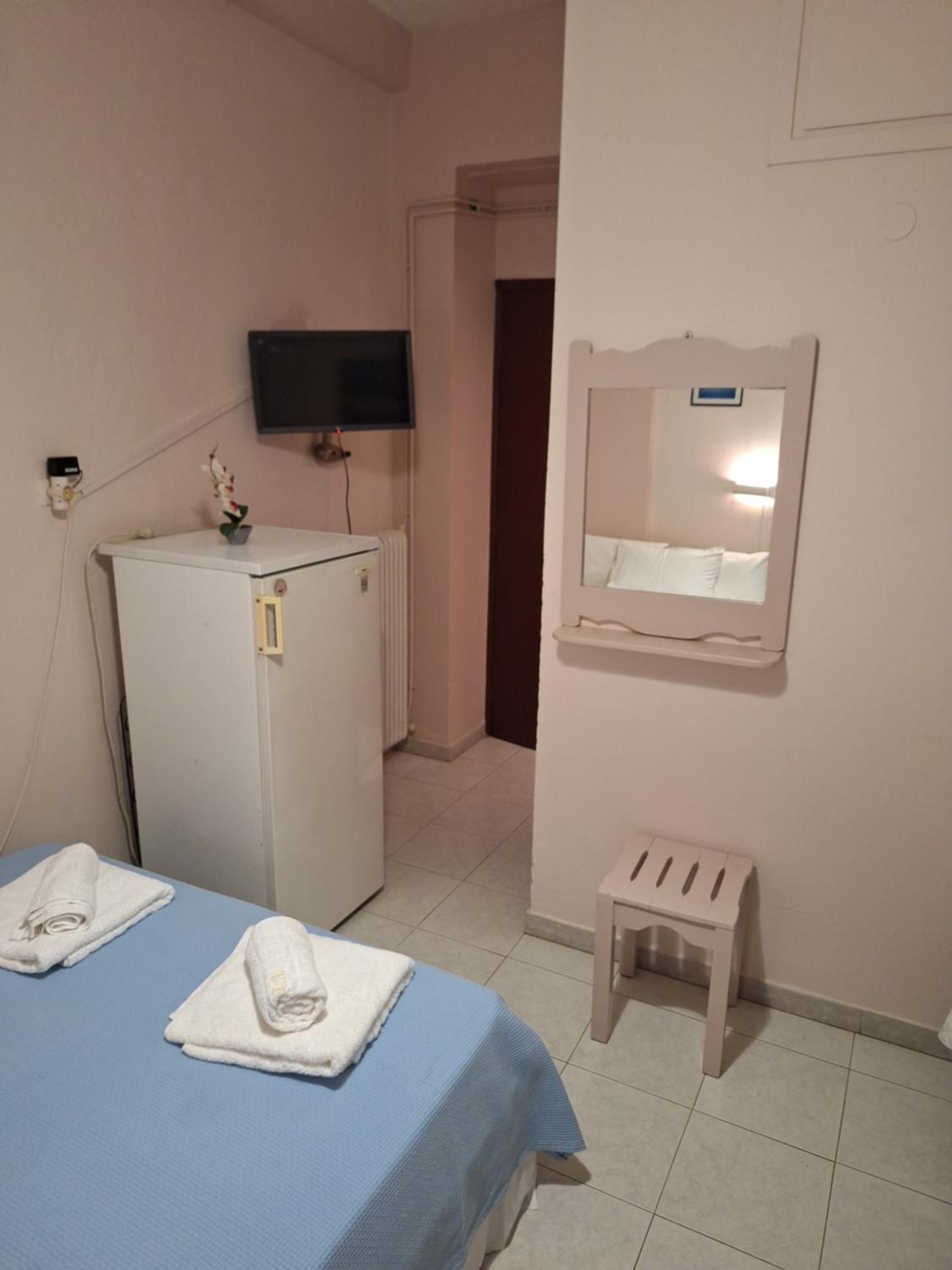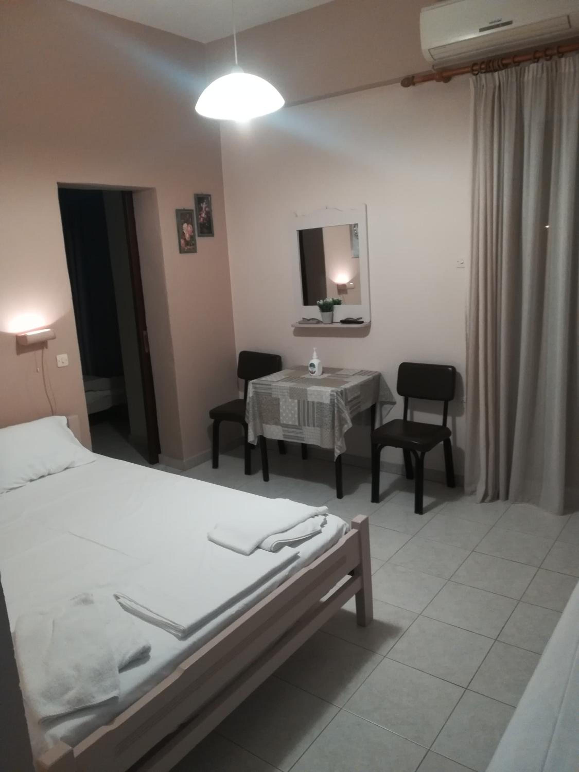 Πολυ ευγενικος και εξυπηρετικος ο ιδιοκτητς.Καθαρο δωματιο ανακαινισμενο. εχει και σιτα στο παραθυρο Το στρωμα και τα μαξιλαρια πολυ ανετα.Διαθετει βραστηρα και πιστολακι.Η παραλια Κυανη Ακτη 10 με 15 λεπτα περπατημα