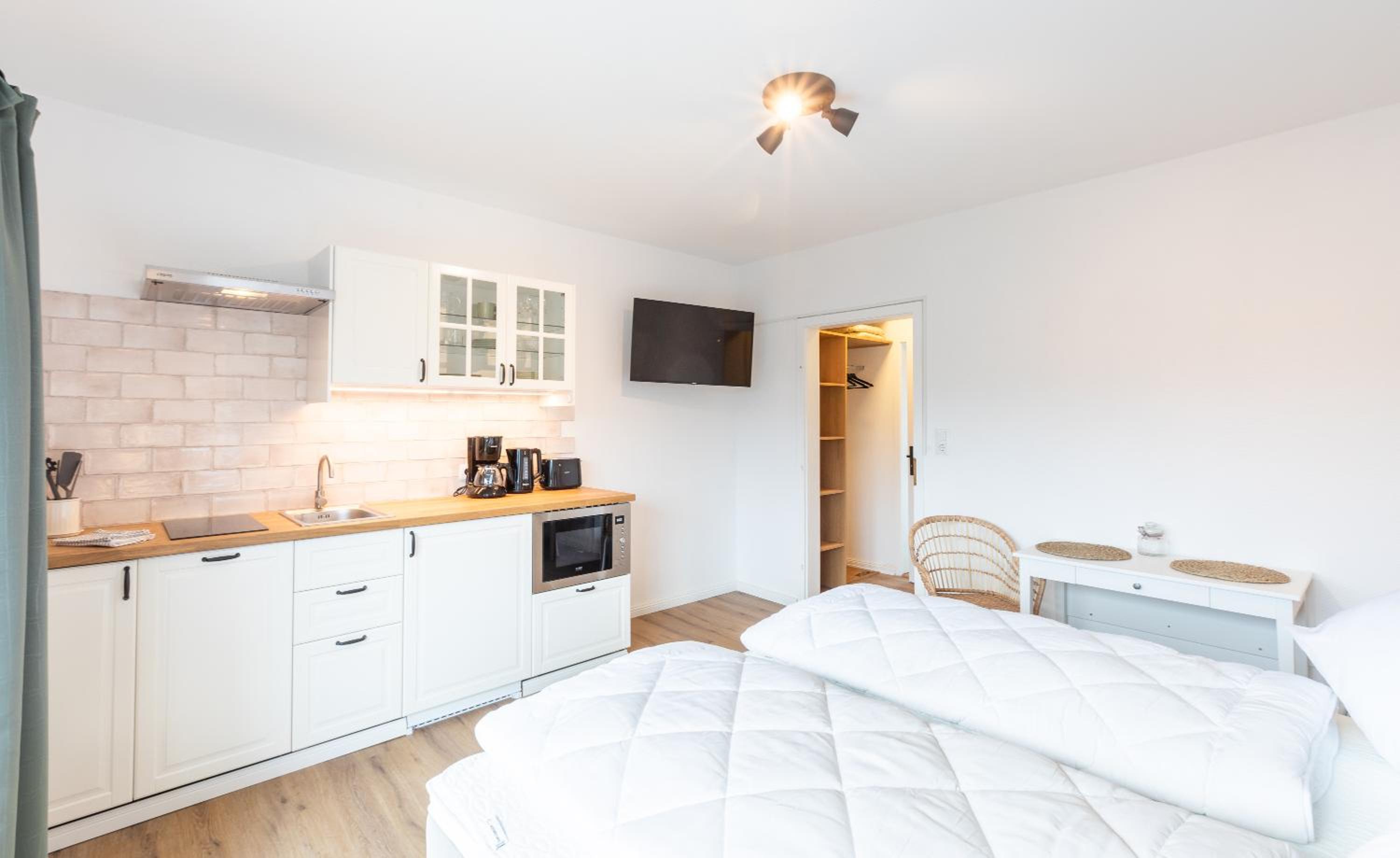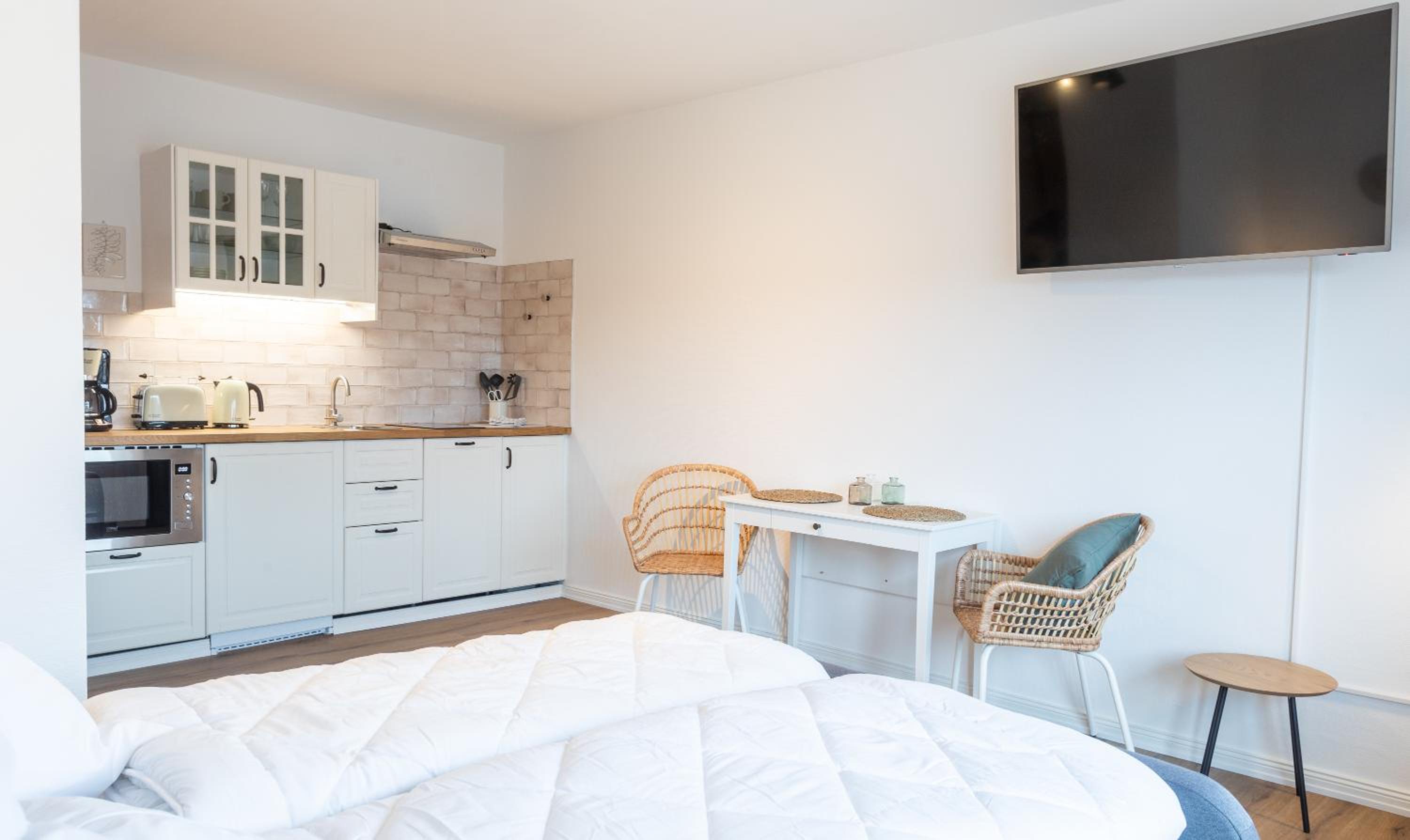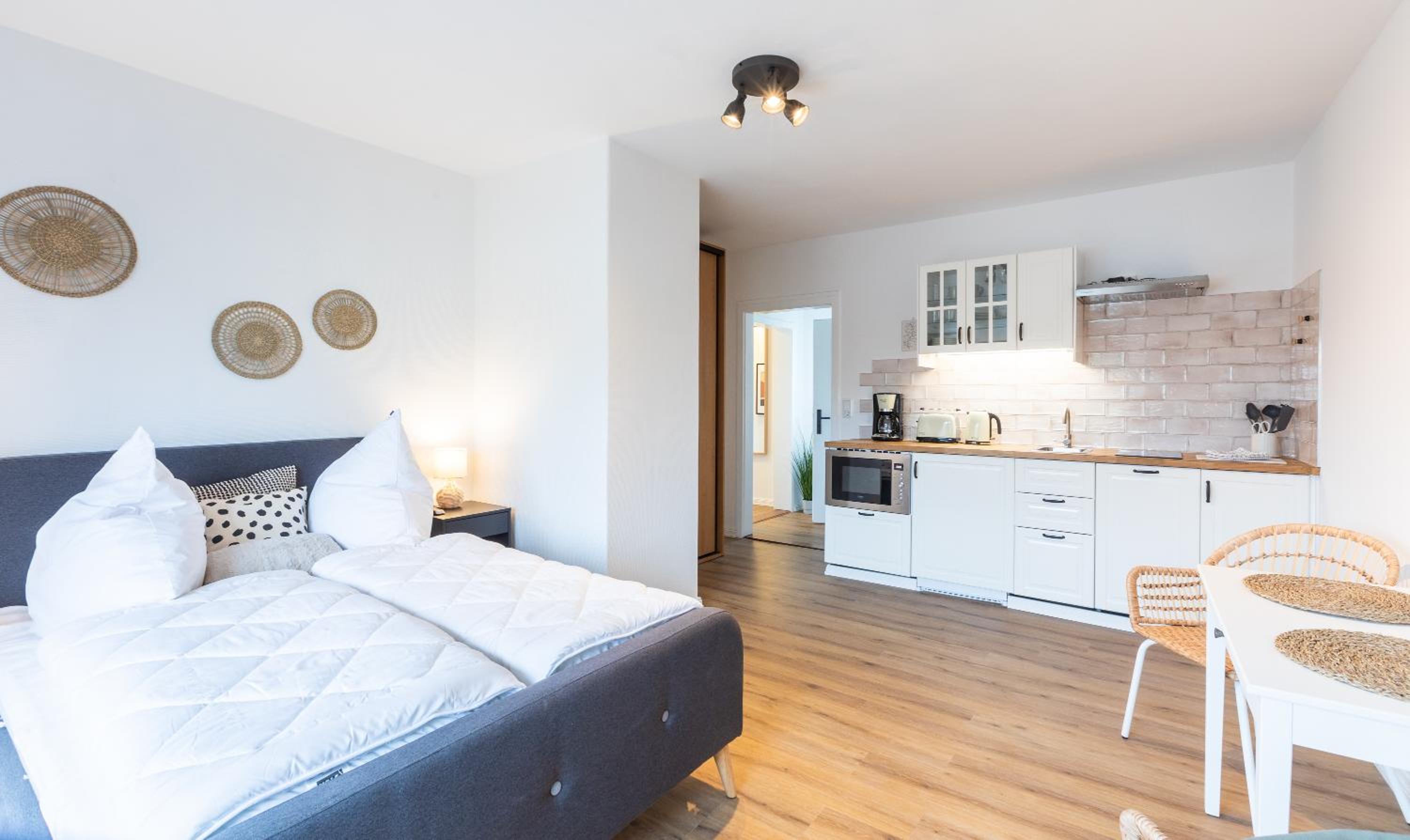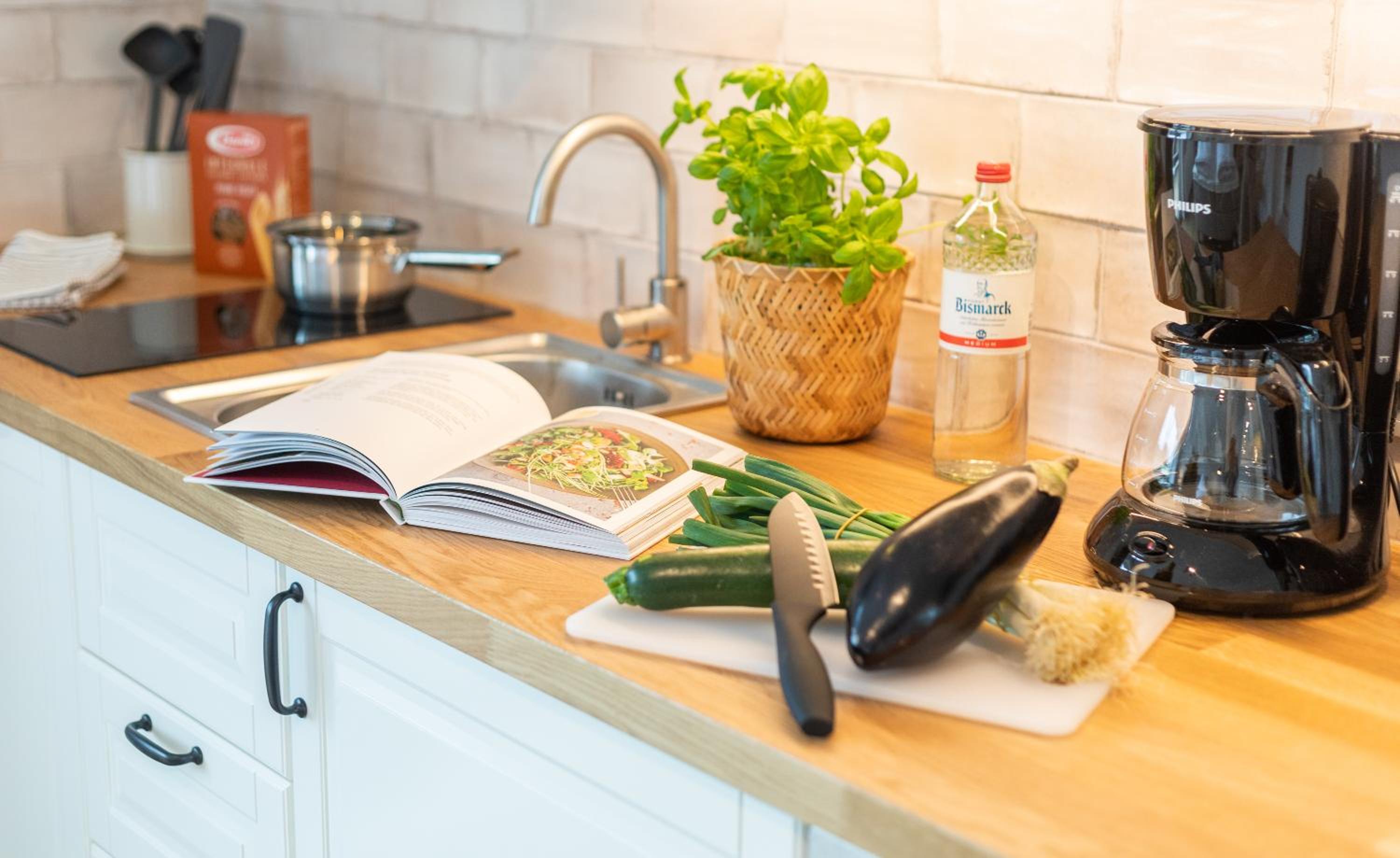 Es ist wirklich alles vorhanden. Die Küchenzeile ist super ausgestattet, es ist sehr freundlich und modern eingerichtet, das Bett ist gemütlich. Toll ist auch, dass es Parkplätze gibt. Der Kontakt per Nachrichten war super freundlich und vor Ort funktioniert alles reibungslos kontaktlos und automatisiert.