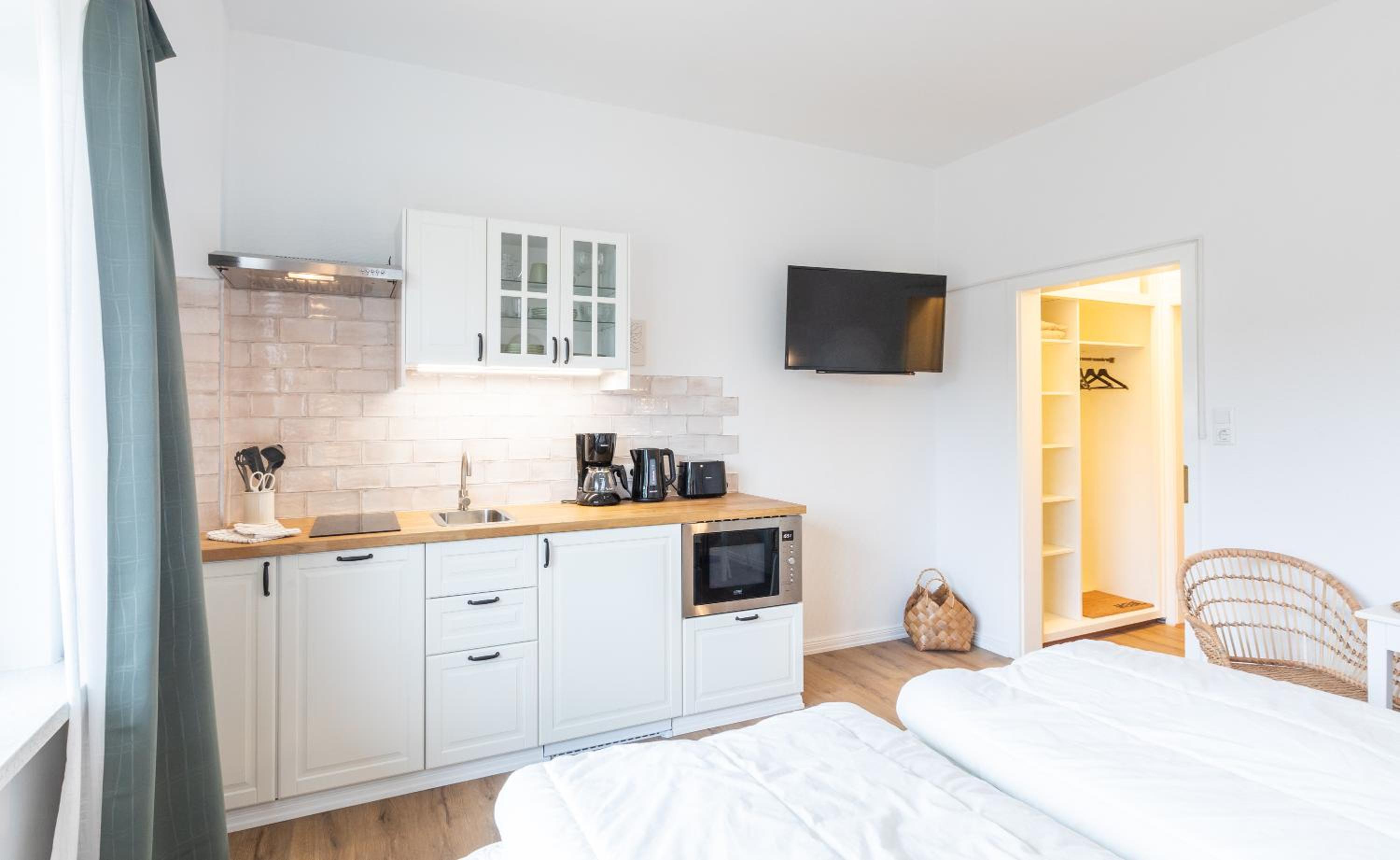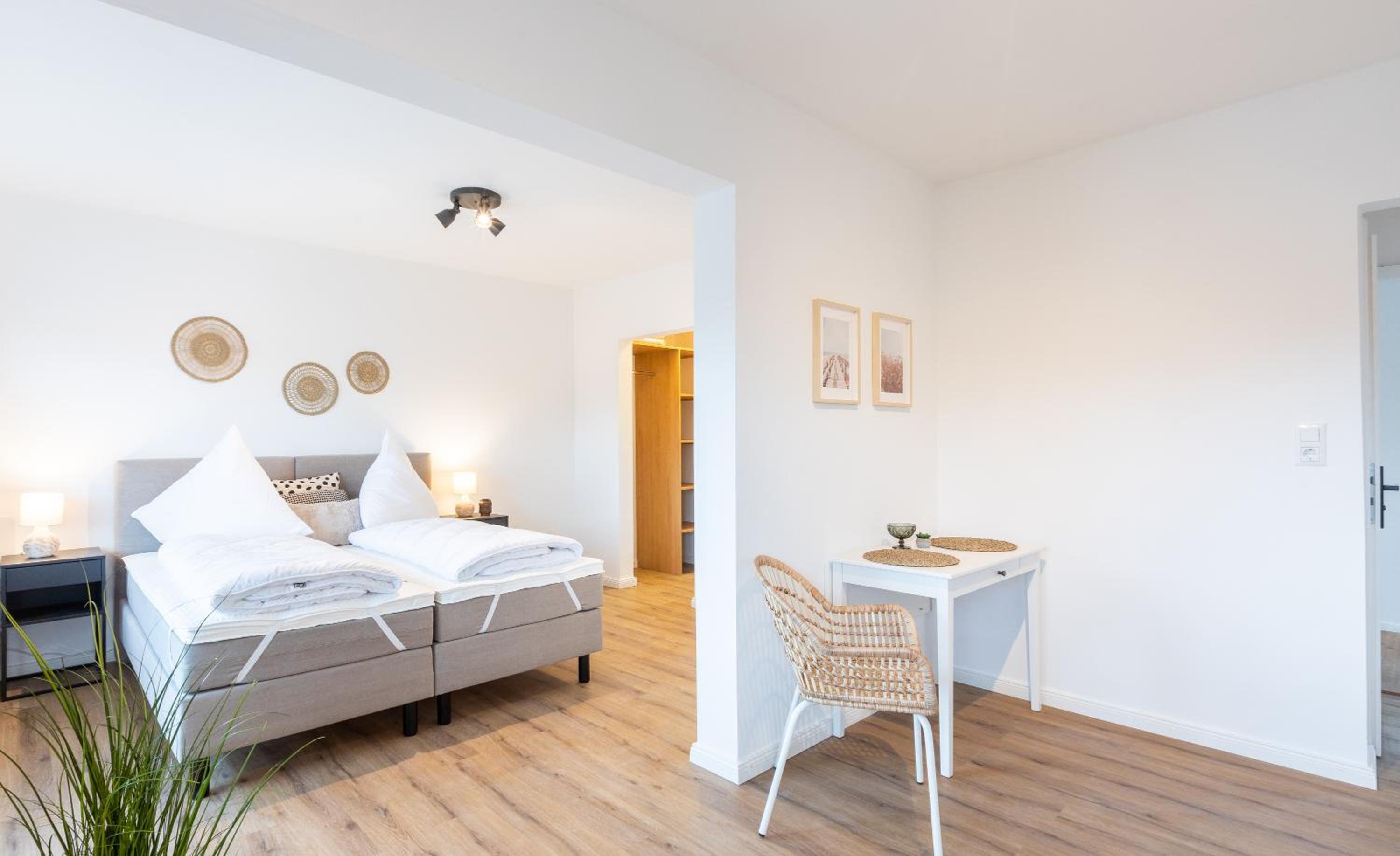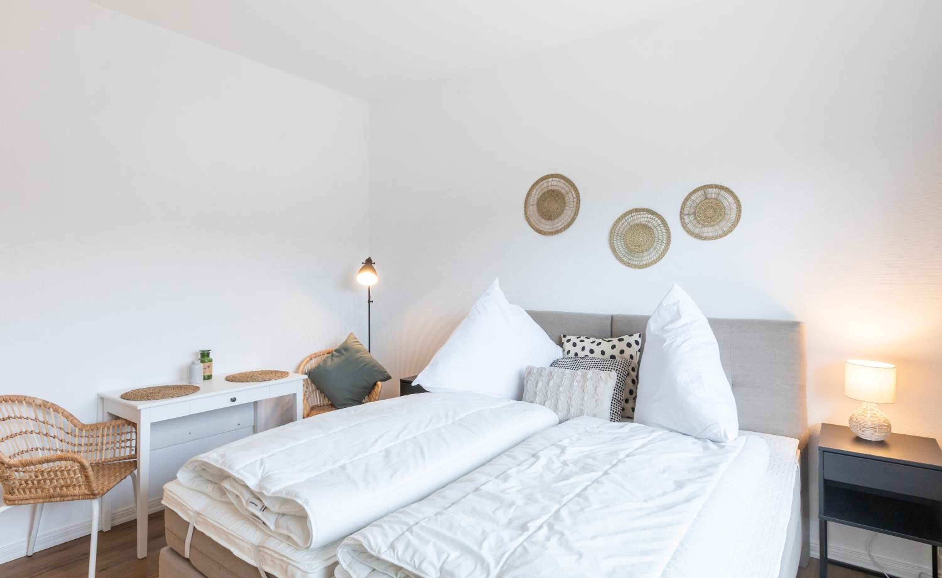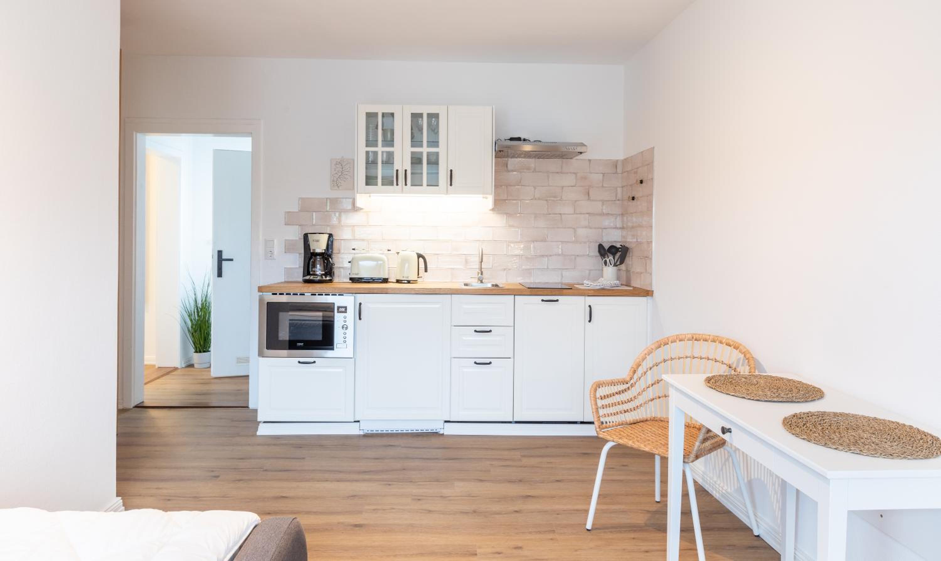 Es ist wirklich alles vorhanden. Die Küchenzeile ist super ausgestattet, es ist sehr freundlich und modern eingerichtet, das Bett ist gemütlich. Toll ist auch, dass es Parkplätze gibt. Der Kontakt per Nachrichten war super freundlich und vor Ort funktioniert alles reibungslos kontaktlos und automatisiert.