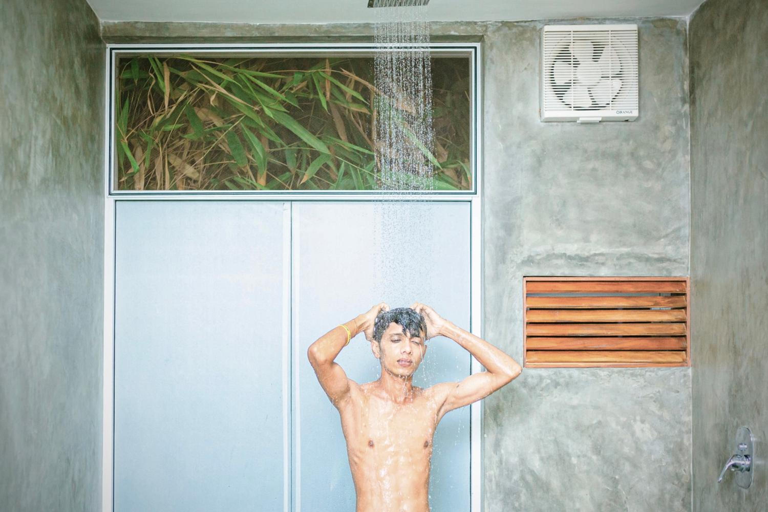 Zimna woda pod prysznicem.