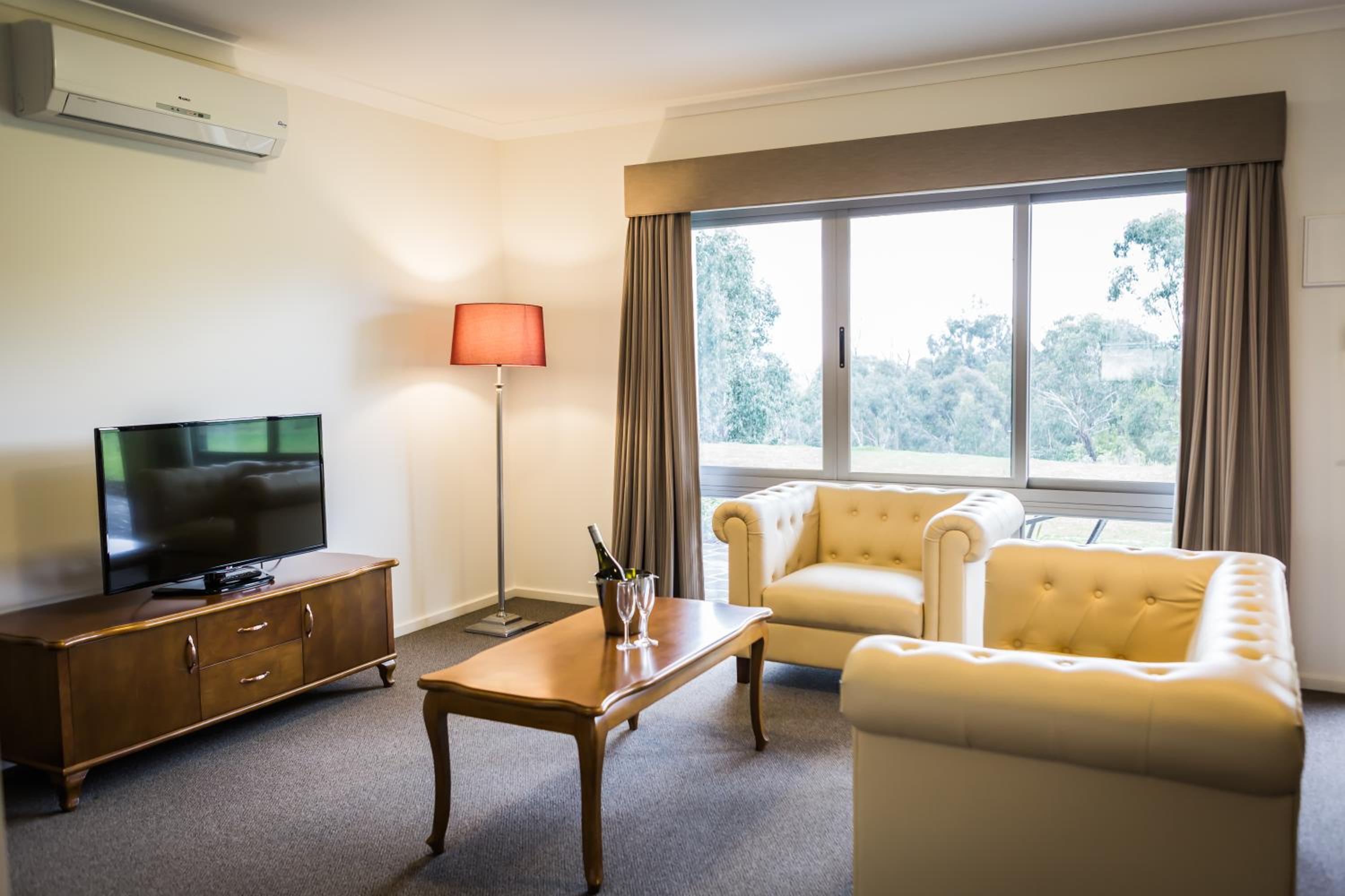 Indulge in stunning garden views from every room, complete with a flat-screen TV and cable channels for your entertainment.