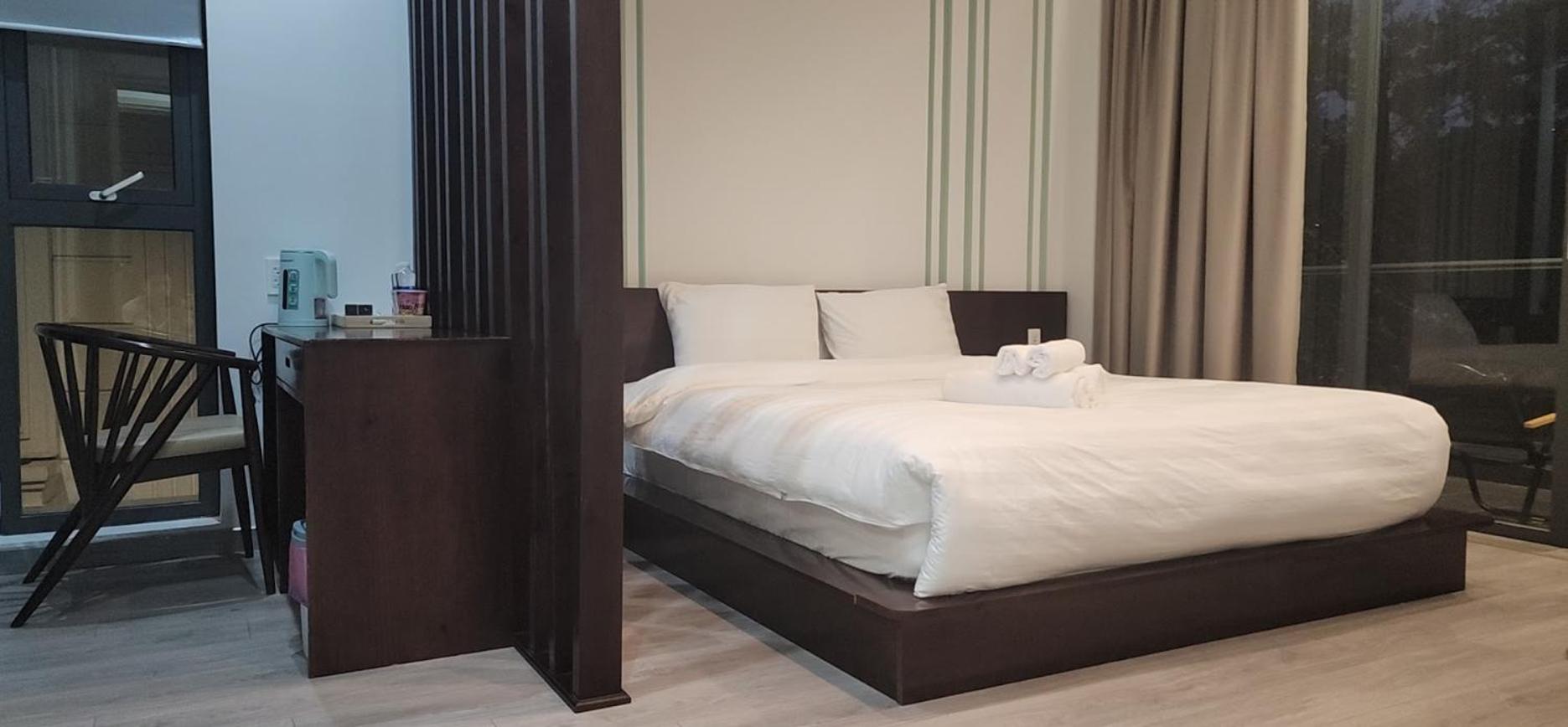 New hotel, quiet area, clean and cozy on rainy days. Good view chilling at night time. Next to the boutique coffee shop.
