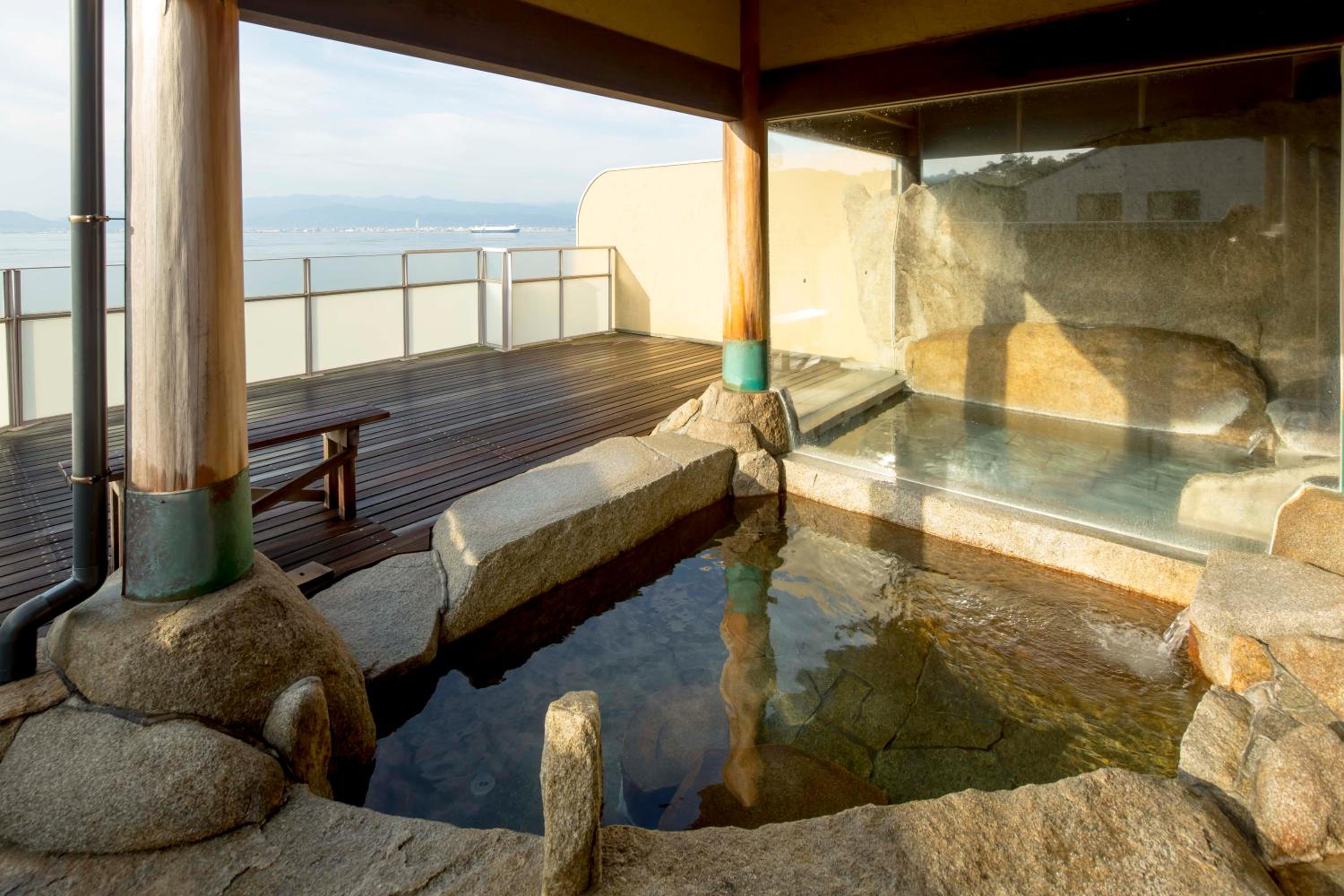 The beach location is wonderful and suitable for pleasant walks. The onsen baths are lovely, overlooking the ocean so you can soak in the various tubs and enjoy the views.