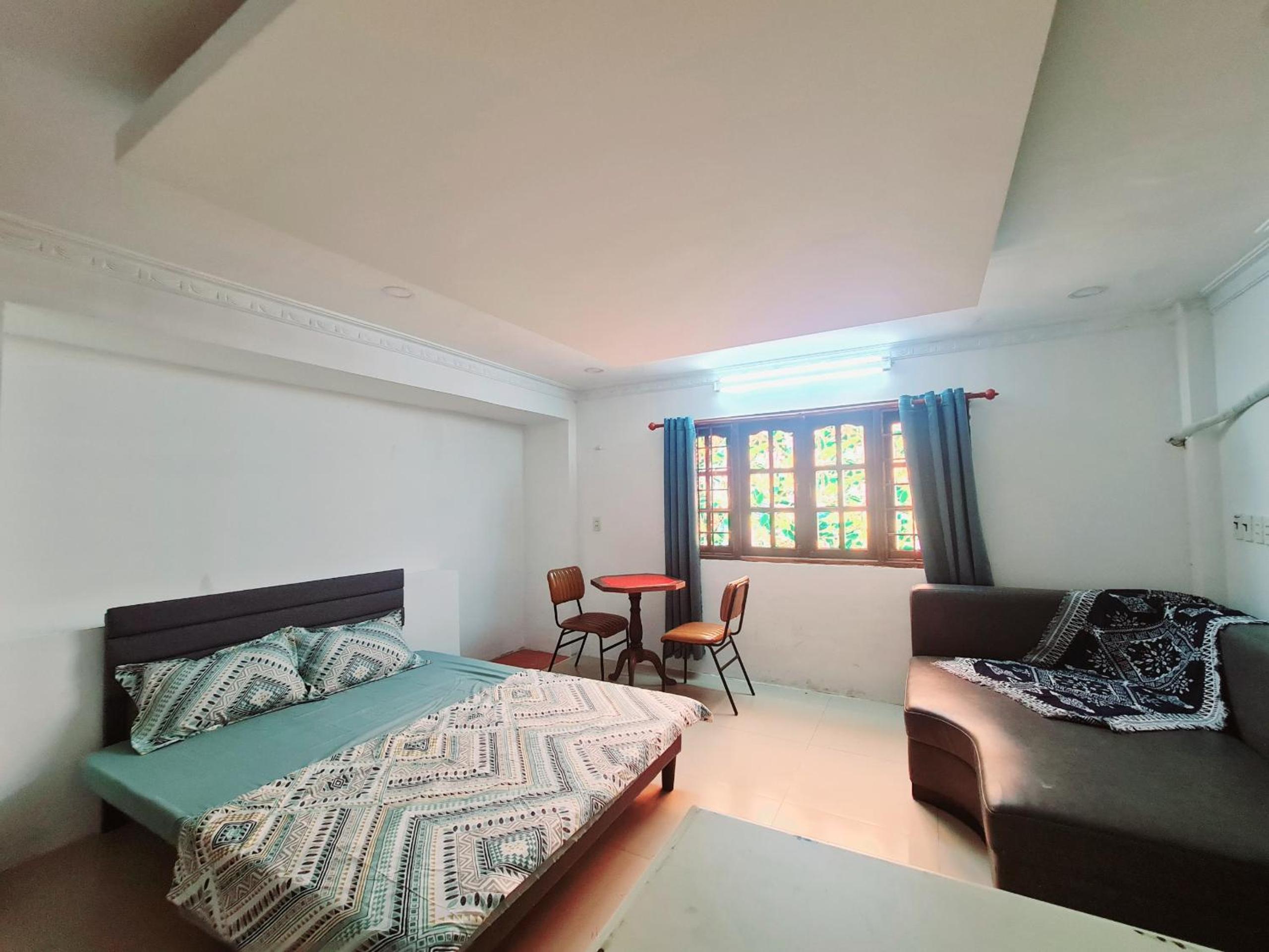 The room is above a restaurant. It was advertised as a family room but it was really a suite. It consisted of a bedroom (with double bed and single sofa bed), a sitting room and a shower room. All the staff were really friendly and helpful. The owner speaks English fluently. Its about 15 minutes (and 21,000 Dong by Grab motorbike) from the centre of the city. The owner gave me a big discount on the food. There is also plenty of street food nearby if you prefer. There are two convenience stores and a laundry within 3 minutes walk. You will really struggle to get better accommodation near the city centre for the price.