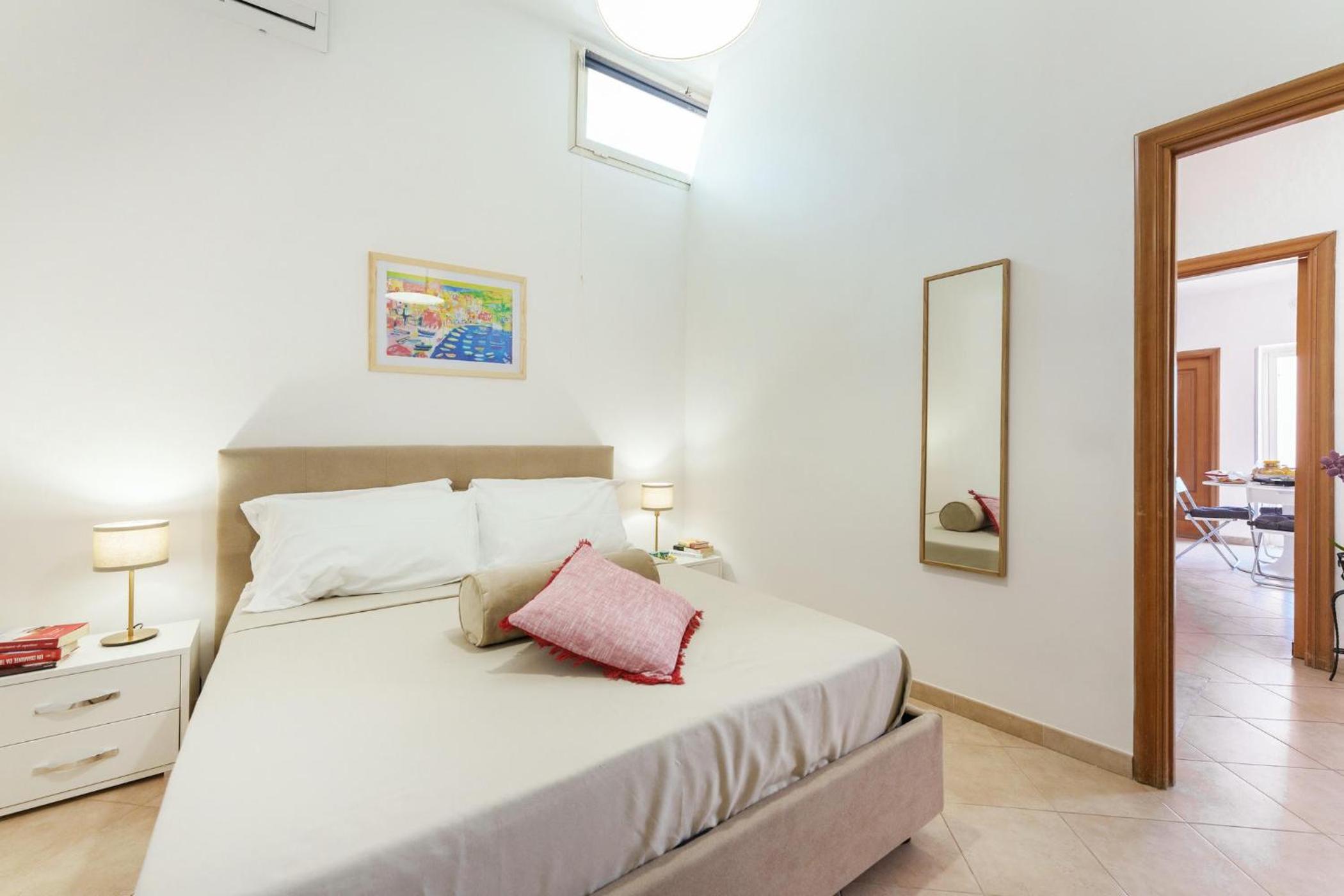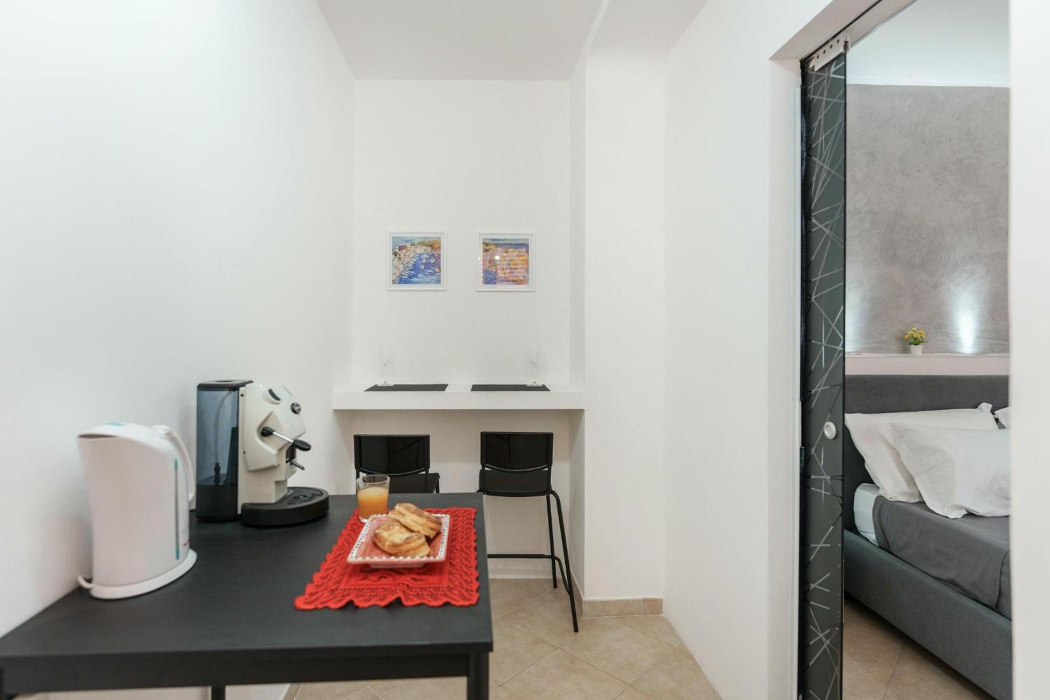 L'appartamento era molto pulito, l'aria condizionata funziona bene e abbiamo gradito le cialde per il caffè, l'acqua in frigorifero e shampoo e saponi monouso.