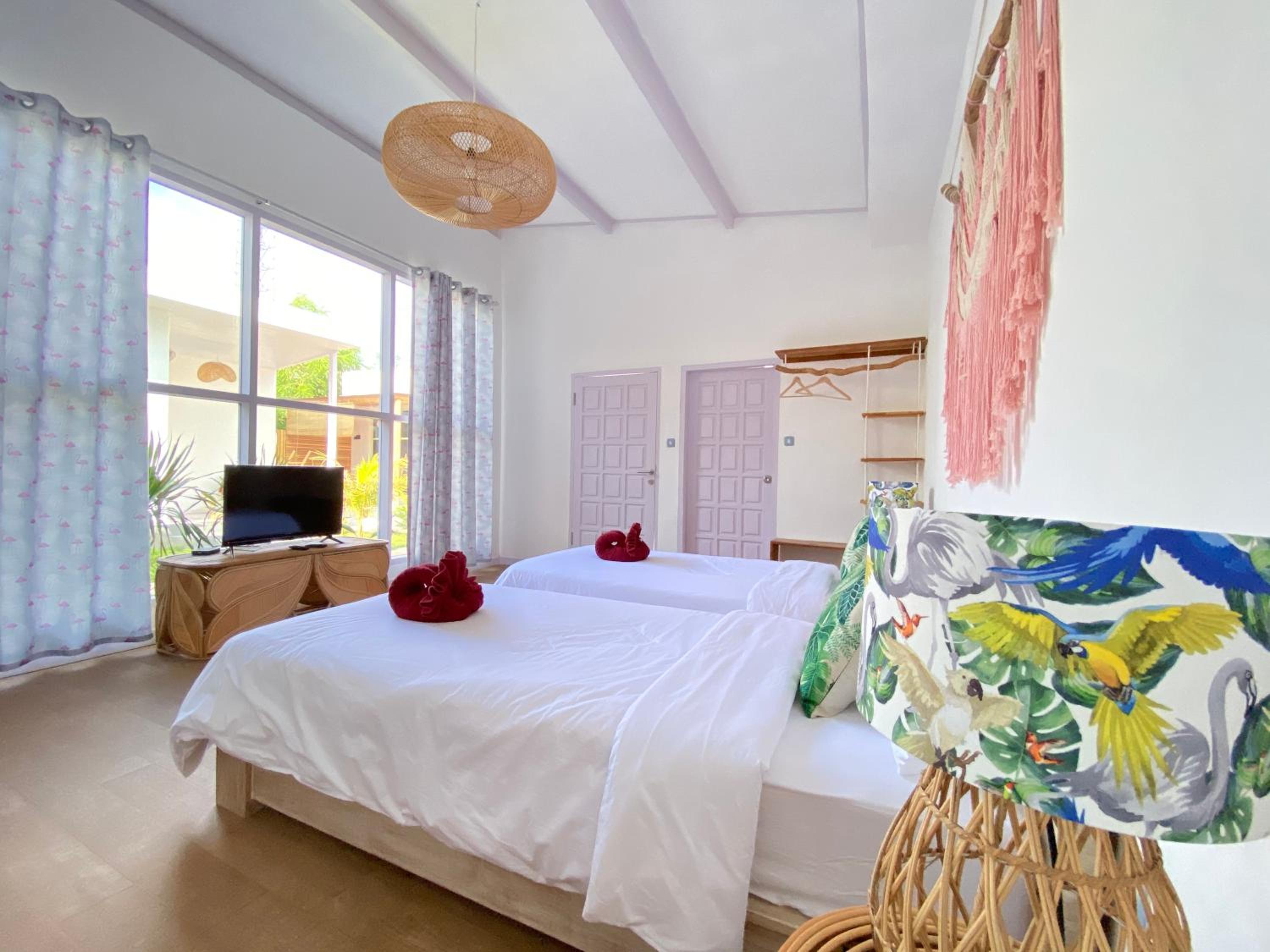 Schattig kleinschalig hotel. Je hebt je ‘eigen’ huisje aan het zwembad met een kleine veranda. De kamer was netjes en schoon en zag er leuk uit. Wij hadden de Flamingo kamer. Prima plek om er met de fiets het eiland te verkennen. Bij het hotel verhuren ze ook fietsen. Het ontbijt was prima.