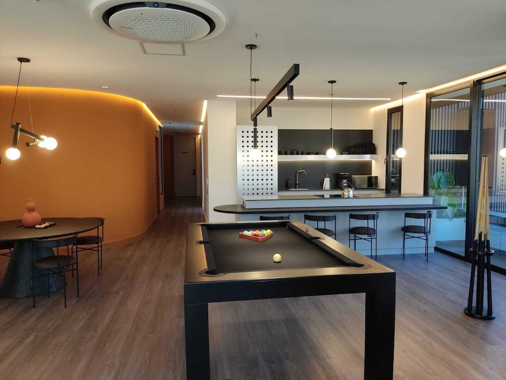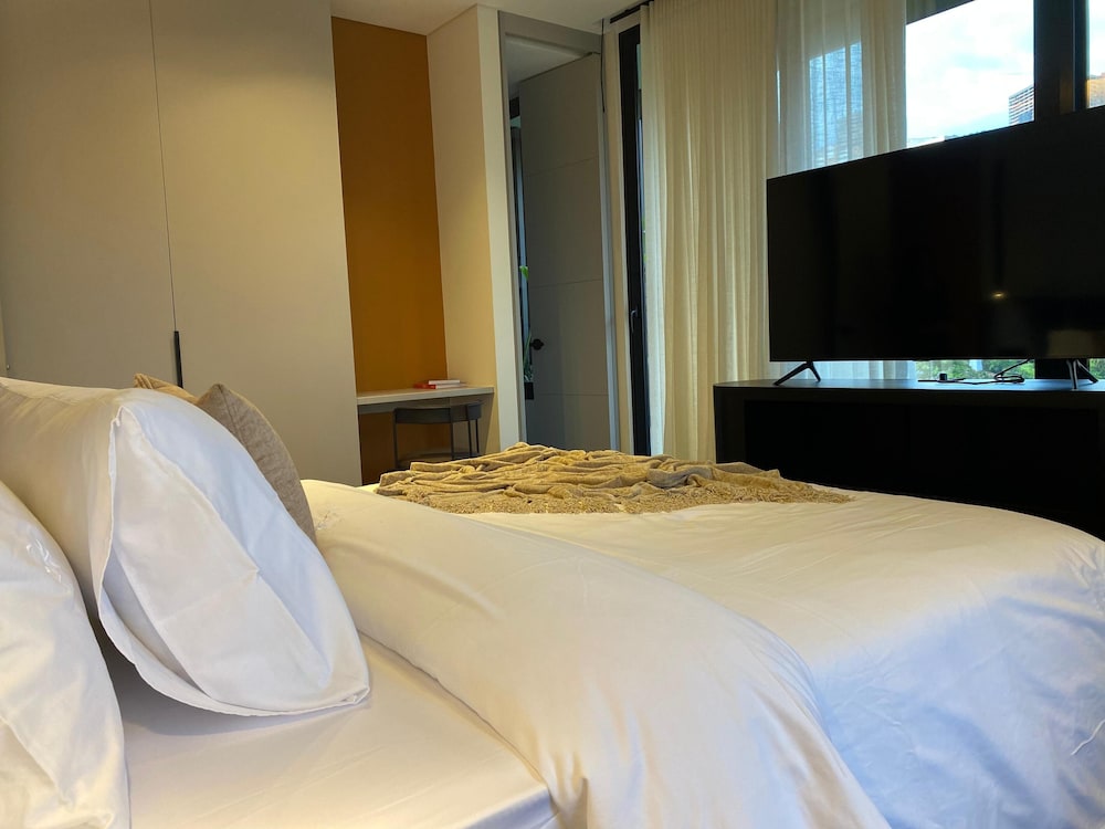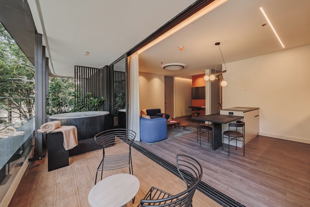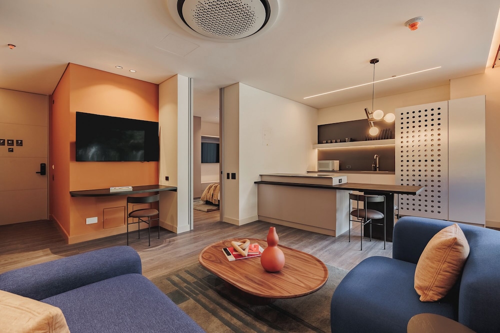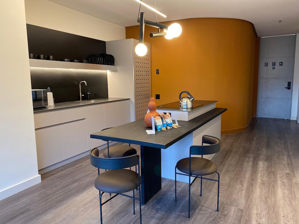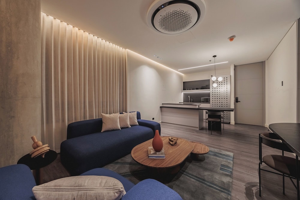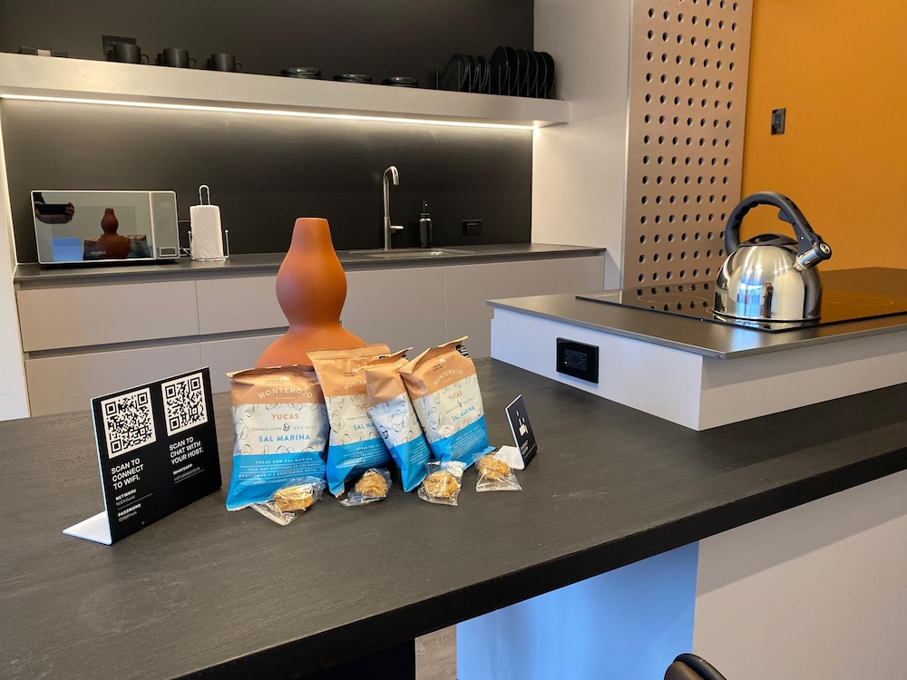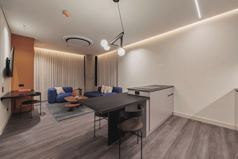 Indulge in our individually decorated guestrooms with fully equipped kitchens and high-tech amenities like 55-inch Smart TVs.