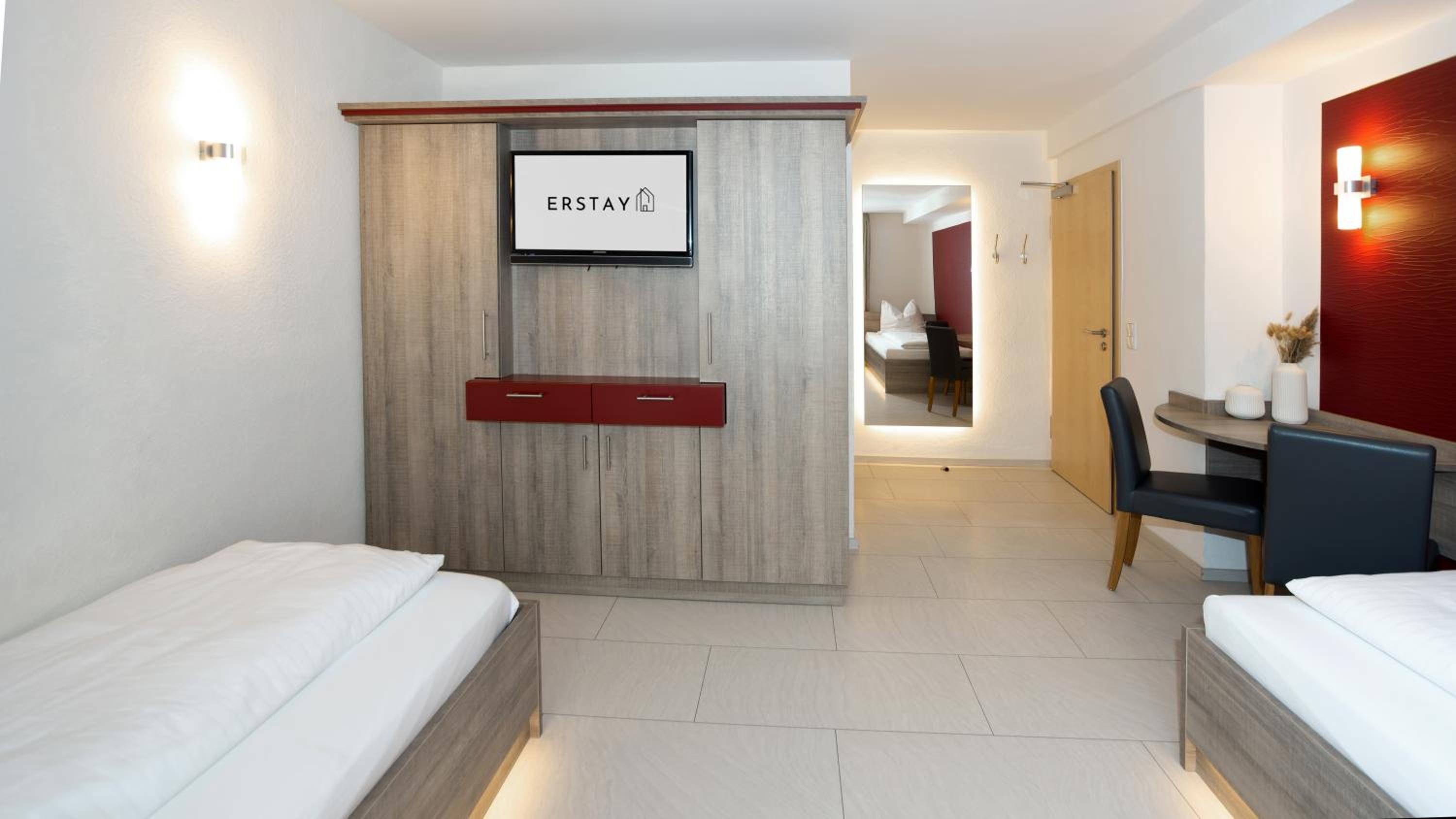 Each room at ERSTAY is equipped with a flat-screen TV, safety deposit box, and private bathroom. Some rooms even offer serene garden views.