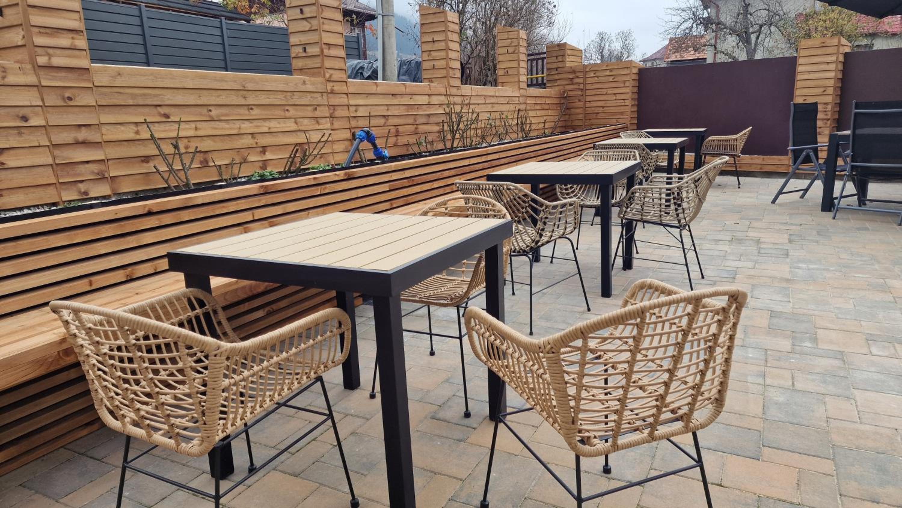 Curtea este generoasa, cu spatiu verde si zona cu scaune si mese. Puteti sa stati seara, pe banca, in jurul focului.