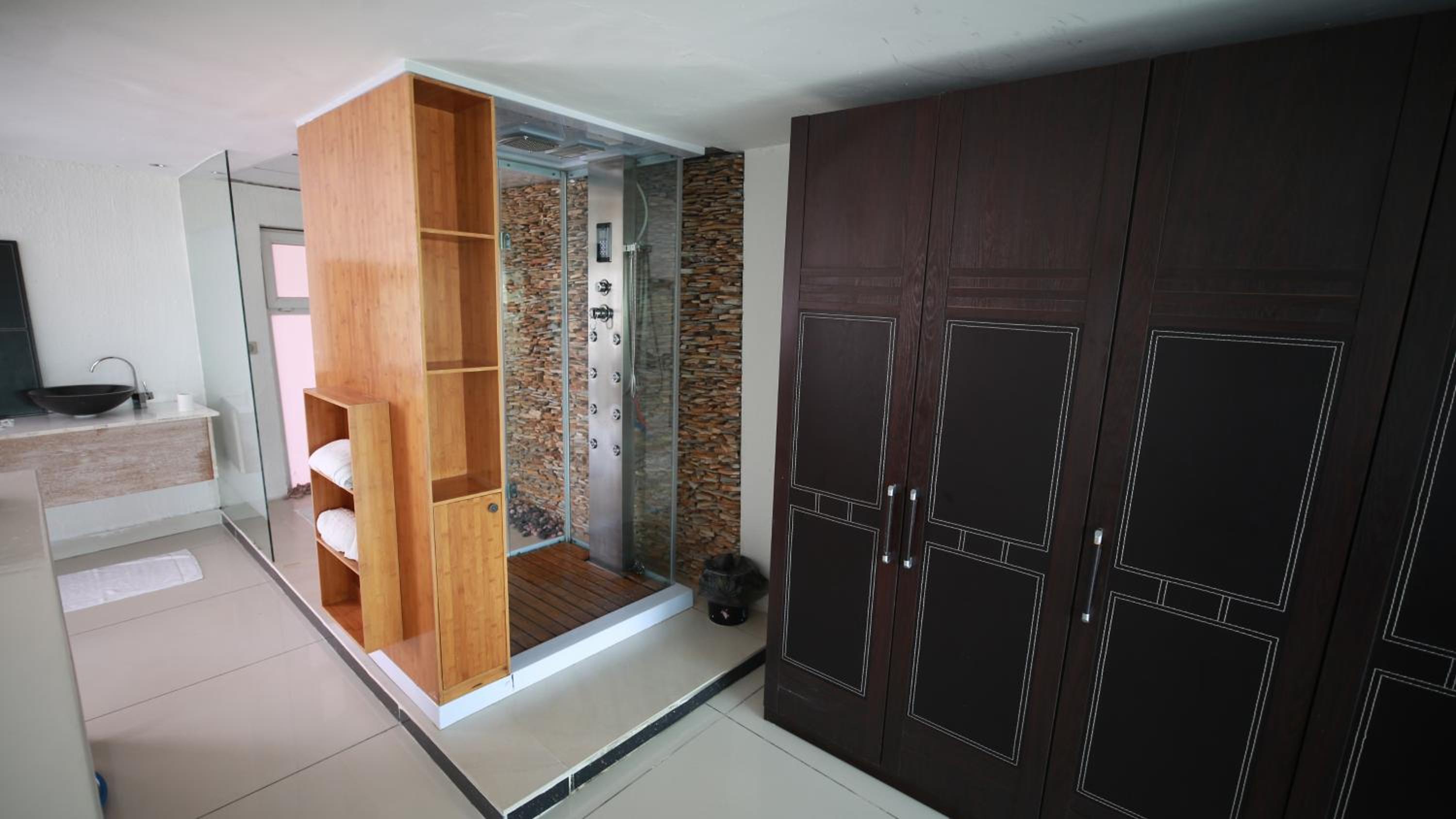 Décoration atypique très recherchée , grands espaces bravo au patron pour le goût j’ai beaucoup aimé 🎉🎊🍾