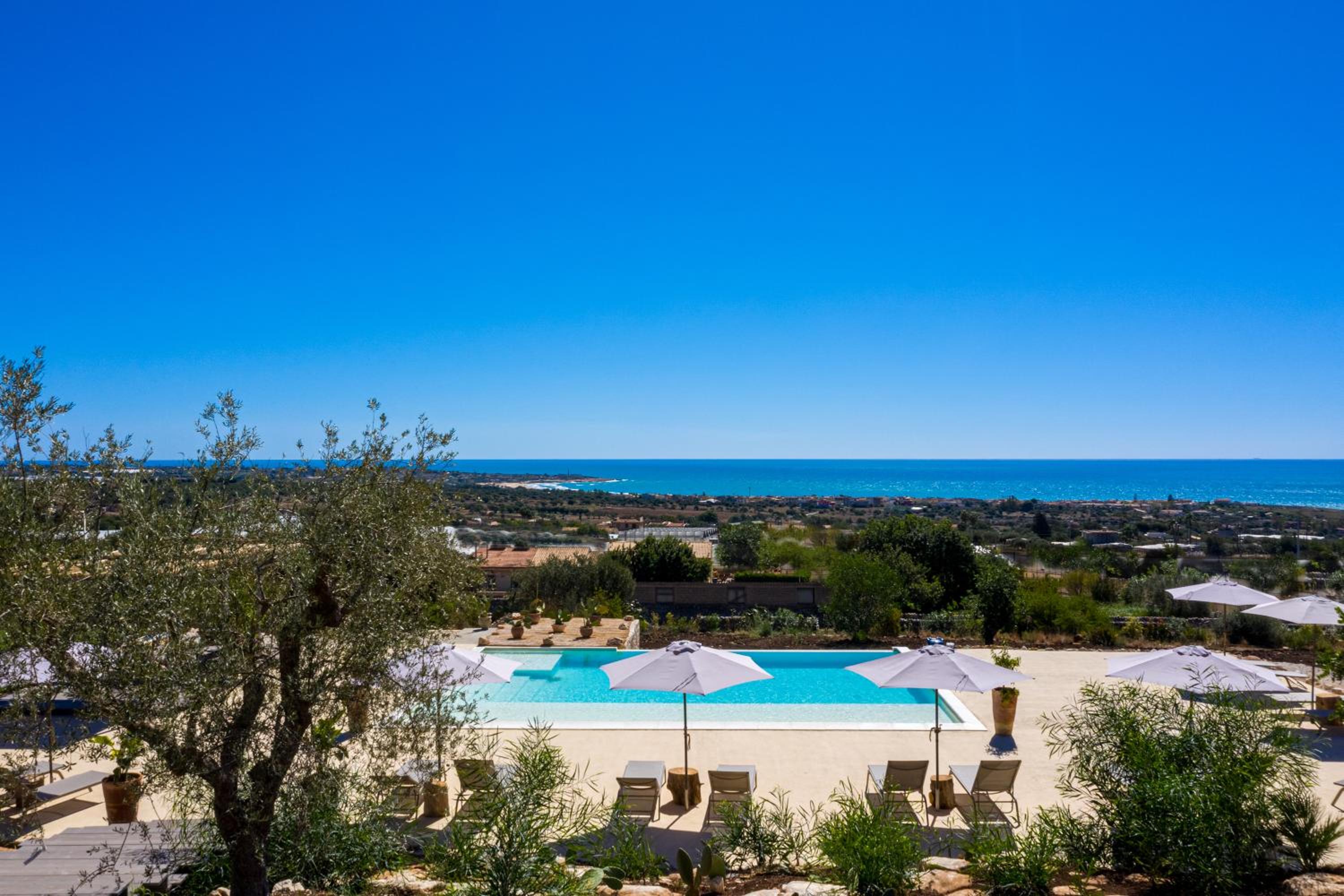 Luxurious Amenities - Enjoy a seasonal outdoor swimming pool, terrace, and bar for relaxation during your stay at RoccaSeta in Scicli.