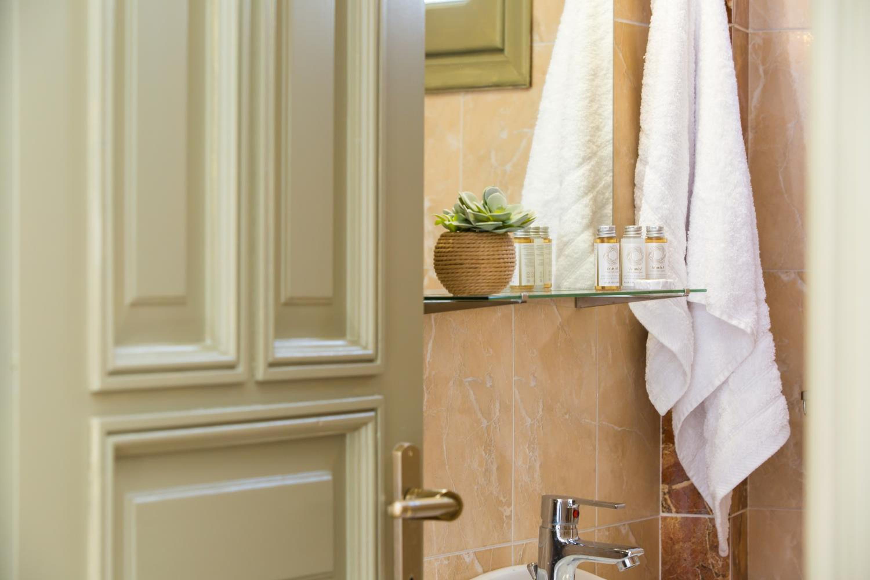 The rooms at Aldea are designed for comfort and convenience, featuring modern amenities like air conditioning, flat-screen TVs, and free WiFi. Some rooms even boast a private balcony for a relaxing outdoor experience.