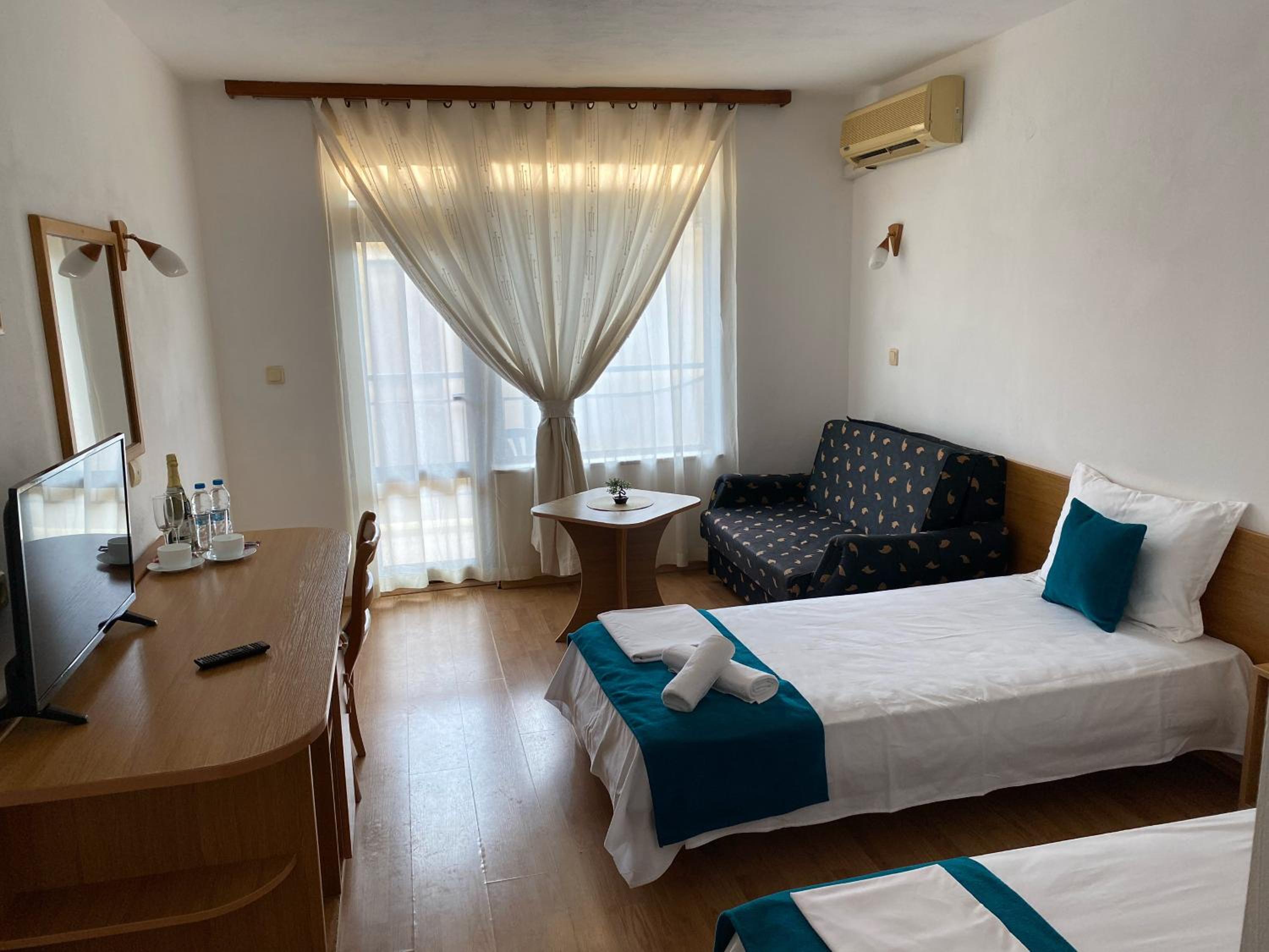 Мръсни стай, никакви елементарни/минимални човешки удобства и консумативи който всеки хотел предлага няма в нещо наречено хотел …… няма кана да си направиш кафе сешоар дори няма хладилнчеее имааааа ура ама жълтоо мръсенооо бактериии вътреее възглавница имах ли … слагах си жилетката да ми е по удобно (да уточня имахме две стай и двете бяха такива) за 4 дни един път стайте не се почистиха да се сменят нещо кърпи чаршафи не такова нещо няма имаше една ролка тоалетна хартия като пристигнахме и естествено трябваше и тоалетна хартия да си купуваме!!! Сега да ви разкажа кво става в тоя ‘’хотел’’рецепция няма има един падарин там който седи там я го има я го няма … ходихме да походка е от падарина сешоар зада изсушим на детето косата и той ни даде на жена му сешоара с уговорката да му го върнем че на жена му и трябвало !!!!!! Това как е възможно да е хотел …. Като излезнахме падарина ни преследваше да върнем сешоара бяхме го оставили в така наречената стая … върнахме го на другия ден пак пойскаш е сешоар даде не накъв друг върнахме си му го и решихме да си купим наш щото чуството да е молиш на някой за елементарни неща за който си платим е просто ужасно !!! Също така падарина ми направи забележка от кафе си взимам кафе сутрин в това защото в ‘’хотела’’ има кафе машина със стотинки ….. даже нормална кафе машина нямам и аз сутрин ди ходех от друго място взимах кафе за нас и една сутрин ми вика виждам че обичаш да се разхождаш за кафе то е едно и също навсякъде той го зареждал всички кафе машини в градът…. Та да обобщя ако ходите в този ‘хотел’ си носете сешоар кана за кафе тоалетна хартия възглавници и не очаквахте някой да почисти стаята ви така че си вземете метла моп и почистващи препарати също !