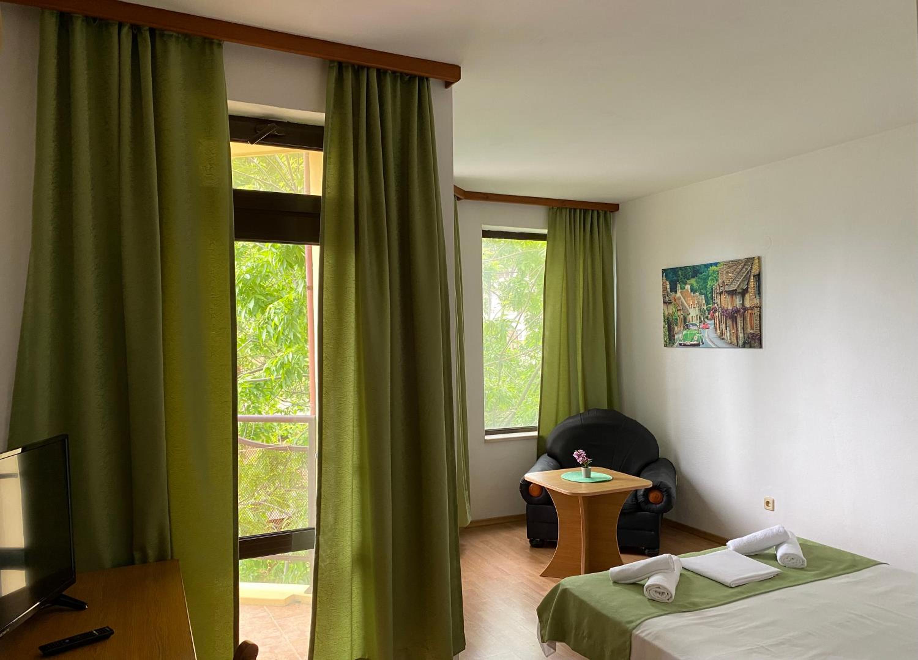 SUNARITA in Primorsko offers a luxurious stay just 300 meters from North Beach Primorsko. The rooms feature modern amenities including a flat-screen TV, private bathroom, and comfortable bedding. Some rooms even boast balconies with stunning sea views, ensuring a relaxing and enjoyable stay.