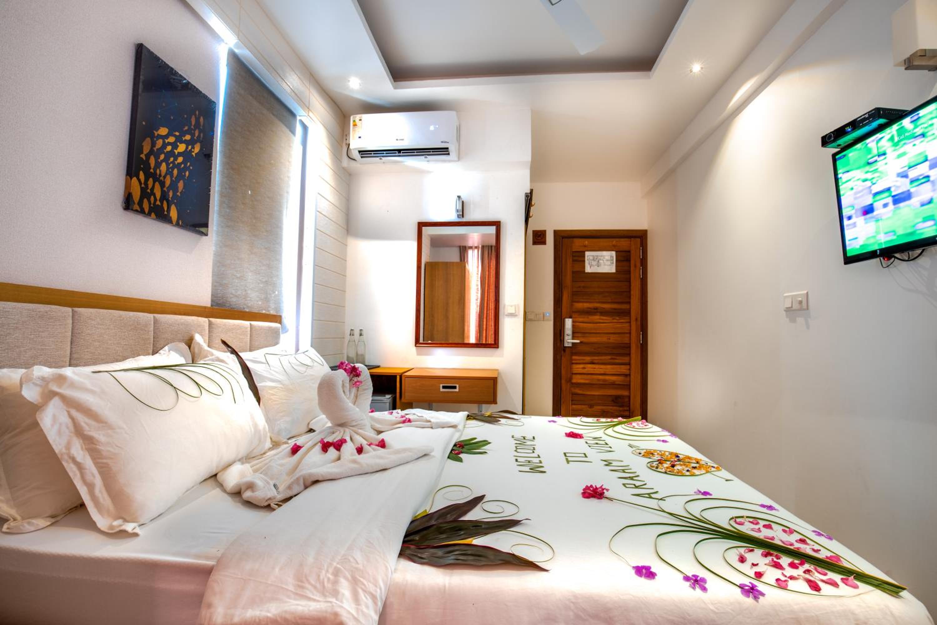 Experience comfort and style at Araamview in Hulhumale. Each room is equipped with modern amenities such as air conditioning, flat-screen TV, and a private bathroom. Some rooms even feature balconies and stunning sea views.