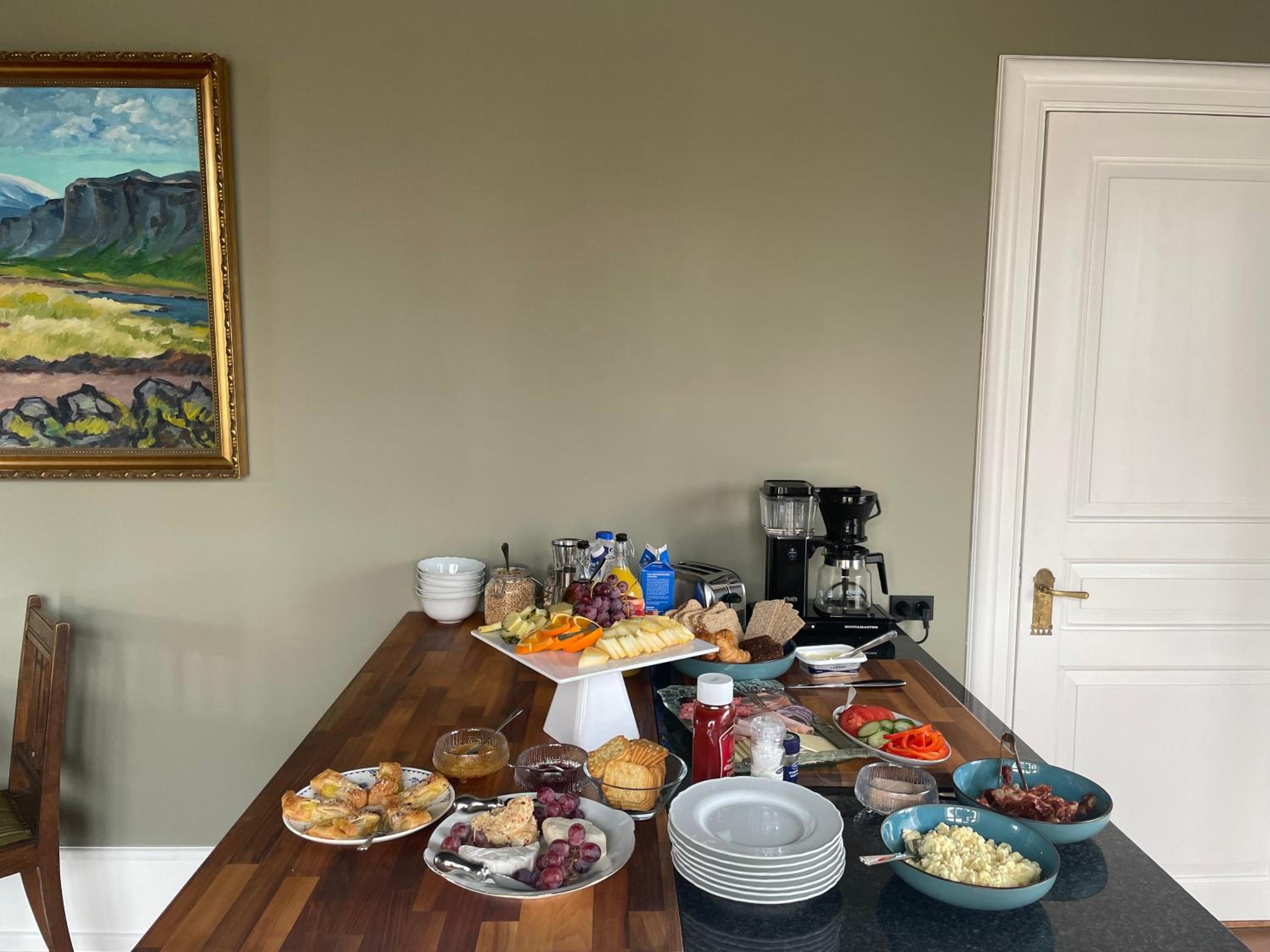 rigtigt god morgenmad. Der var, hvad man skulle bruge. I tillæg kunne man benytte cafeen i løbet af dagen. Lejligheden var i god størrelse, der var alt hvad man skulle bruge i køkkenet og badeværelset var fint stort. Komfortabel sofaarrangement. Vi følte os hjemme med det samme.