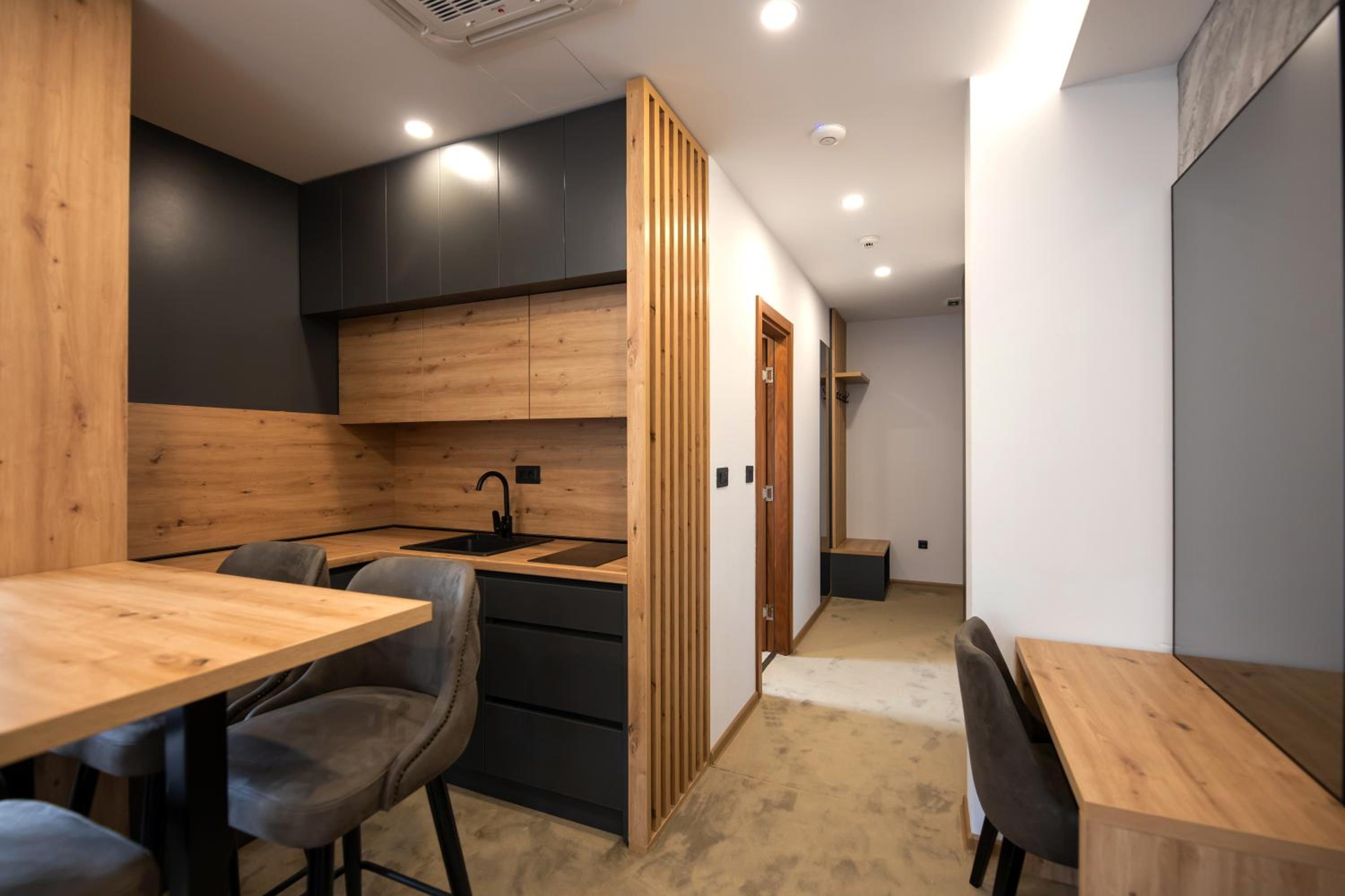 Курящий персонал на завтраке, можно попросить сотрудников не курить в ресторане на завтраках? - сели втроем за столик и закурили, не знаешь куда бежать, чтобы не задохнуться, а пришёл позавтракать. Сделайте вешалку для верхней одежды в прихожей, предусмотрено место для этого, его оформили декоративными панелями. Мокрую одежду в снегу куда девать? Приходилось вешать в ванне на вешалку. Положите, пожалуйста, ложку для обуви, всегда есть в отелях. Дуло из окон было холодно, 2 тонких одеяла спасли. Ну и само заселение - очень долго ждала, когда сотрудник подойдёт на ресепшен, никого не было, в итоге подошел официант мин через 20 ожидания, дал ключ и ушёл - дальше все искала и разбиралась сама...