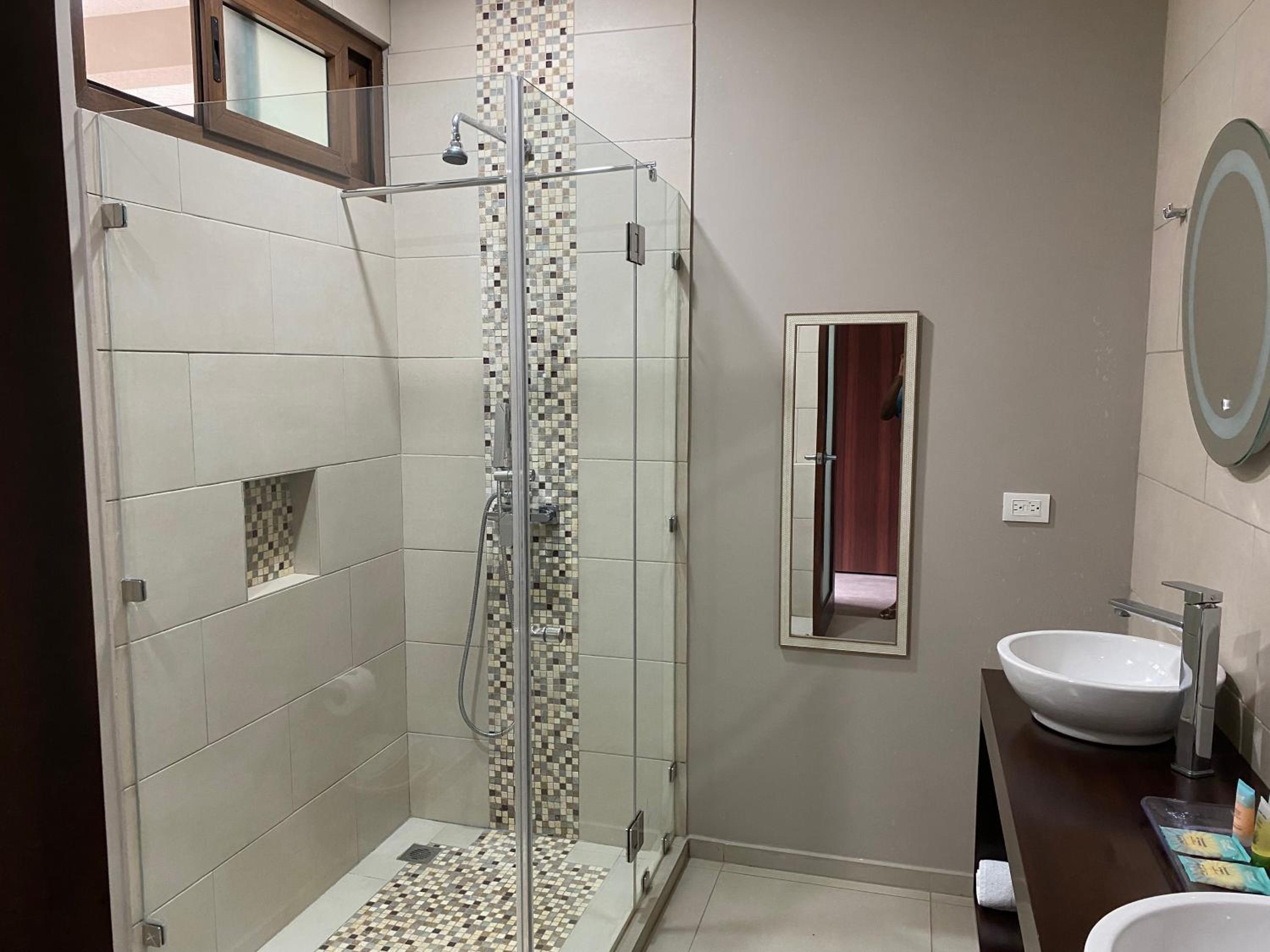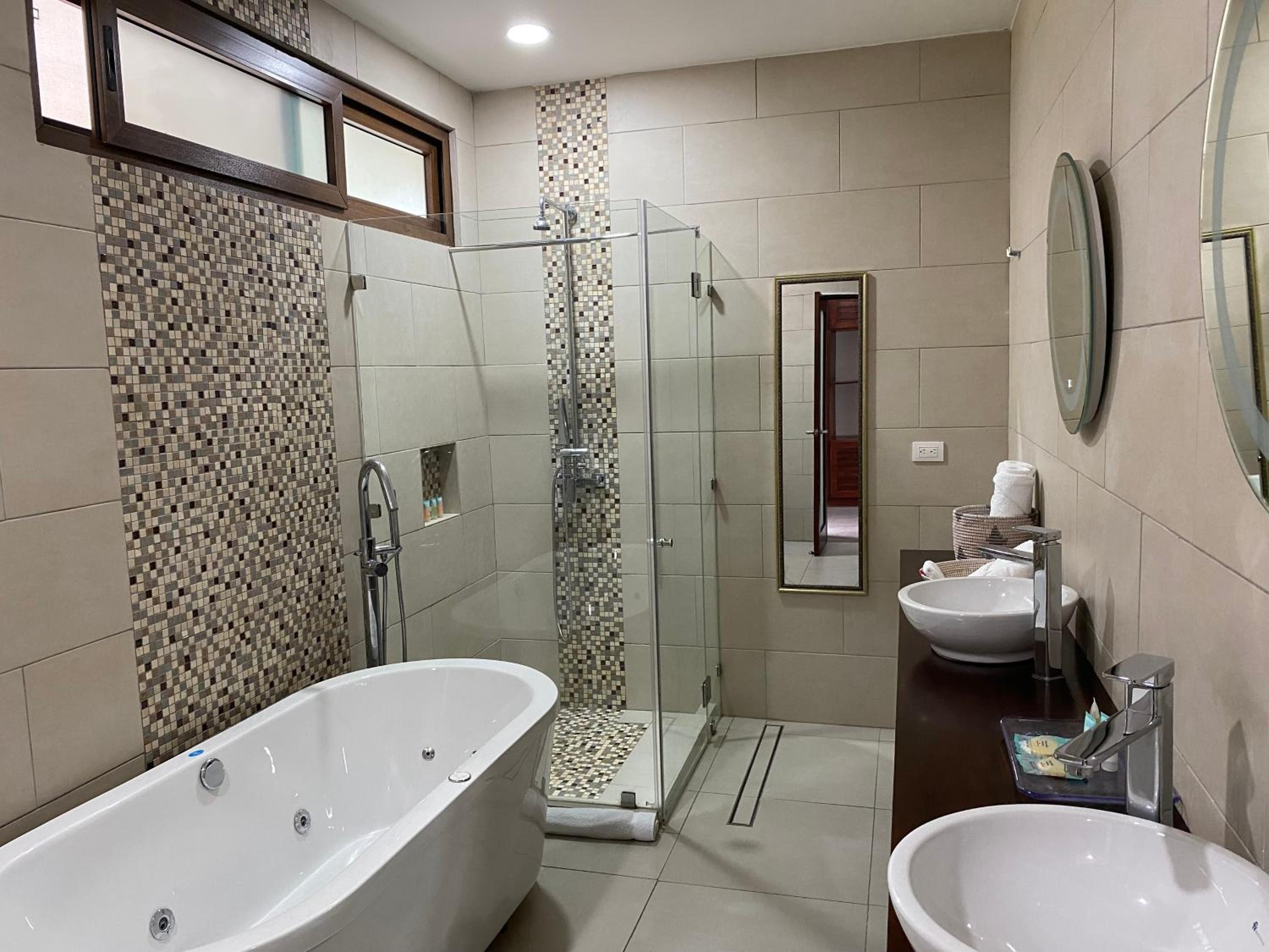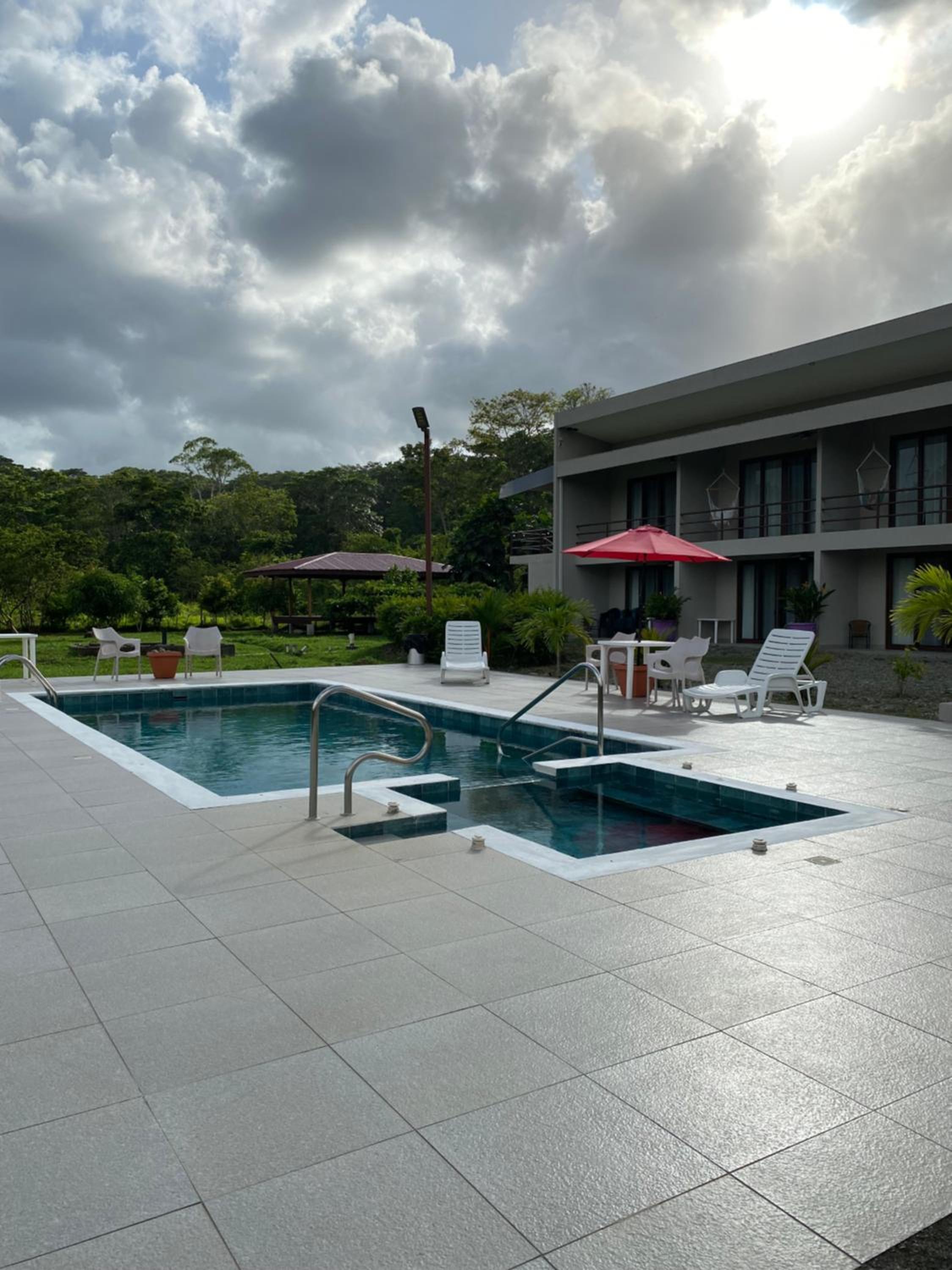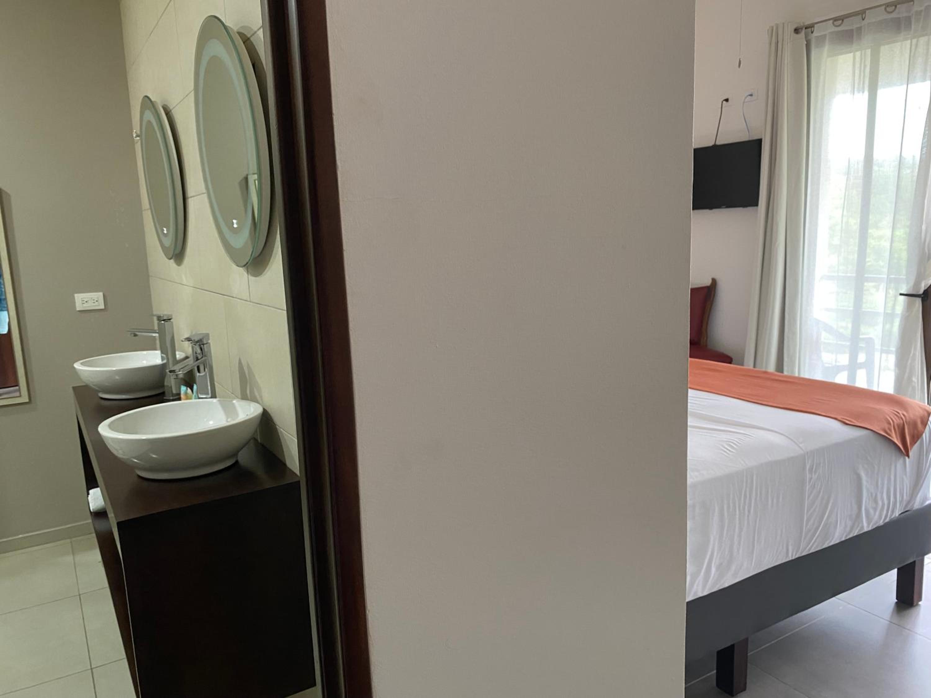 The hosts are super helpful friendly. The breakfast is excellent, they make something different every morning. They have a minibus and were kind enough to give us a ride to Cahuita trailhead and pick us up from the village in the afternoon. The pool is clean and there's plenty of room to hang out around it. The rooms are spacious and very nice with comfortable beds. Two sinks in the bathroom.