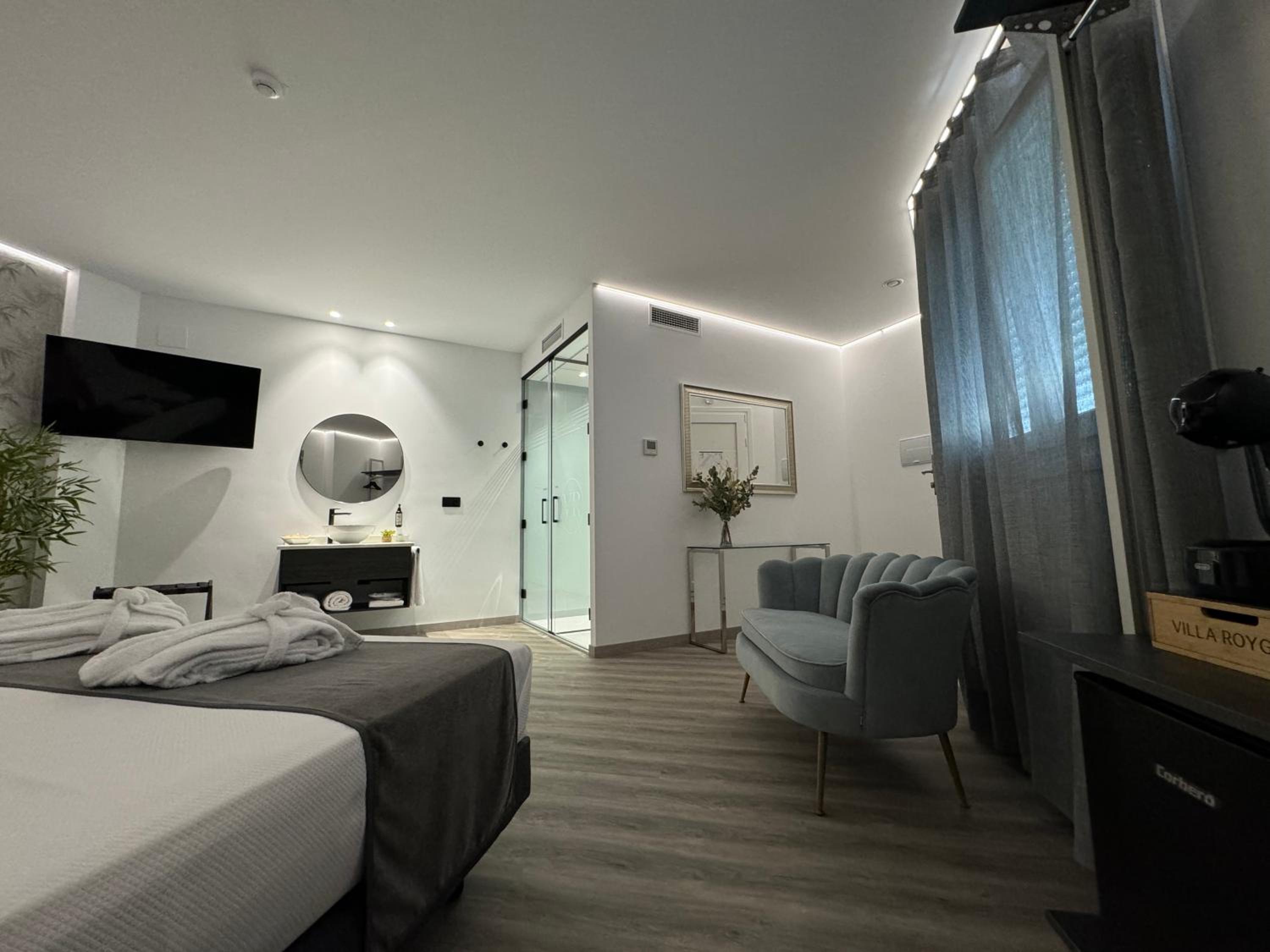 Well-Equipped Rooms: Rooms at VillaRoygar are thoughtfully designed with amenities like a flat-screen TV, coffee machine, and some even come with a fully-equipped kitchen for your convenience.